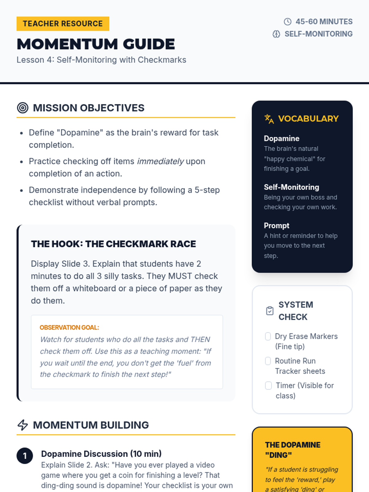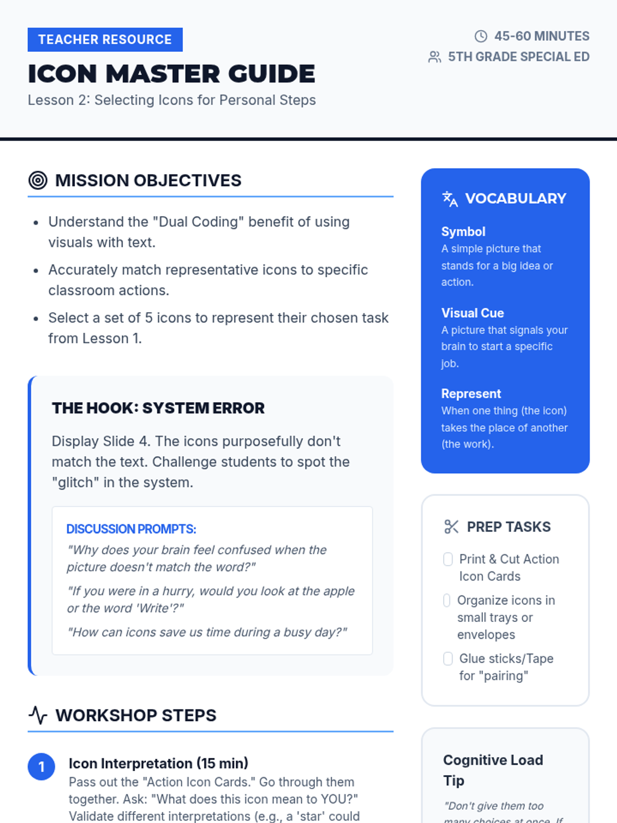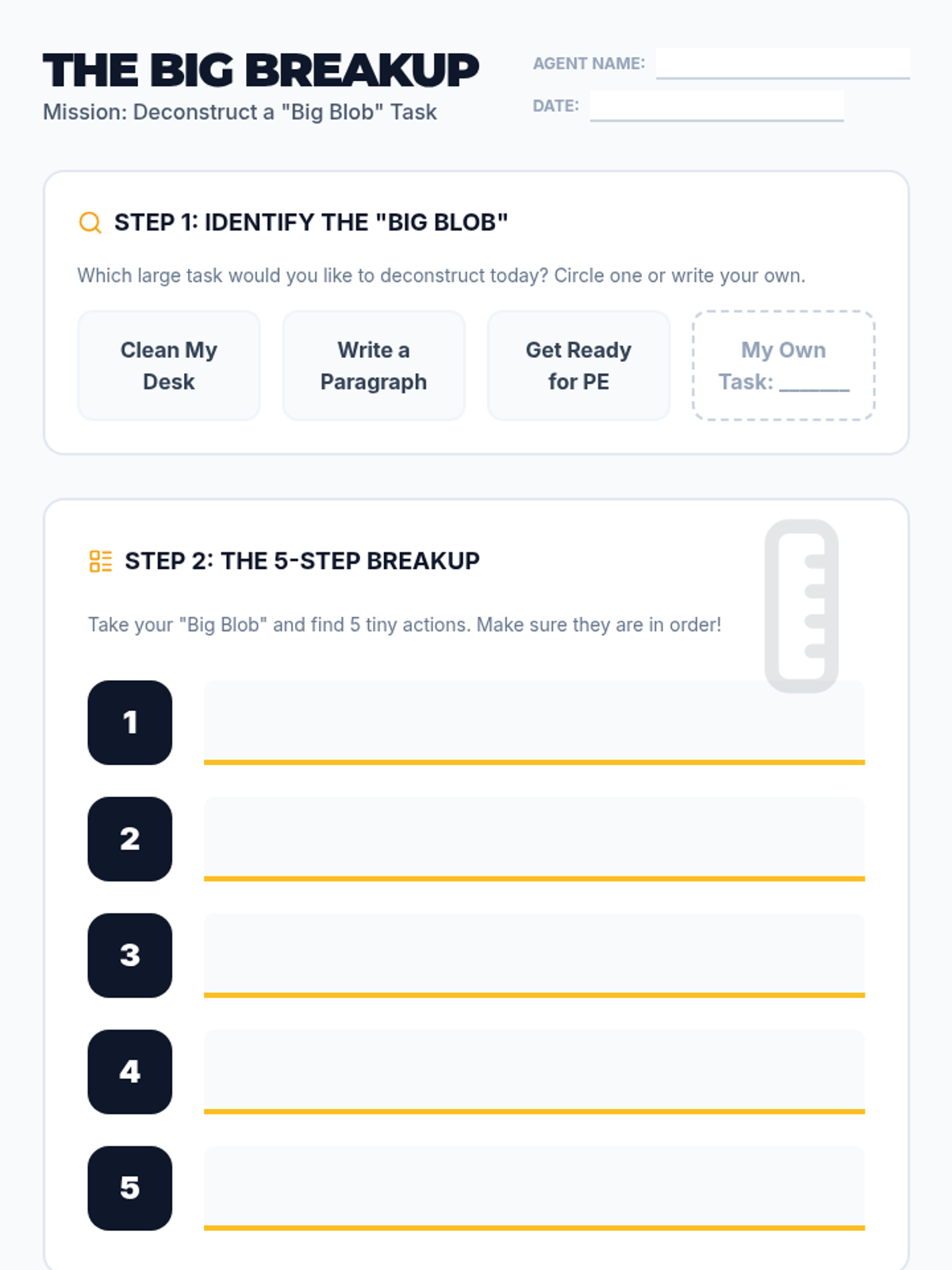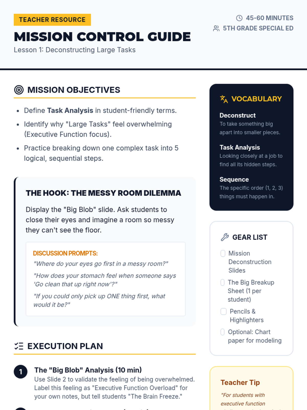 A 5th-grade Special Education project-based sequence where students learn to deconstruct complex tasks into manageable visual checklists to improve autonomy and executive function.