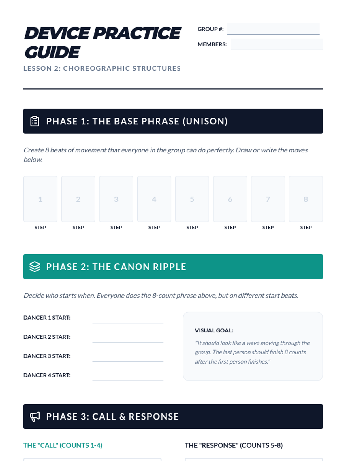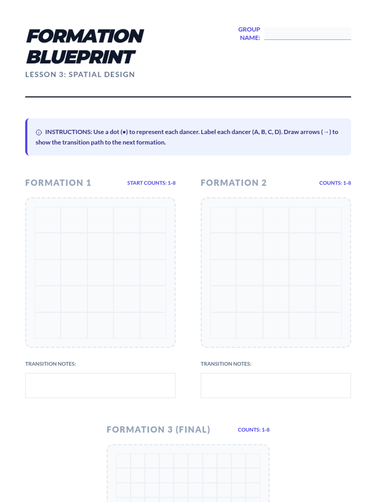 This sequence guides 9th-grade students through the structural elements of choreography, focusing on rhythm, choreographic devices, and spatial formations. Students progress from mapping musical counts to performing a polished group routine.