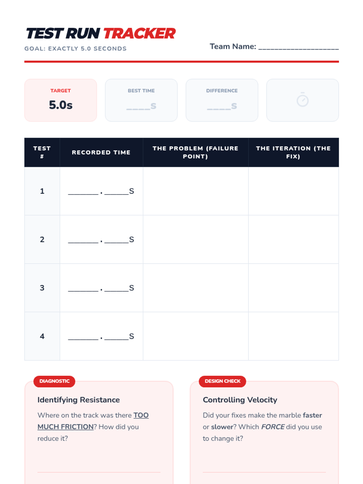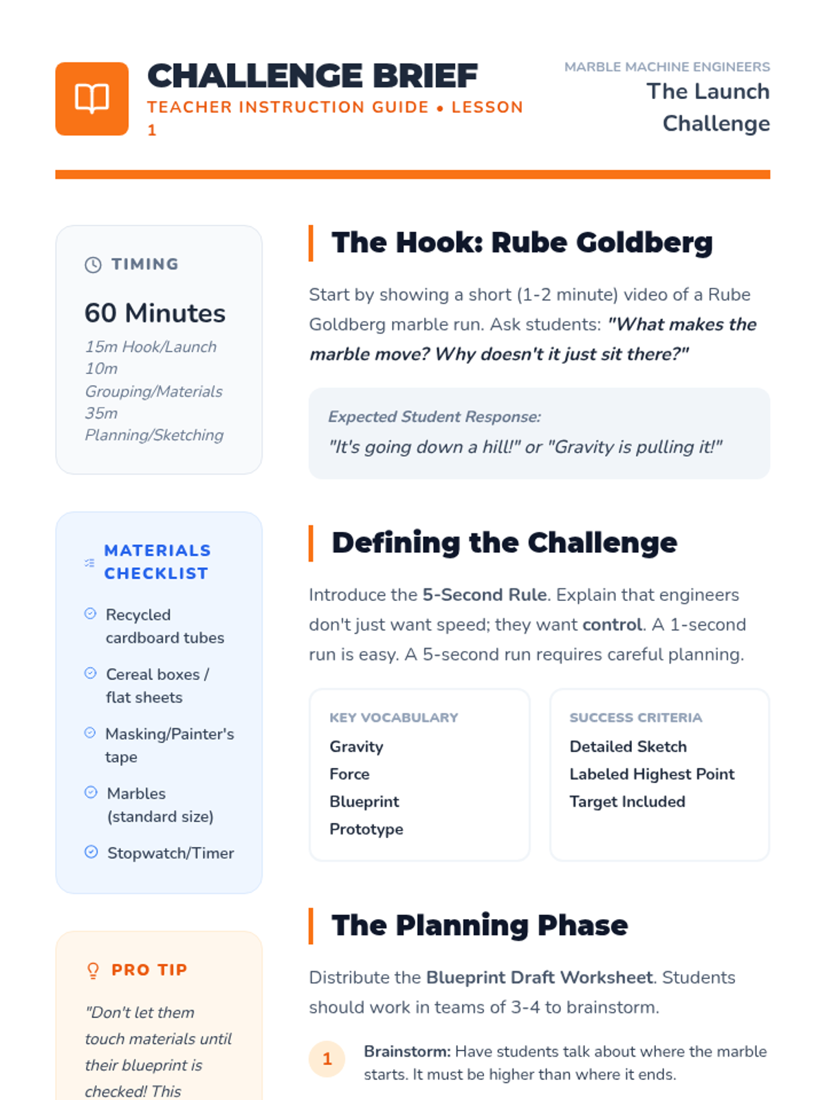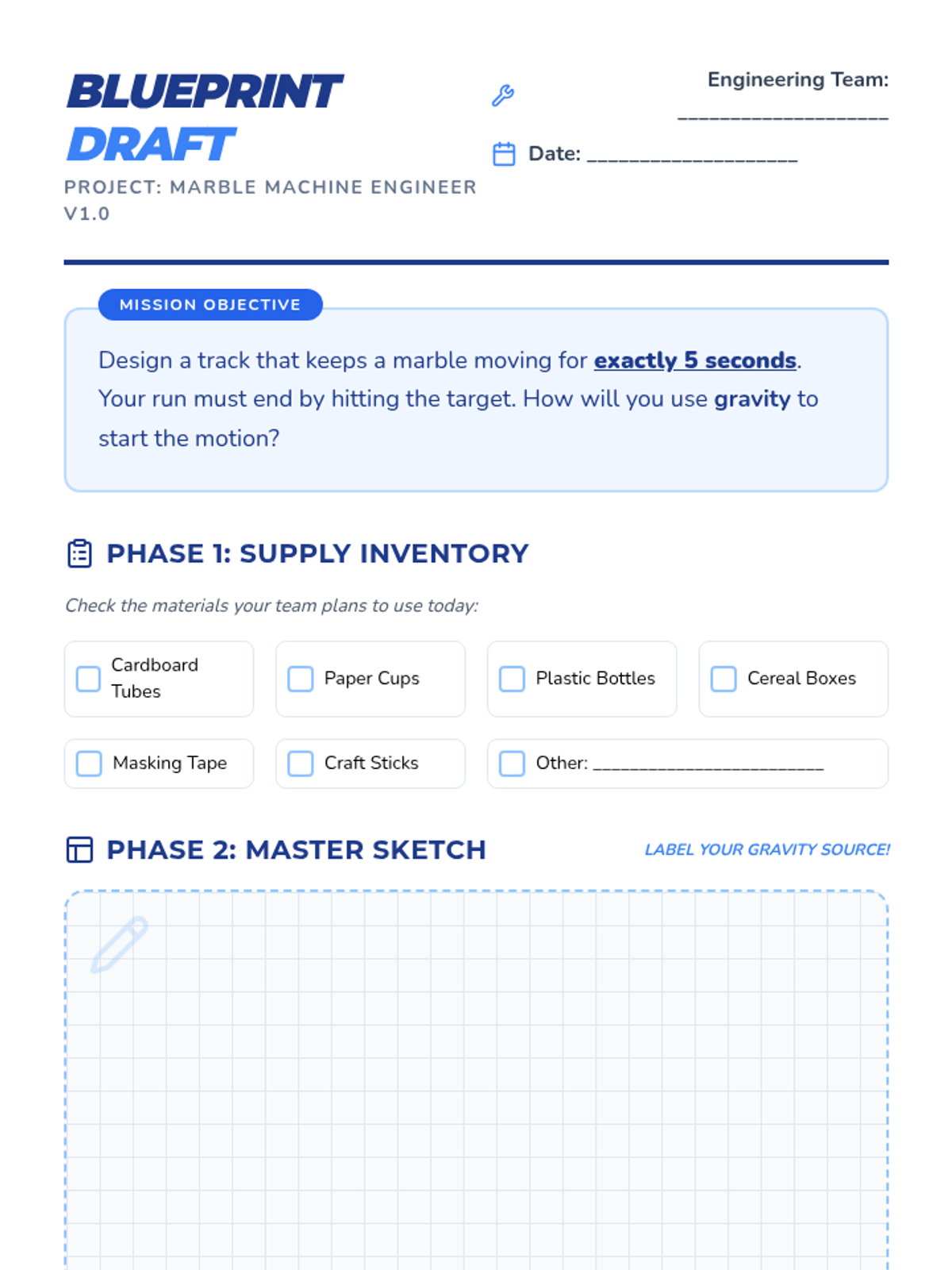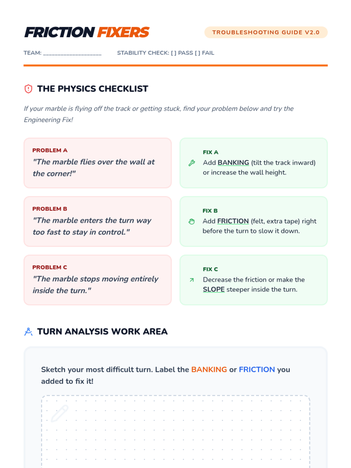 A project-based physics sequence for 3rd grade where students design, build, and iterate on a marble run to control speed and motion using forces like gravity and friction.