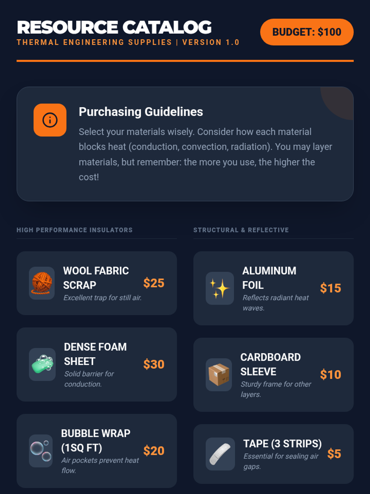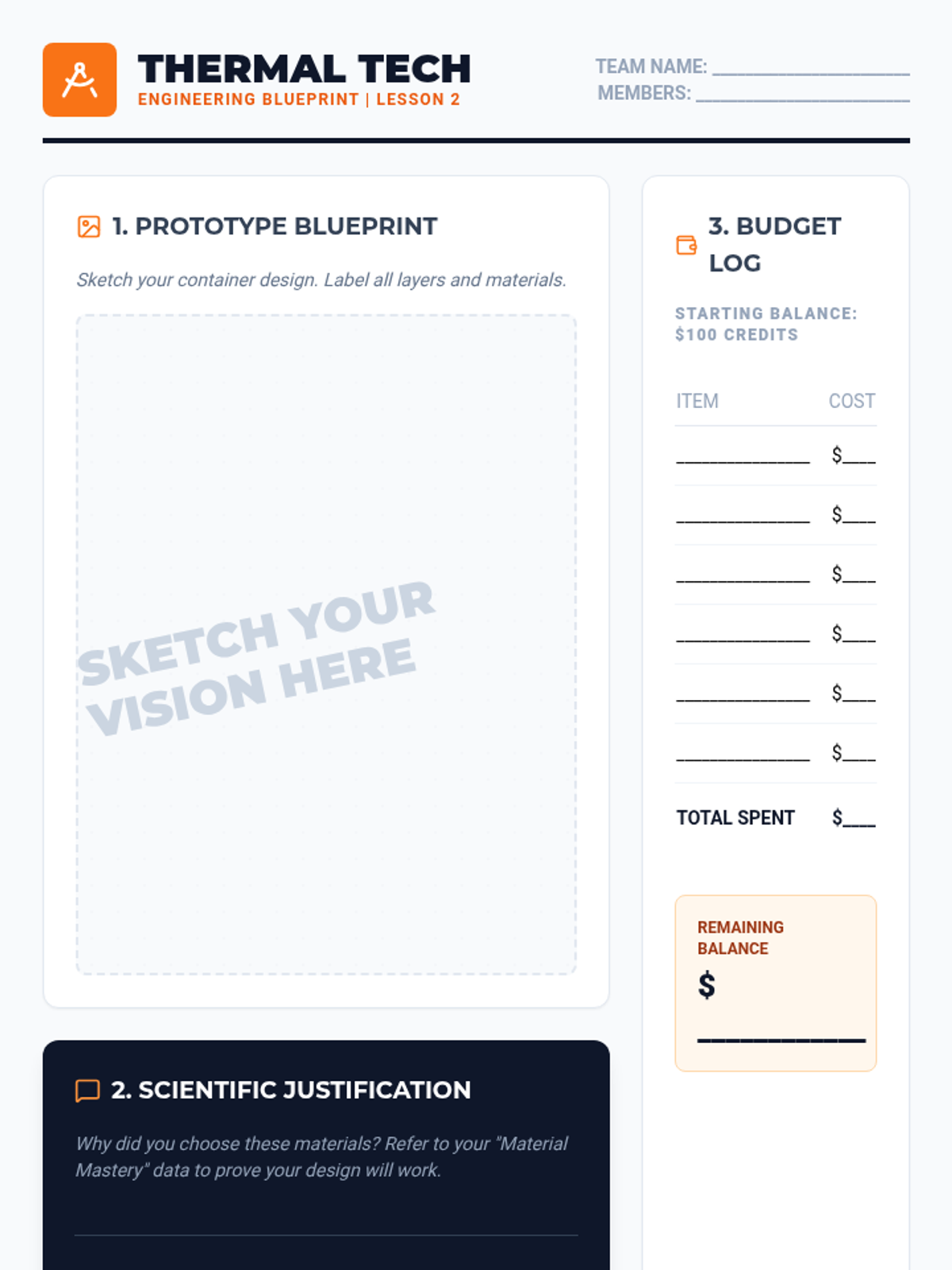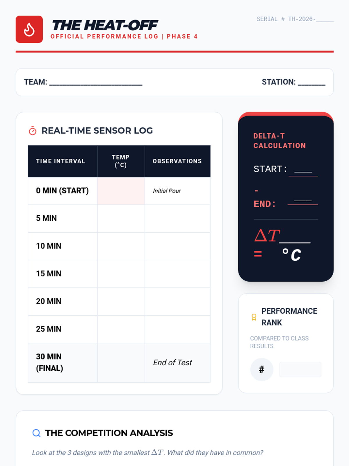 Students explore thermodynamics through an engineering lens, testing materials and iterating on designs to create the ultimate thermal container. The sequence emphasizes data-driven decision making and the engineering design cycle.