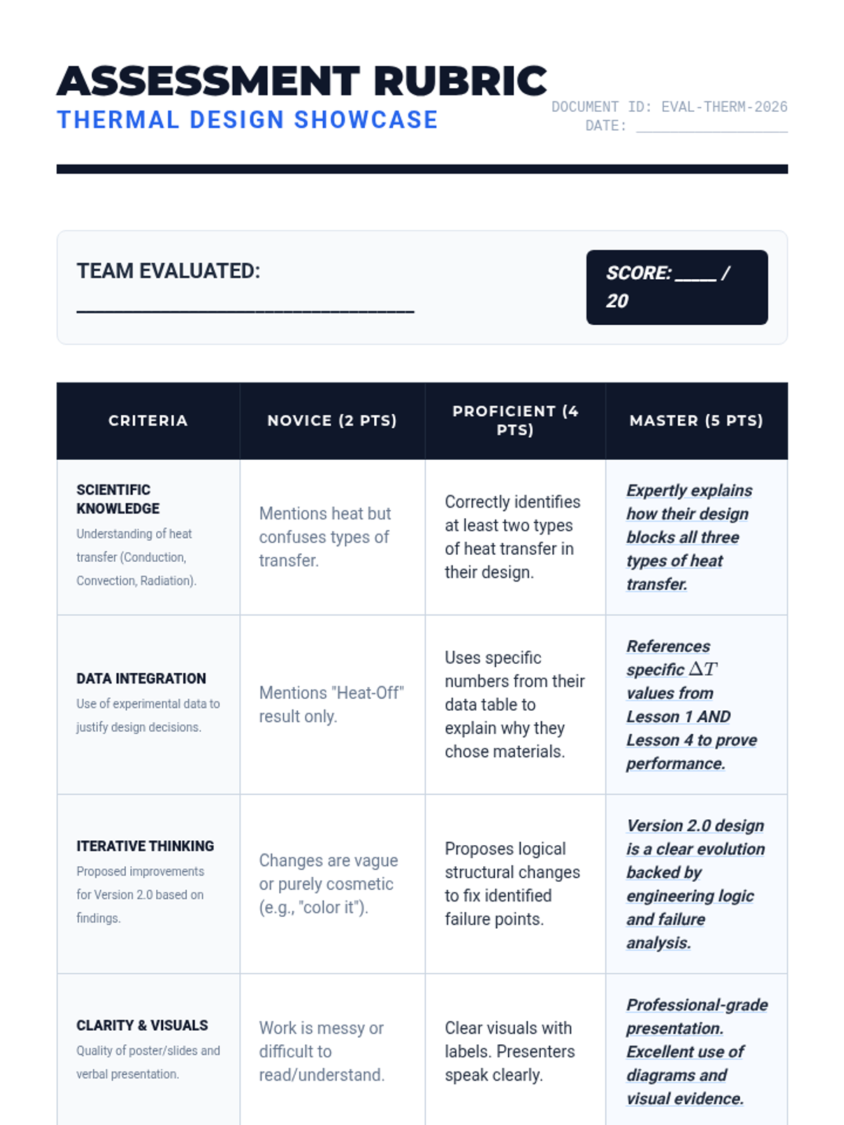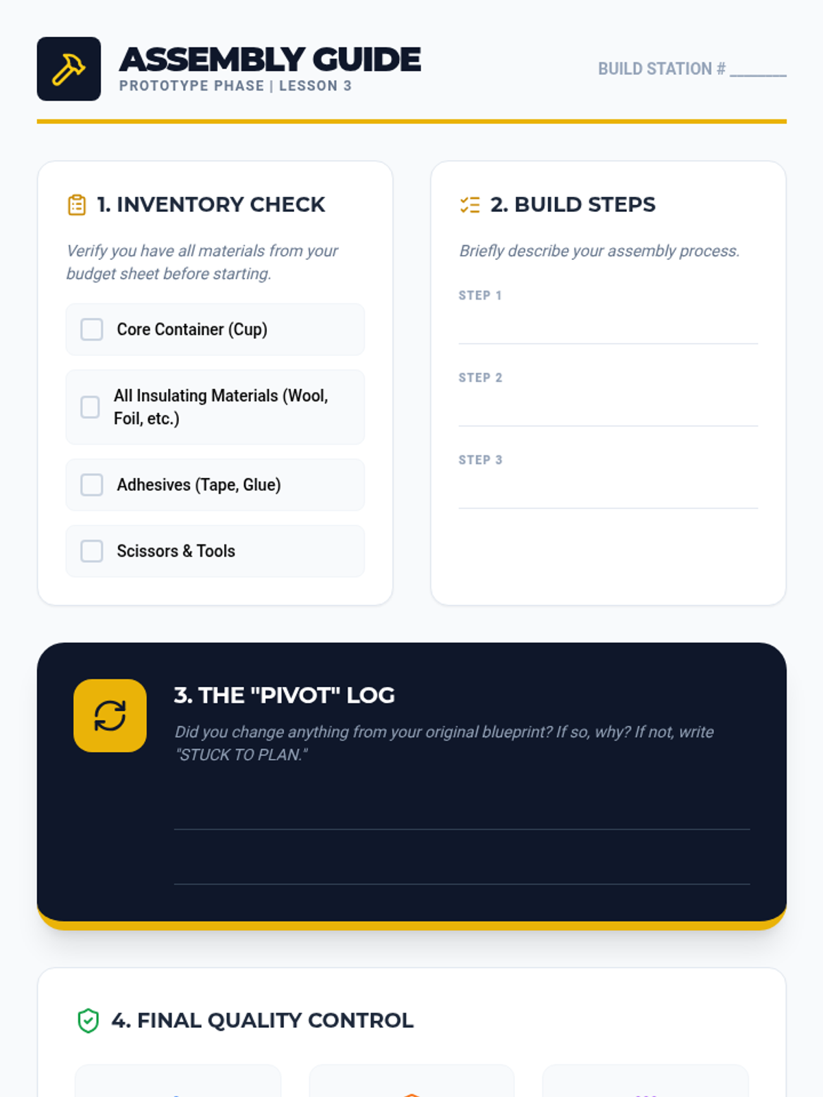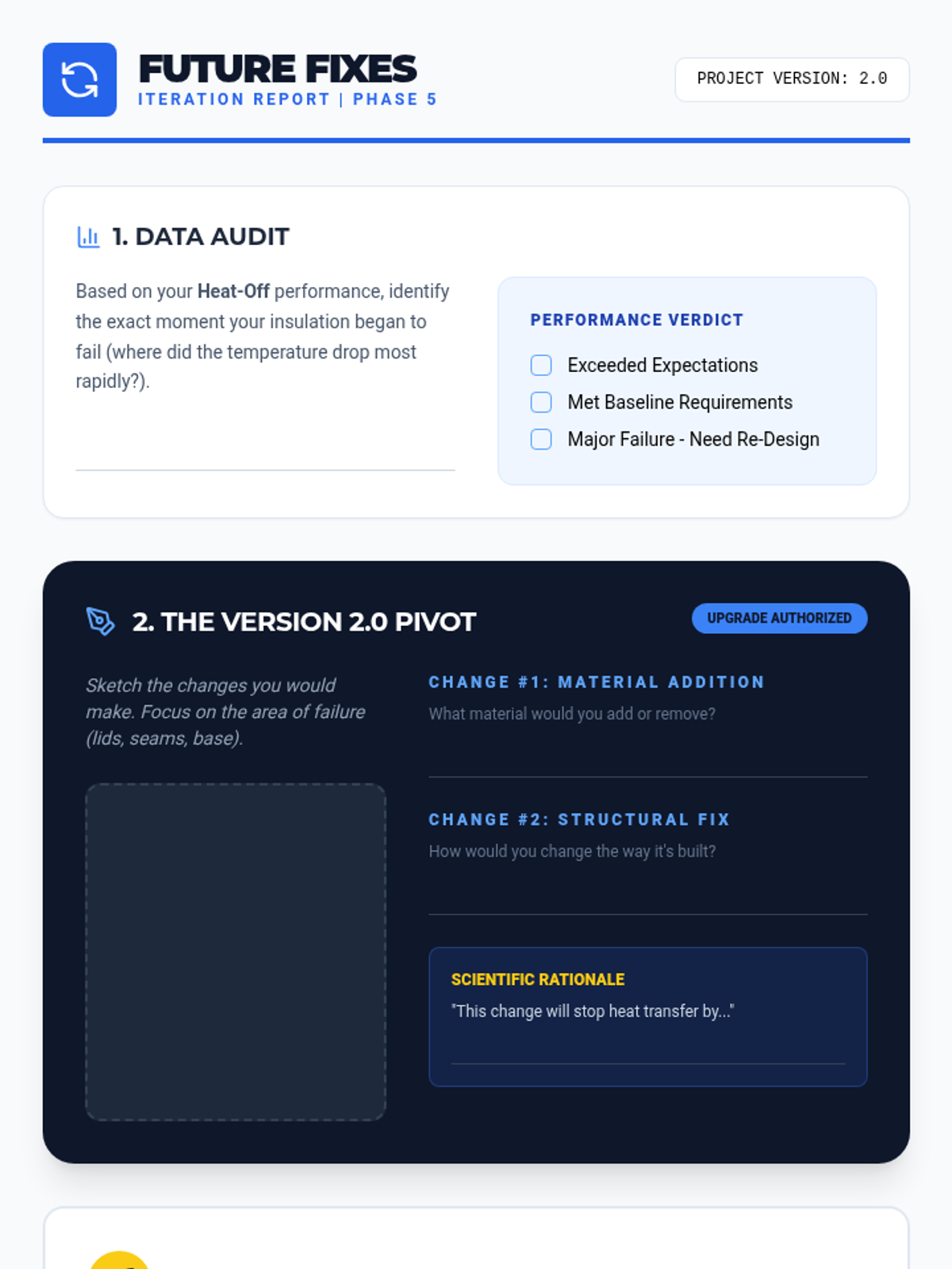 Students explore thermodynamics through an engineering lens, testing materials and iterating on designs to create the ultimate thermal container. The sequence emphasizes data-driven decision making and the engineering design cycle.