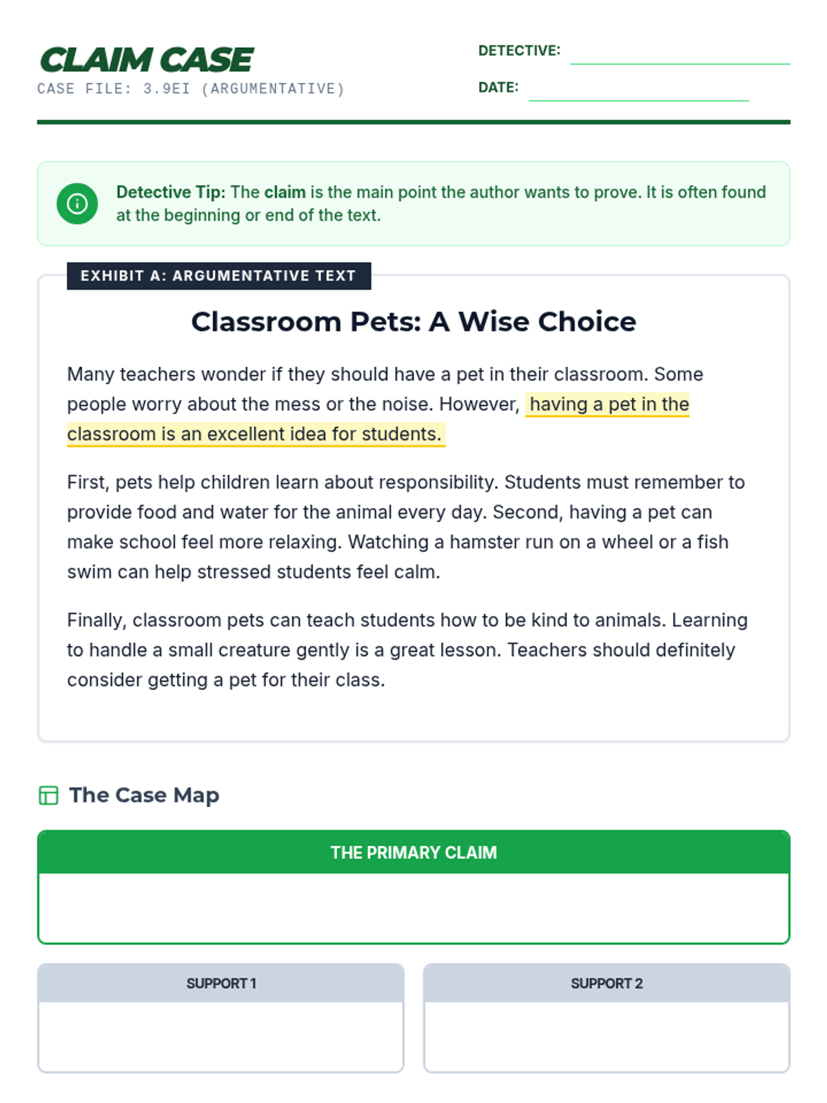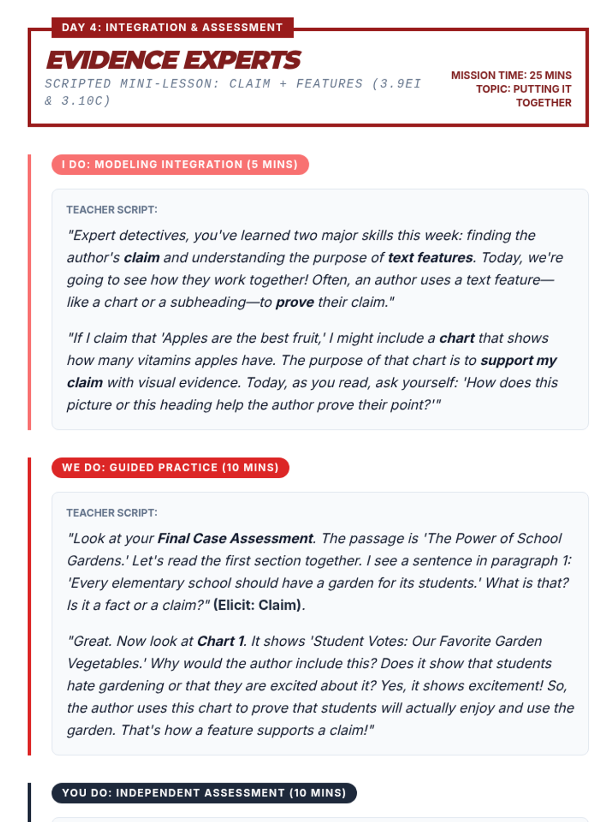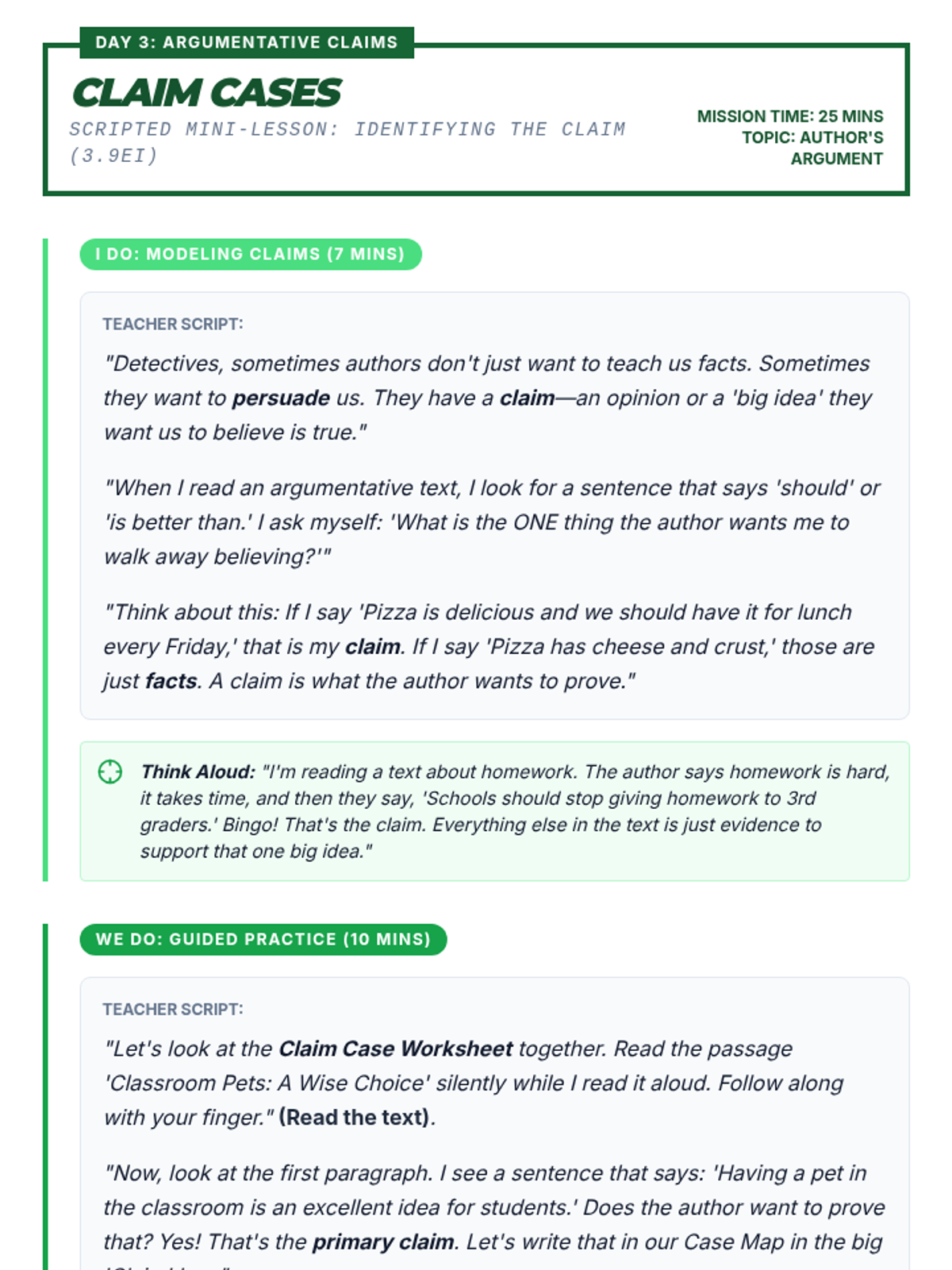 A comprehensive 5-day intervention sequence for 3rd grade literacy focusing on claim identification (3.9Ei) and print/graphic feature analysis (3.10C) with rigorous, STAAR-aligned materials.