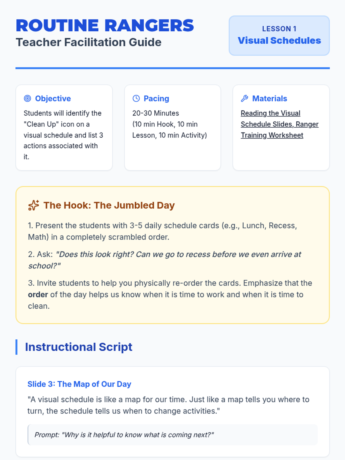 A detective-themed sequence for 1st-grade special education students to master inferencing through concrete objects, body language, sensory details, and text clues.