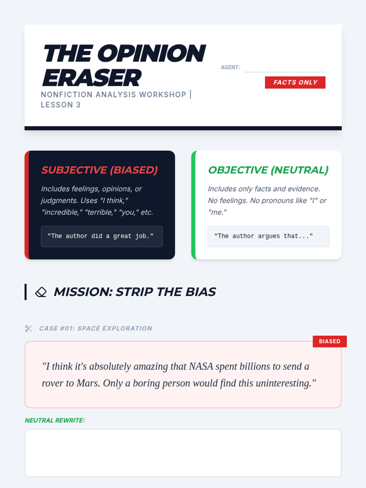 A series of lessons focused on mastering argumentative writing through immersive, game-based activities and role-playing scenarios.