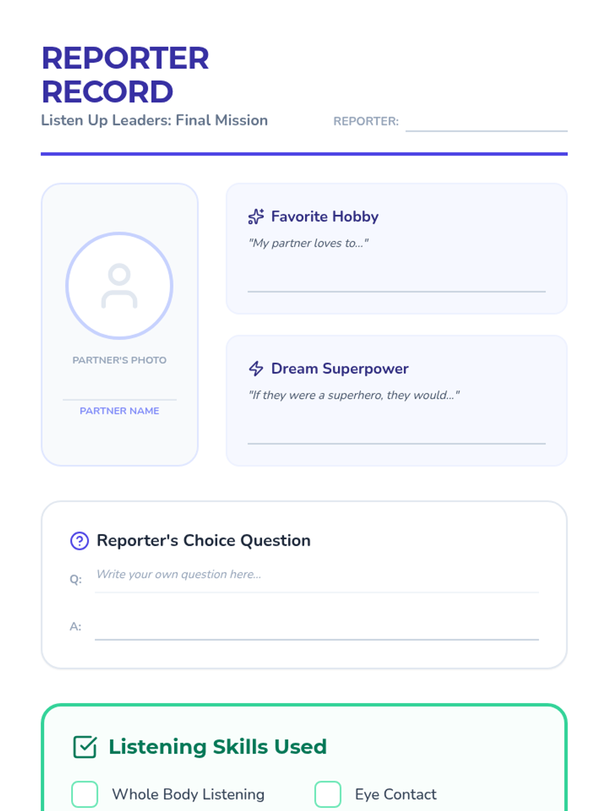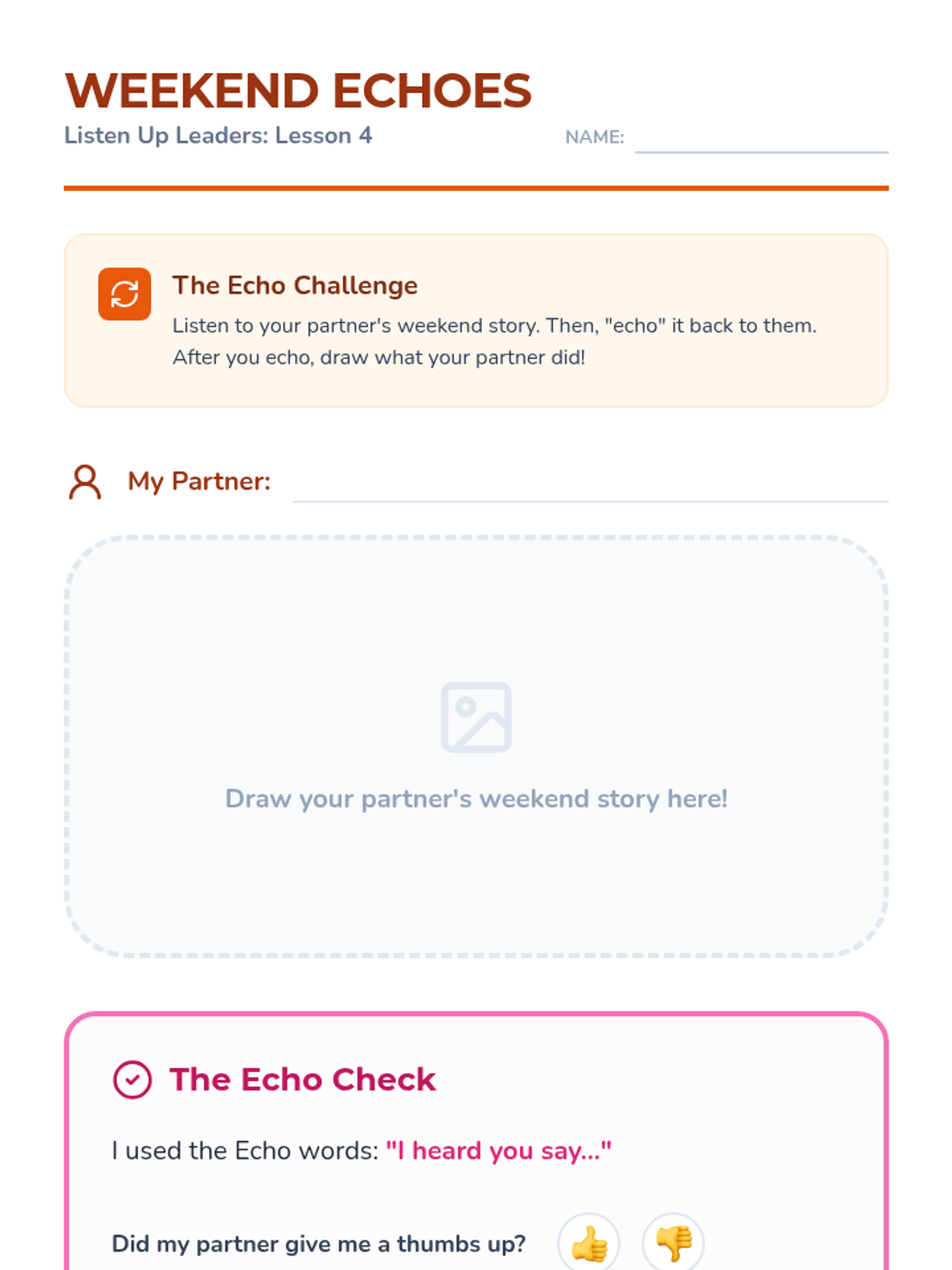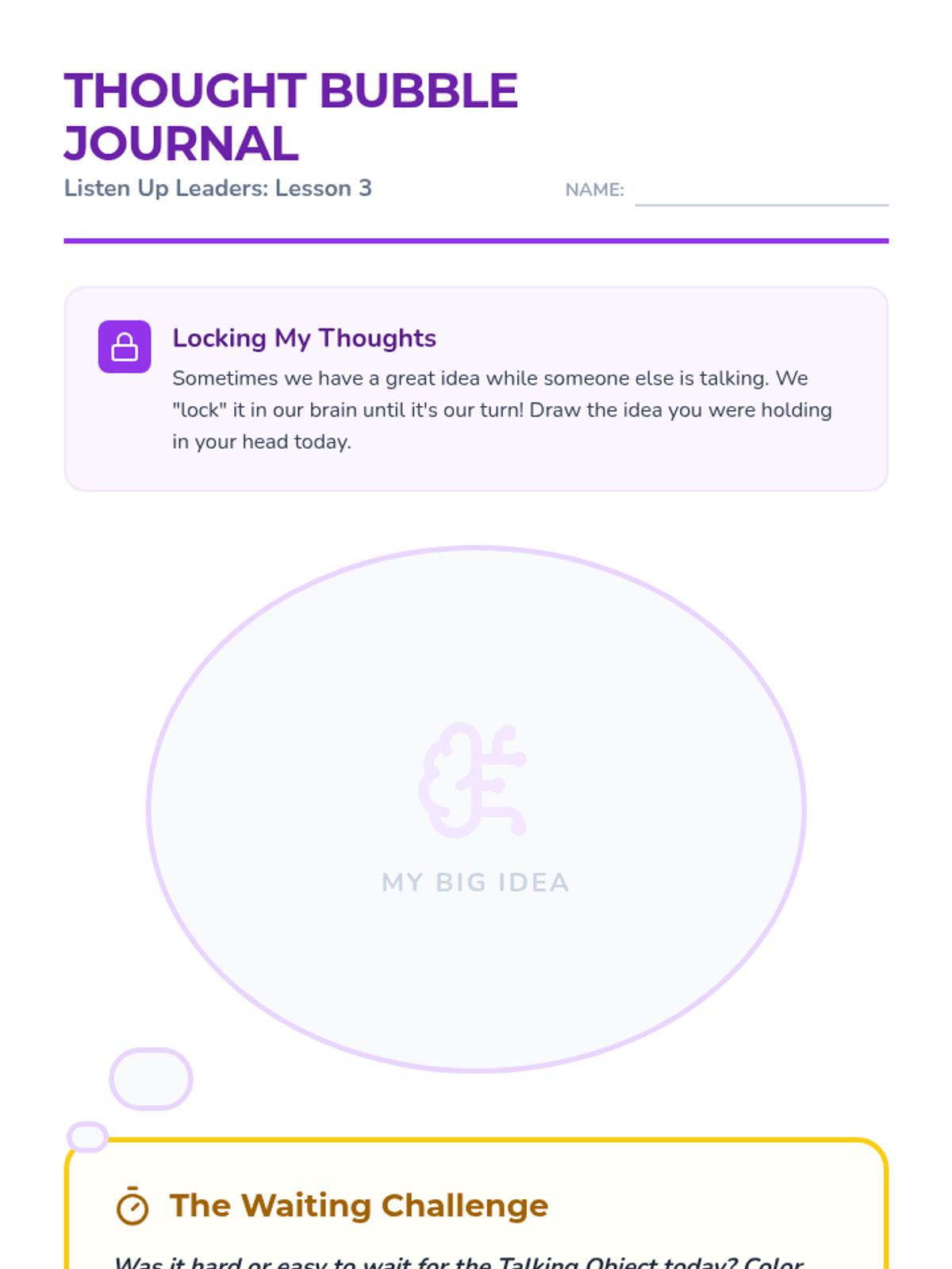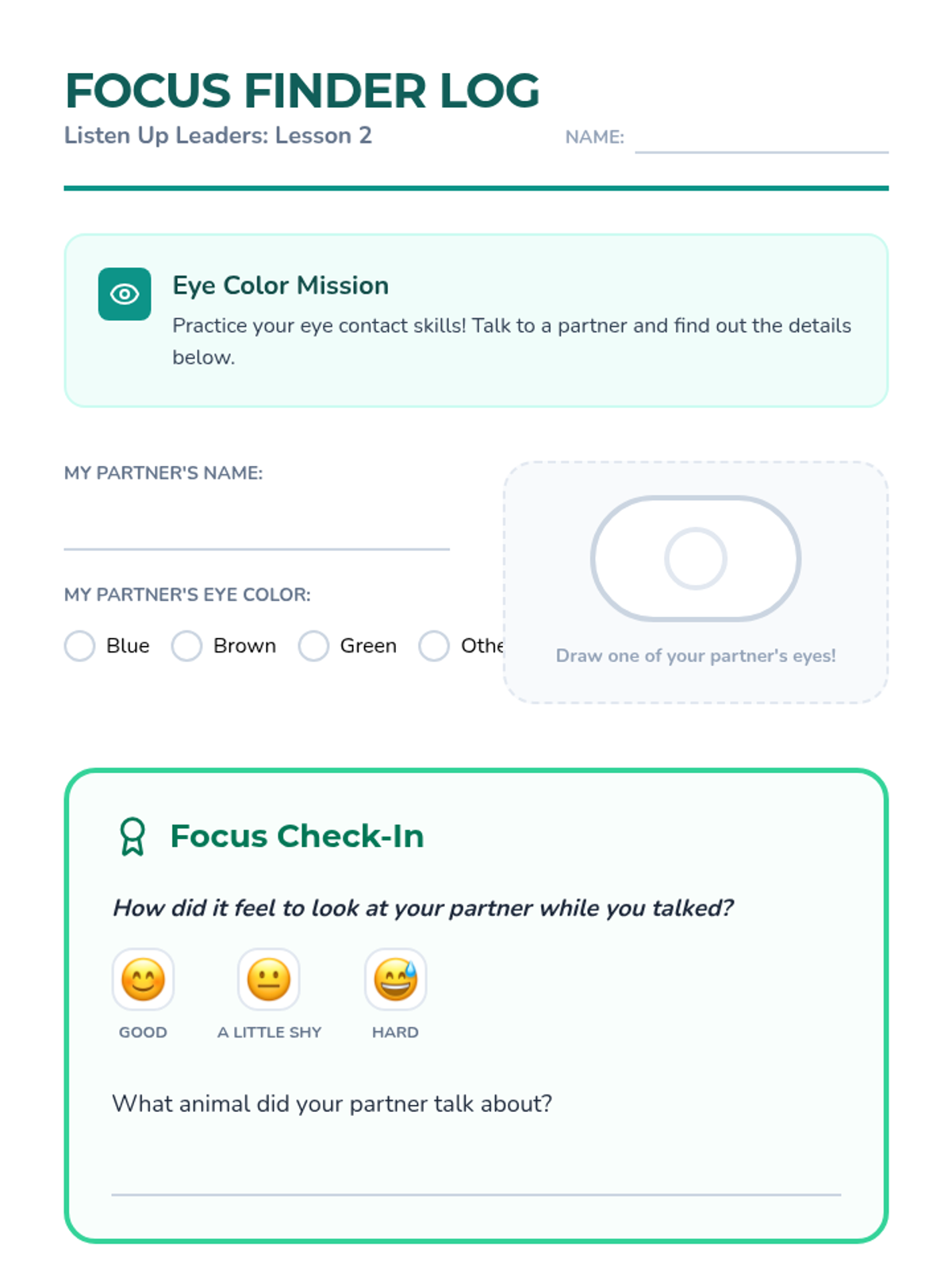 This sequence introduces first-grade students to the fundamental concepts of active listening, moving beyond just hearing words to understanding 'whole body listening.' Students explore how eye contact, body language, and non-verbal cues show respect and attention in a group setting.