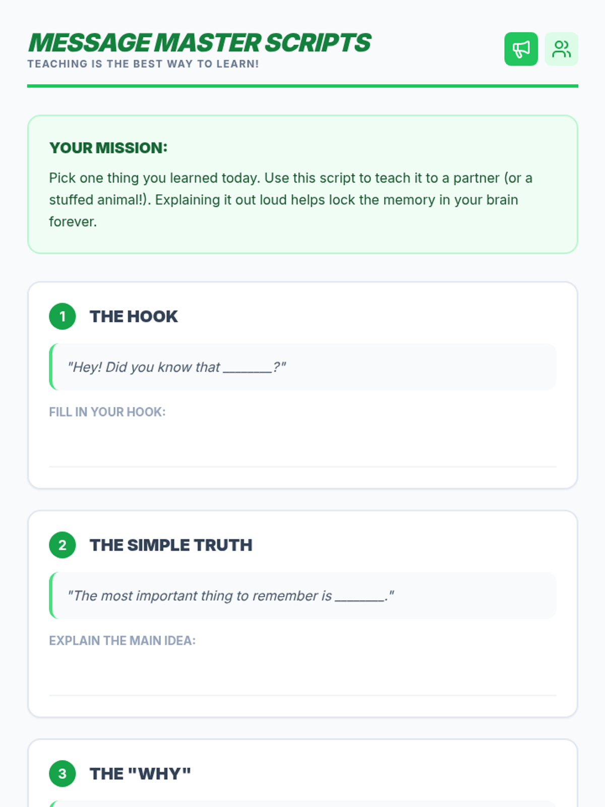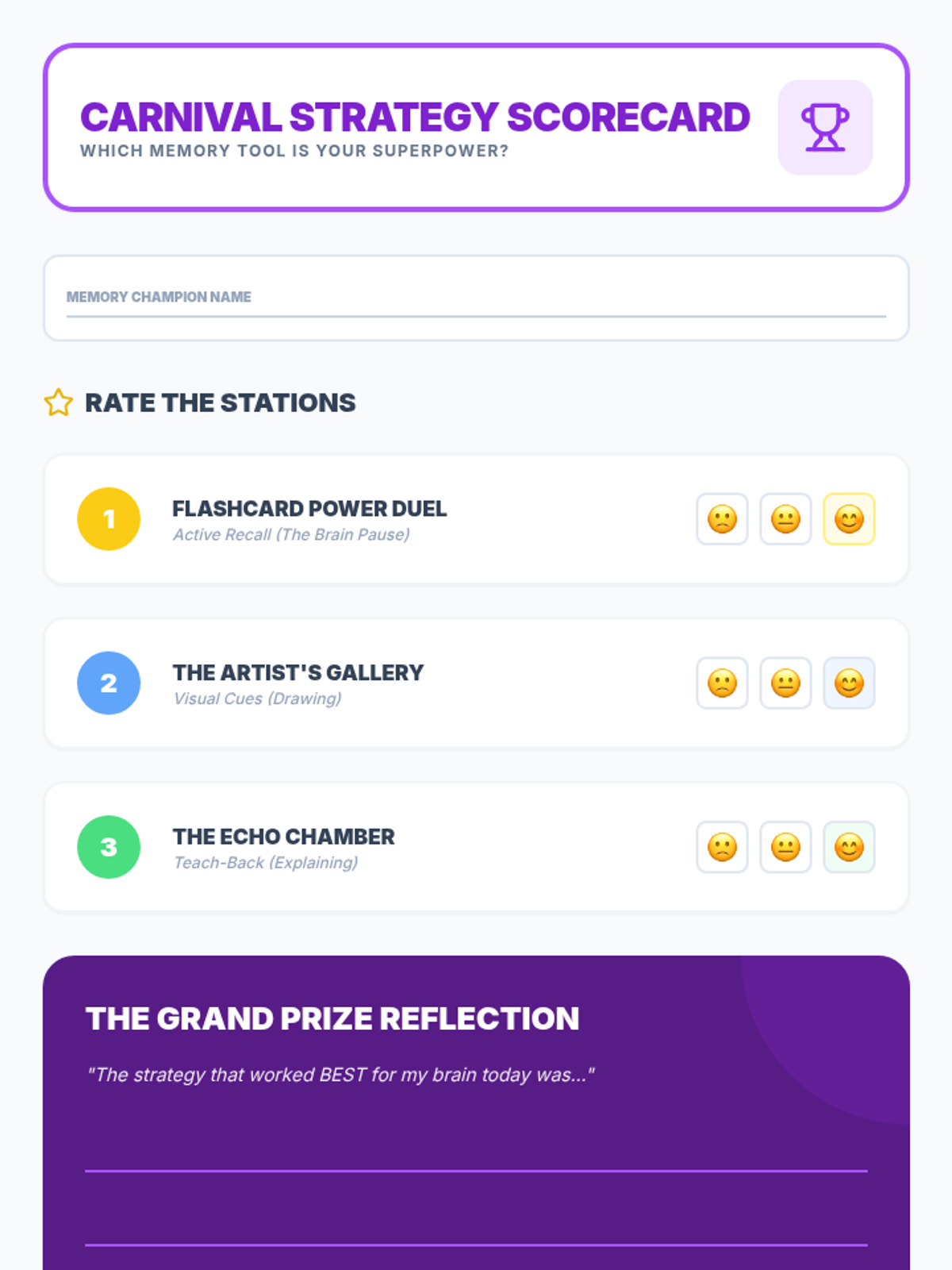 A 5-lesson sequence designed for 3rd-grade students to build effective working memory through consistent review routines. Students explore the science of forgetting, practice active recall and teach-back methods, and establish a personalized spaced repetition schedule.