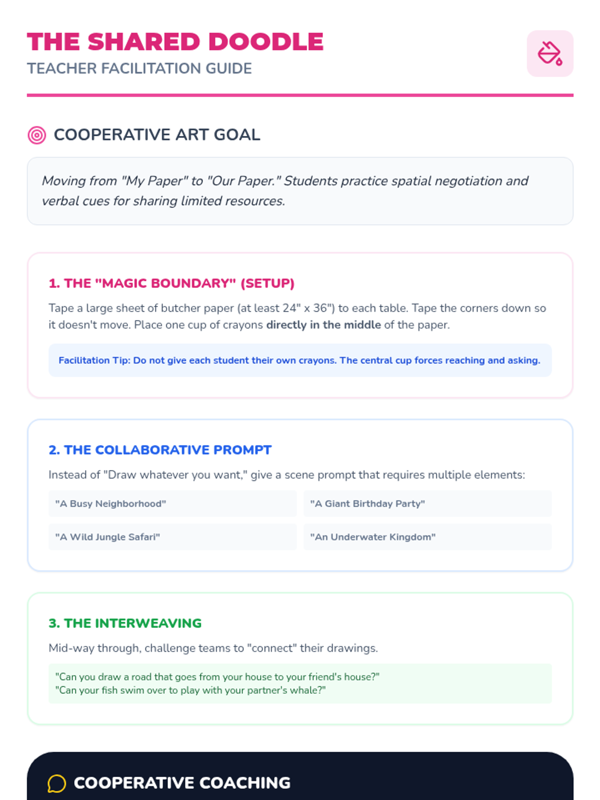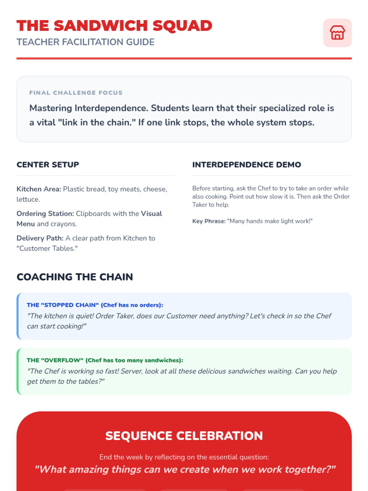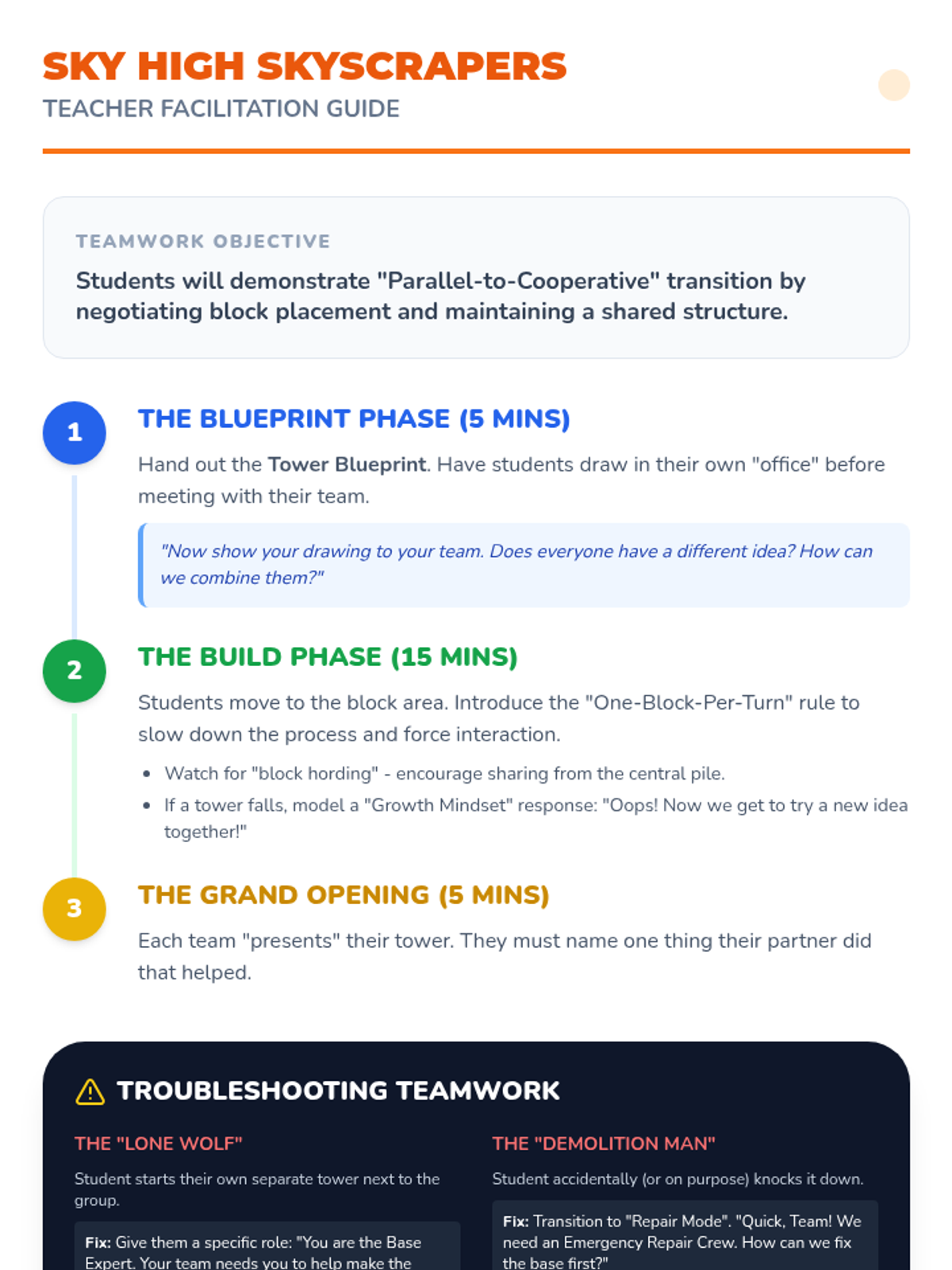 A Pre-K sequence focused on moving from parallel play to cooperative play through physical games, building challenges, shared art, and role-playing. Students learn the value of teamwork and collective problem-solving.