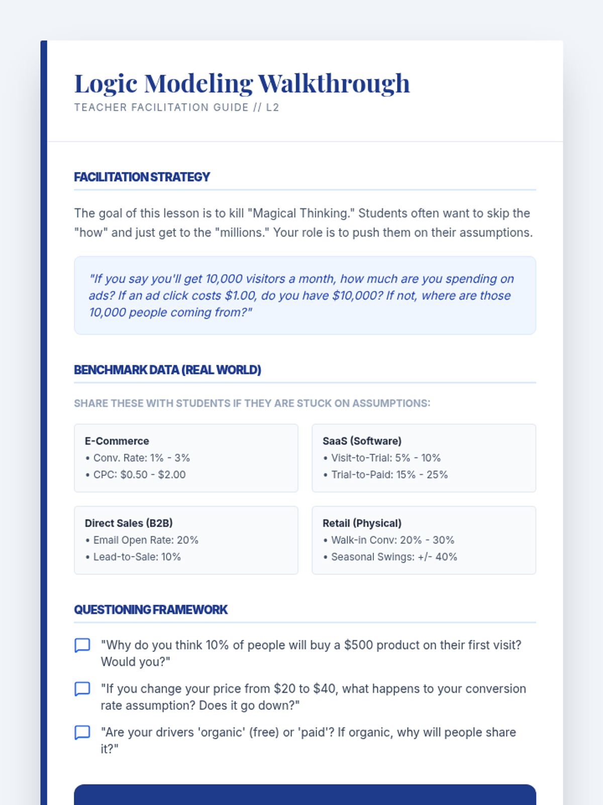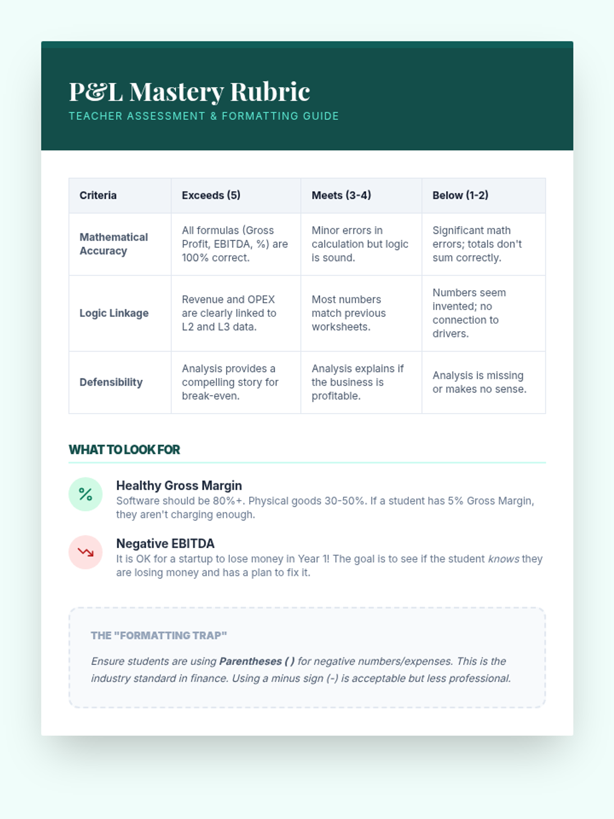 This sequence guides 10th-grade students through the technical and persuasive aspects of financial modeling for startups. Students learn to build bottom-up projections, analyze unit economics, and present a professional Profit and Loss statement to potential investors.