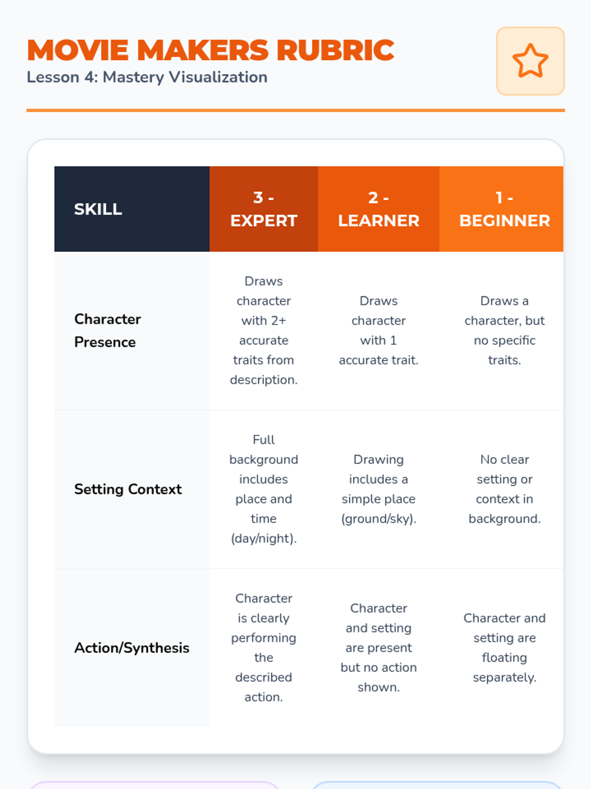 This sequence teaches Kindergarten students to use visualization and sketching as mnemonic devices for narrative comprehension. Students move from capturing single 'snapshots' of key events to building a full three-part storyboard, supporting working memory and story recall.