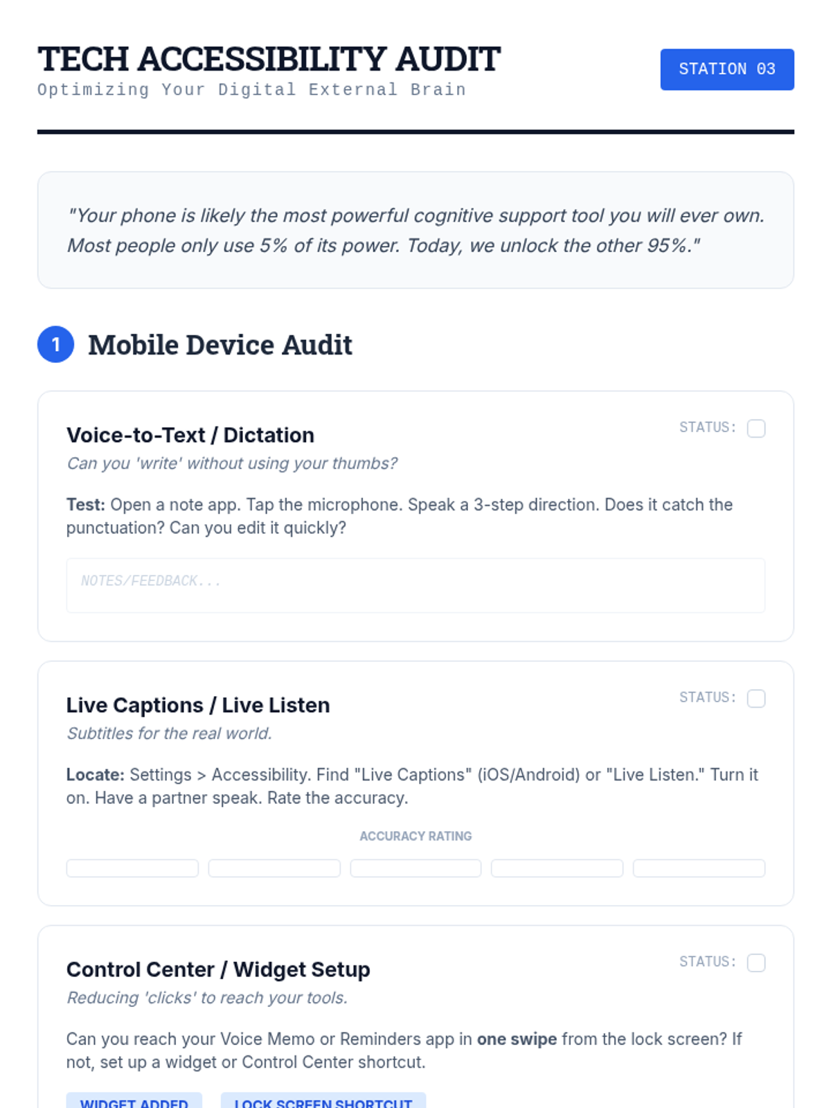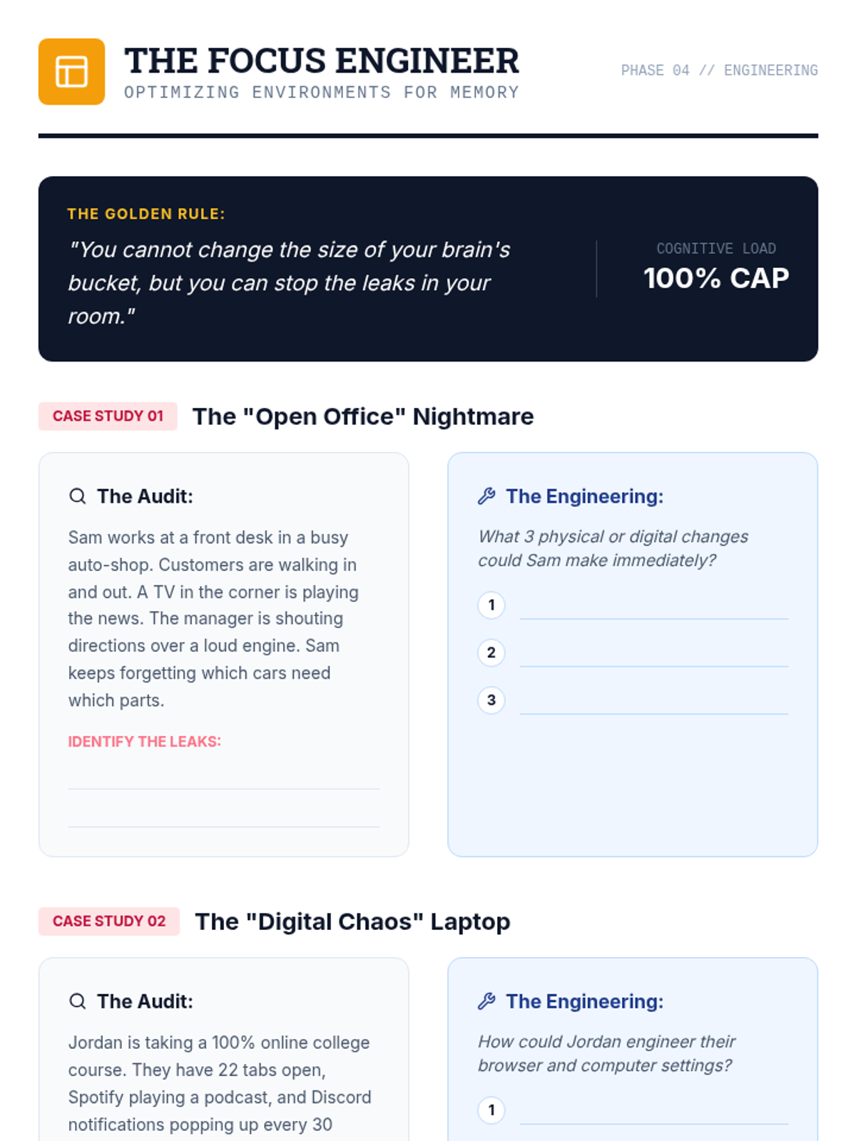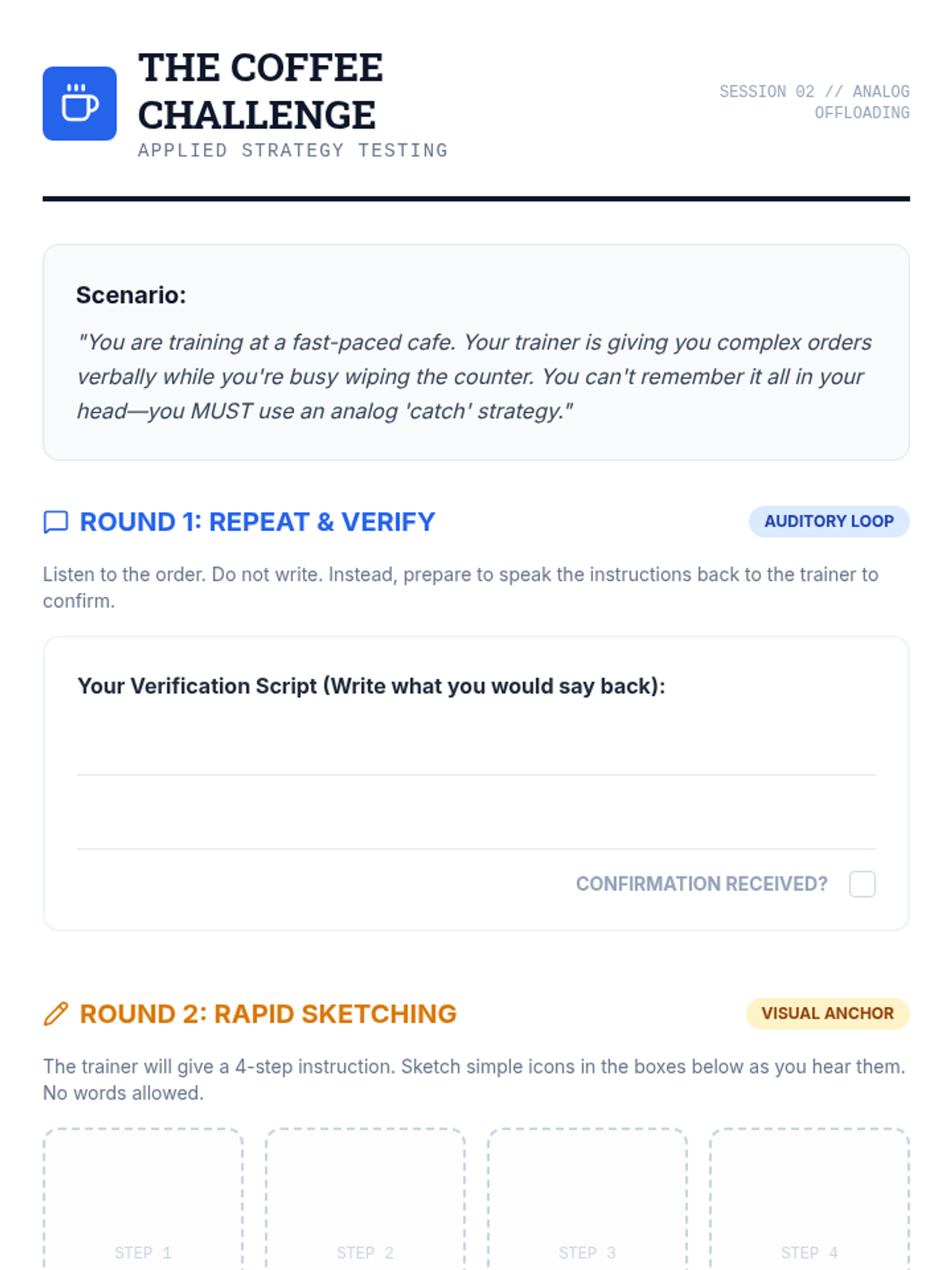 A metacognitive sequence for 12th-grade students to understand their working memory profiles and build a personalized 'external brain' toolkit for following multi-step directions. Students move from self-diagnosis to strategy mastery and finally to self-advocacy for transition to college or the workforce.