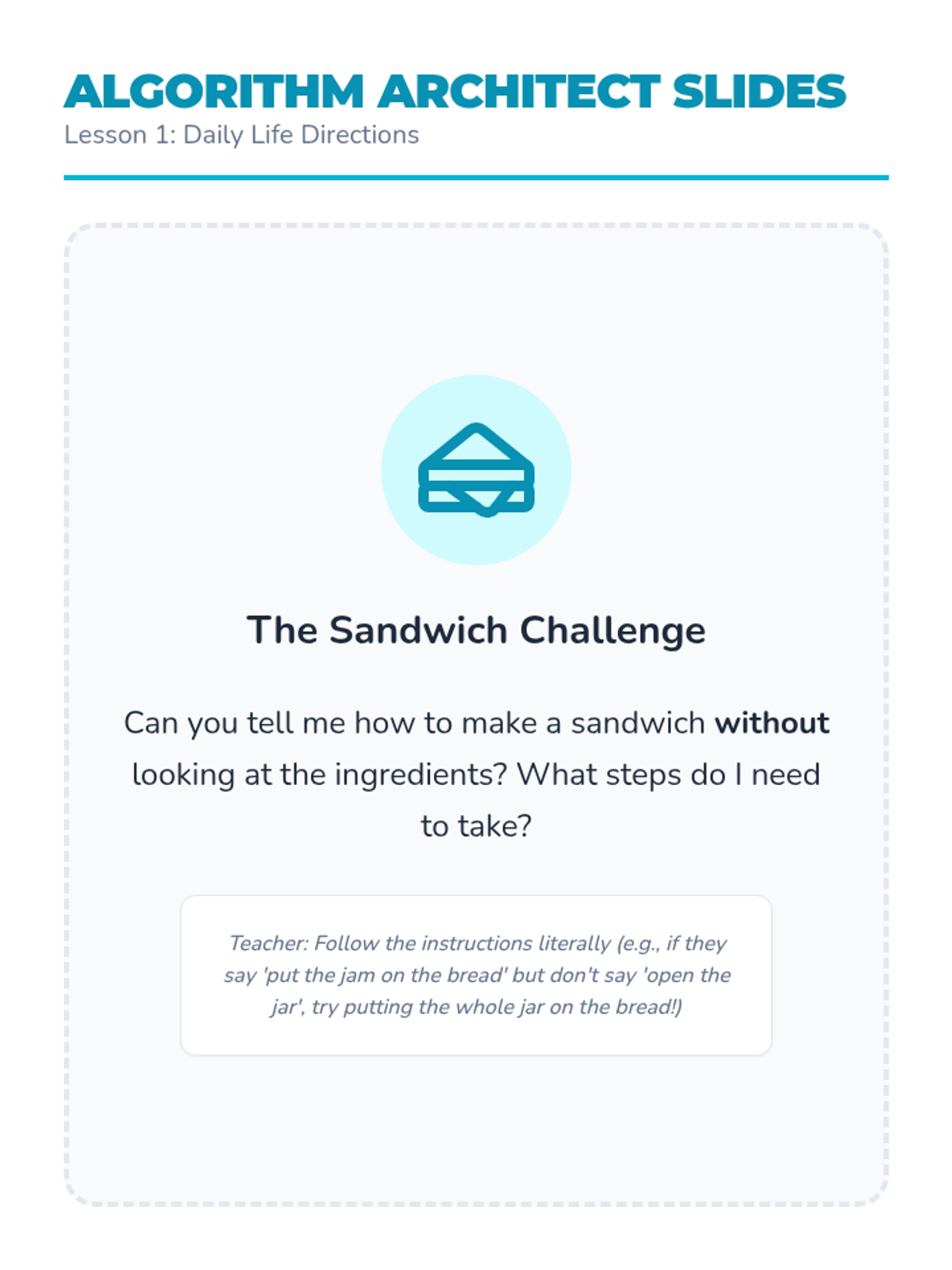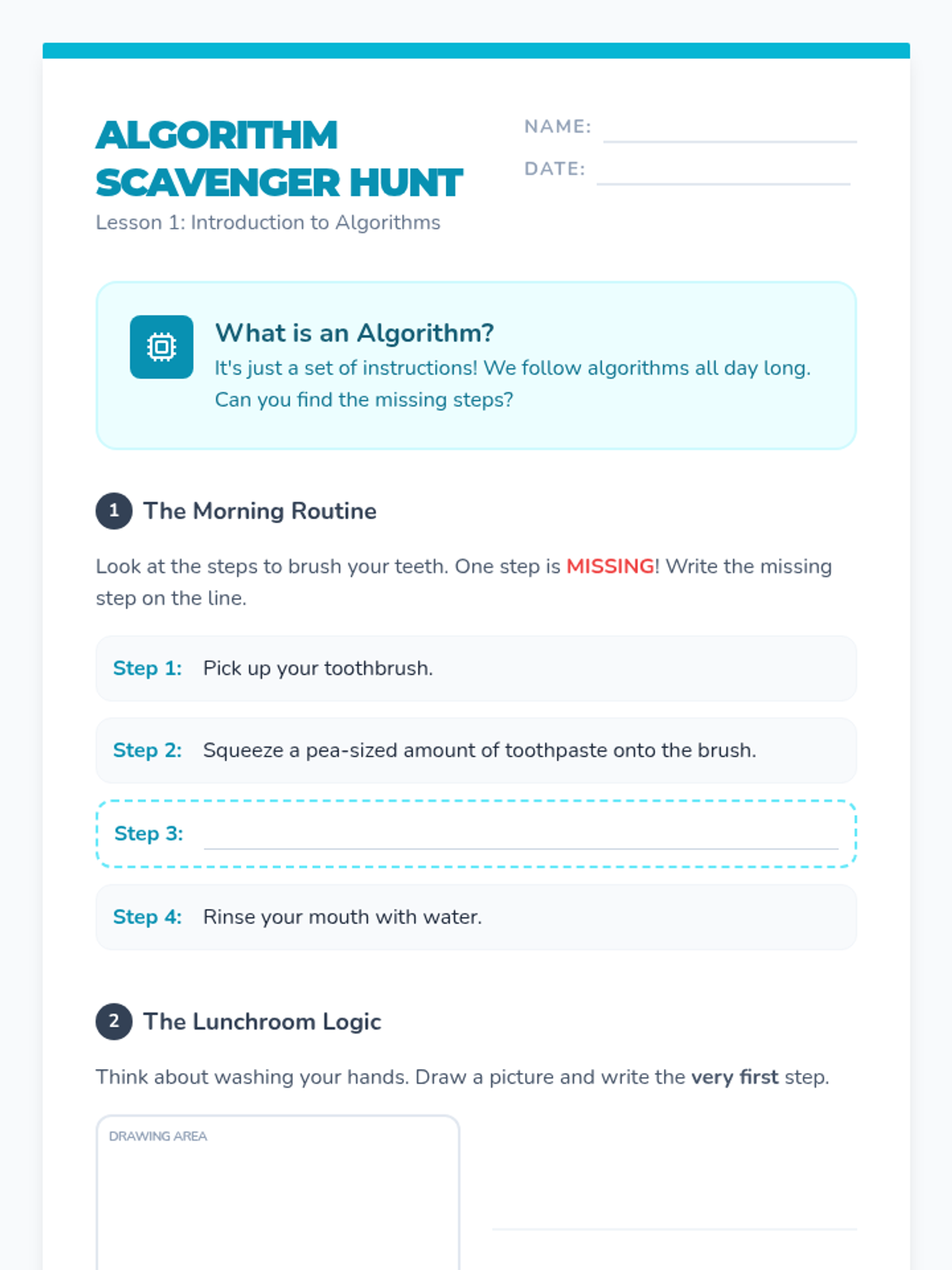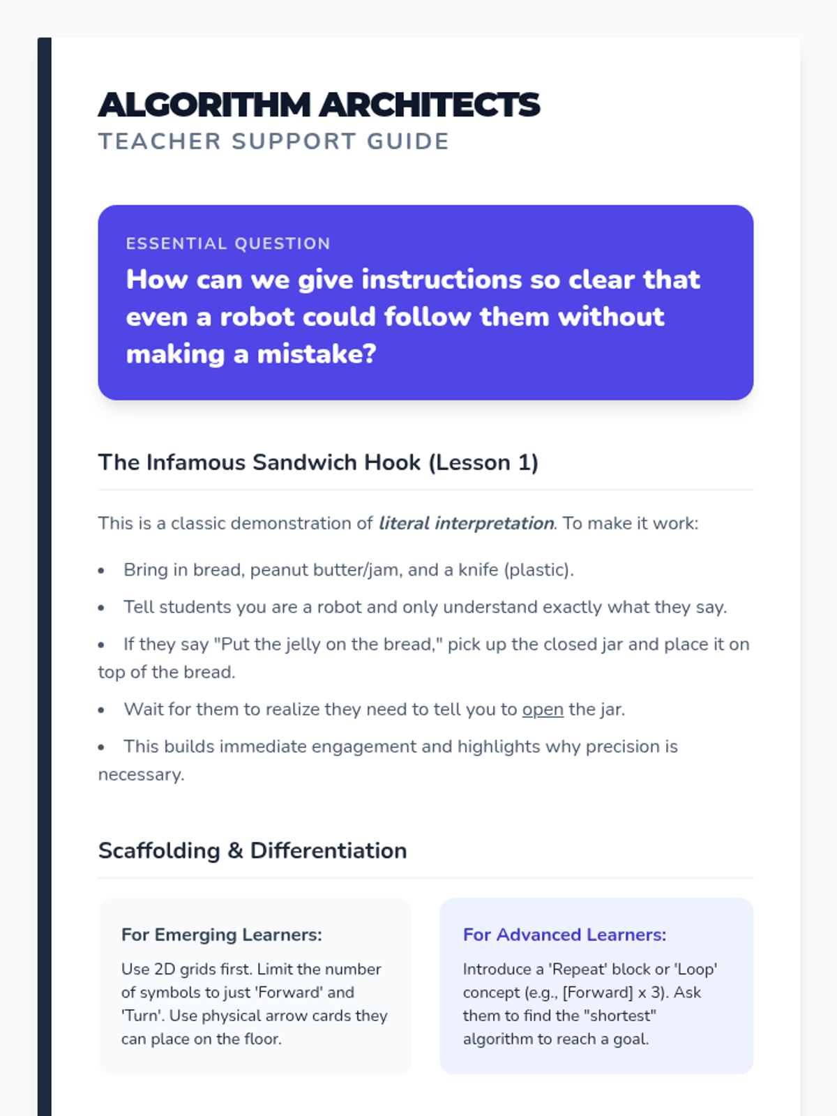 A foundational sequence for 2nd-grade students to understand algorithms as precise instructions. Students move from verbal routines to symbolic representations, emphasizing sequencing, precision, and logical thinking.
