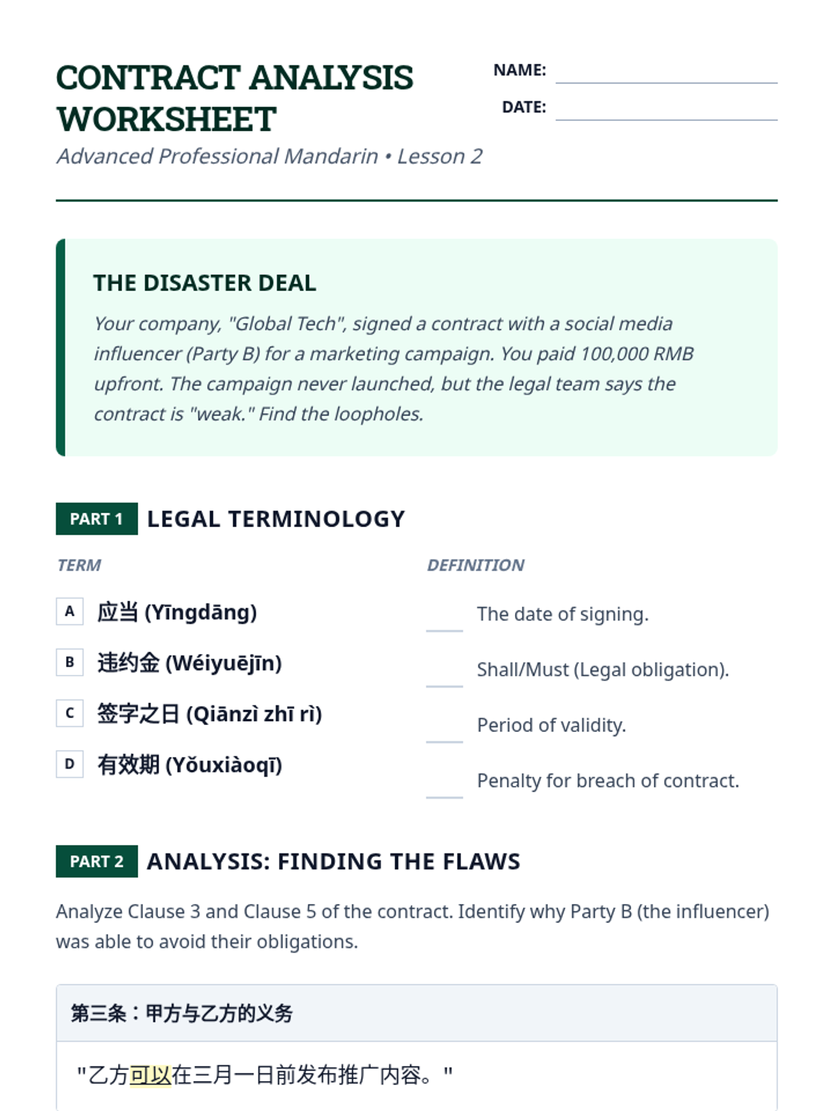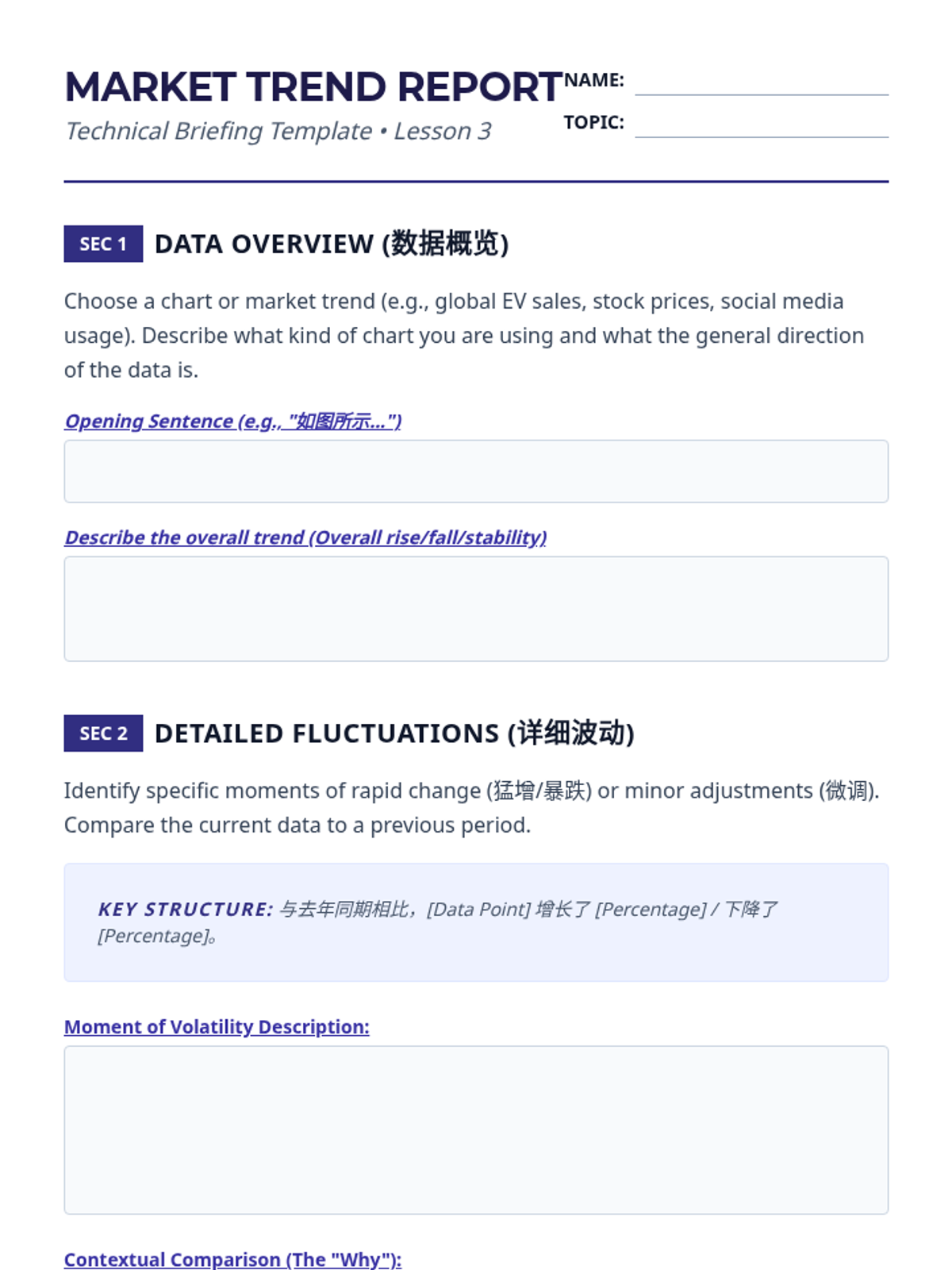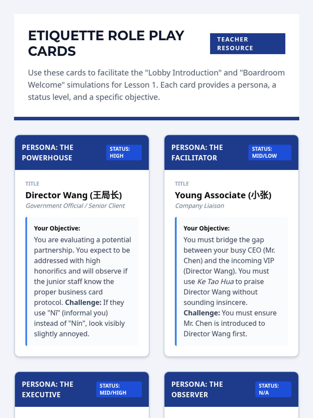 This advanced Mandarin Chinese sequence prepares 12th-grade students for professional environments by focusing on formal business etiquette, contract terminology, data presentation, and high-stakes negotiation strategies. Through simulations and authentic text analysis, students master the linguistic nuances of power dynamics and cultural expectations in global commerce.