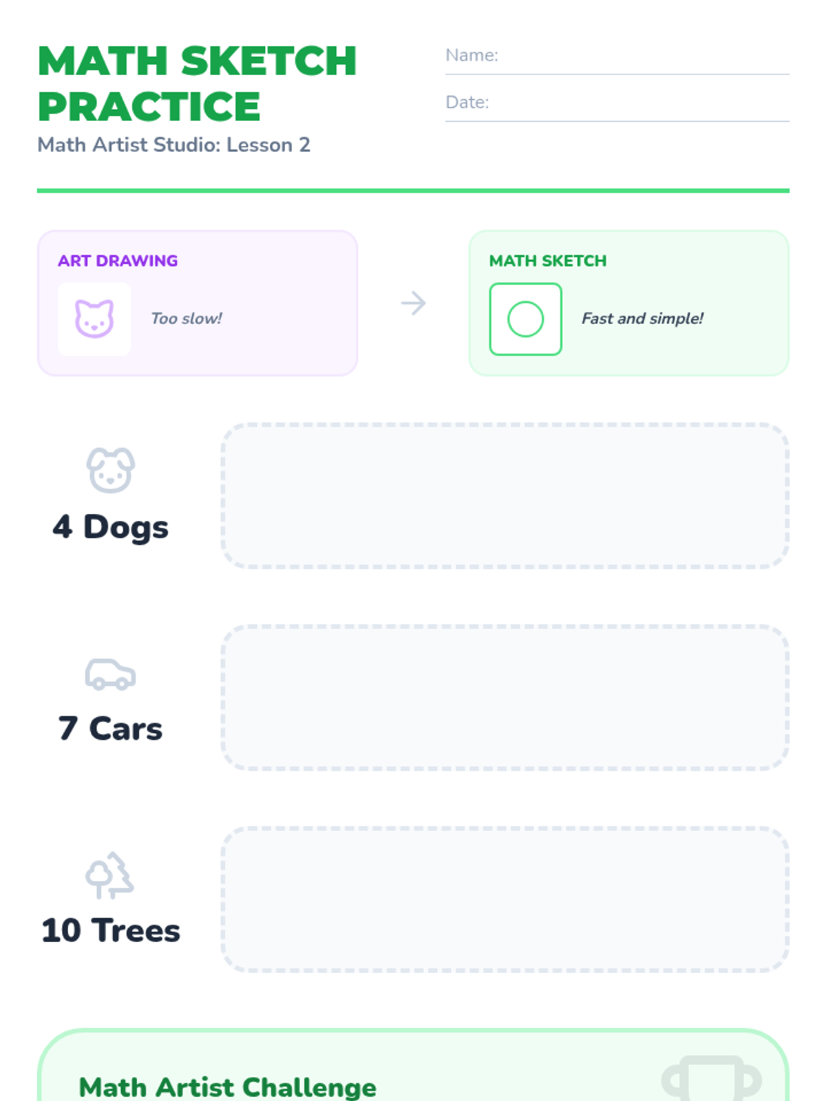 This sequence bridges the gap between concrete manipulatives and two-dimensional drawings for Kindergarten students needing academic support. It guides students from tracing physical objects to using simple 'math drawings' (circles) for addition and subtraction.