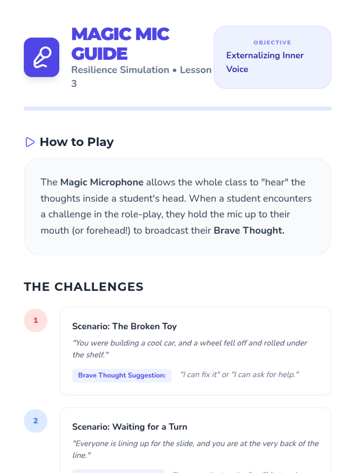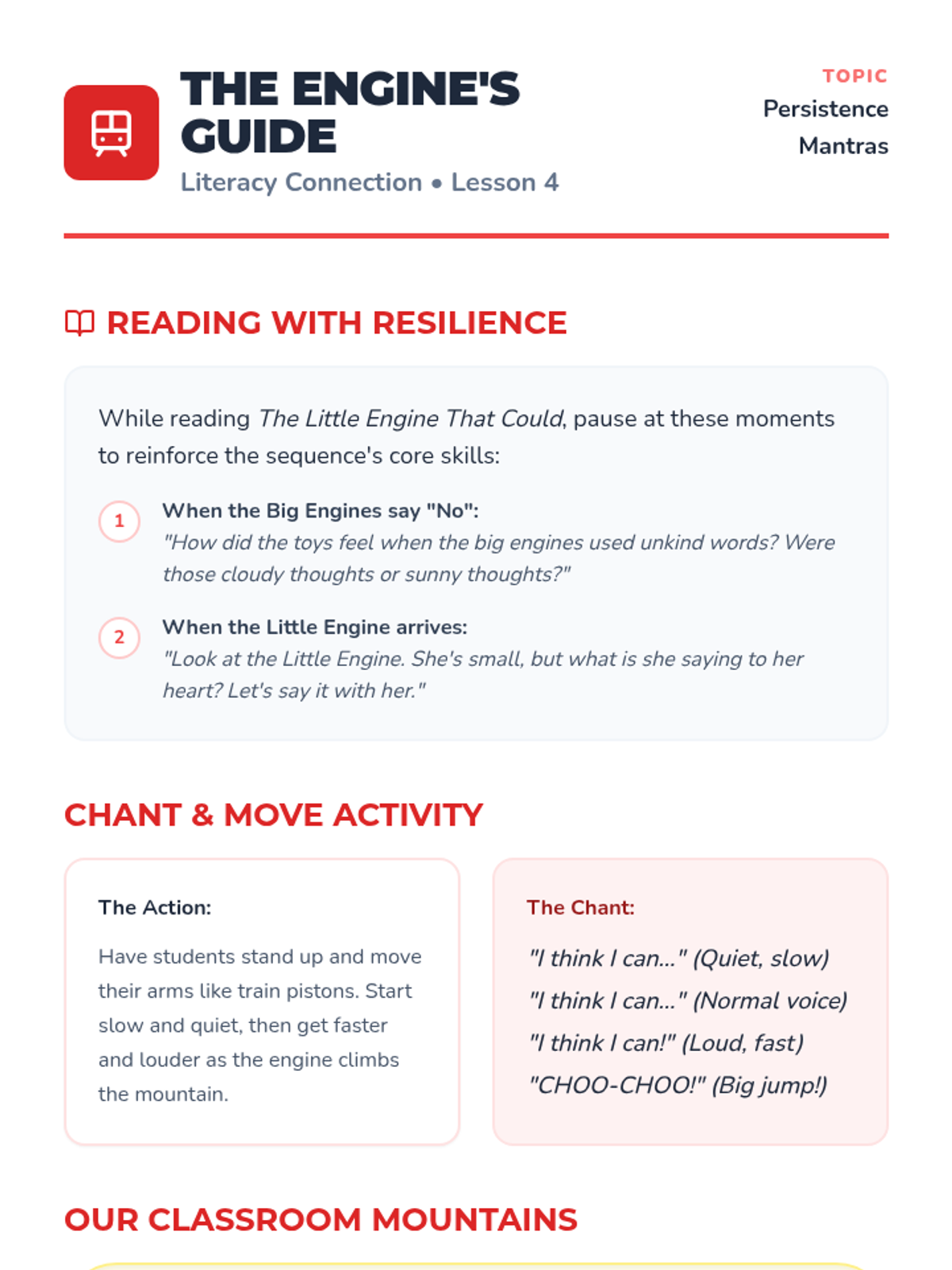 A series of lessons designed for early childhood learners to develop emotional regulation and resilience during academic and social challenges.