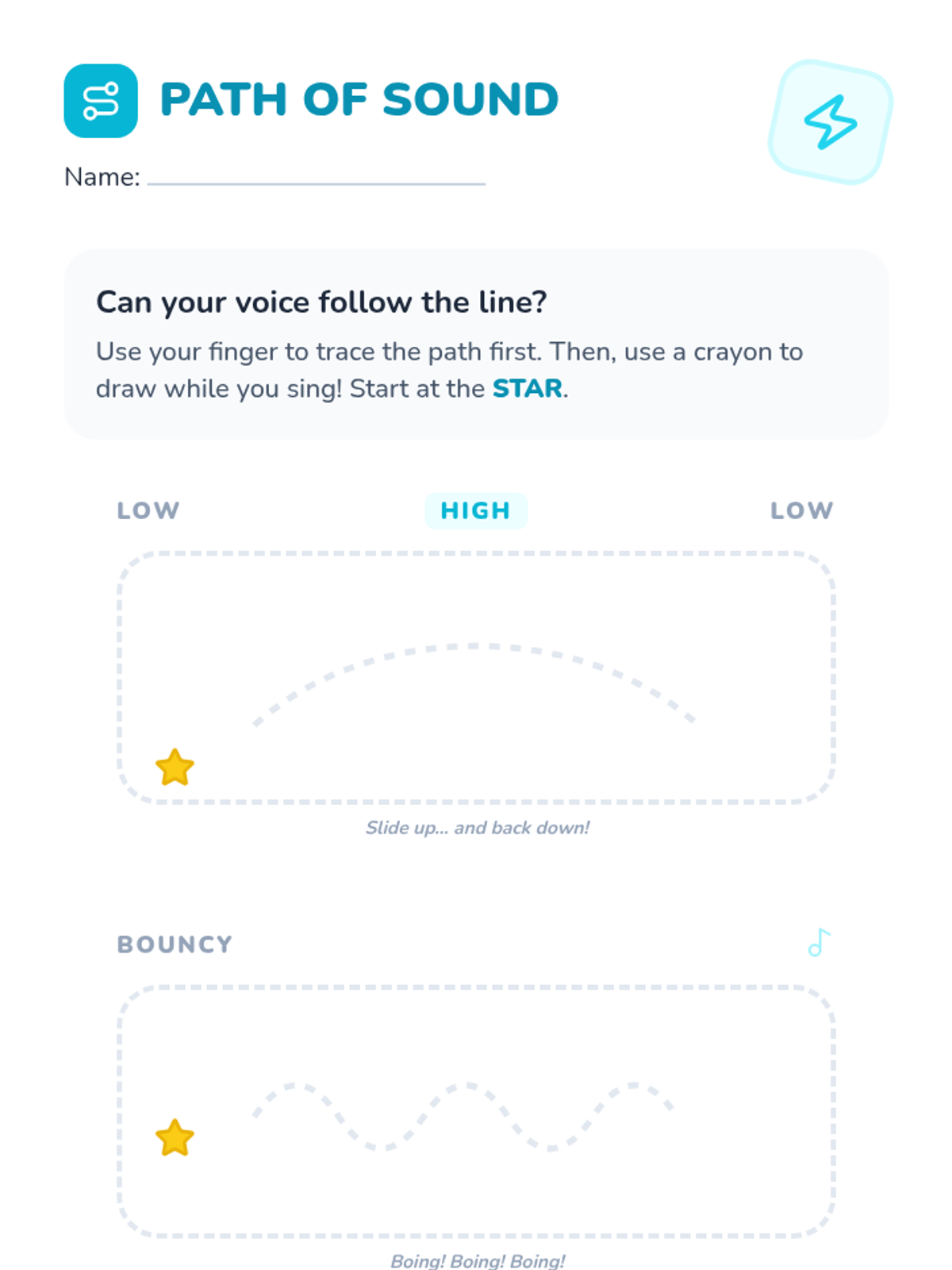 A foundational music sequence for Pre-K students exploring pitch discrimination, melodic contour, and the transition from sound to symbolic graphic notation. Through kinesthetic movement, vocal play, and creative drawing, students learn to visualize and perform high and low sounds.
