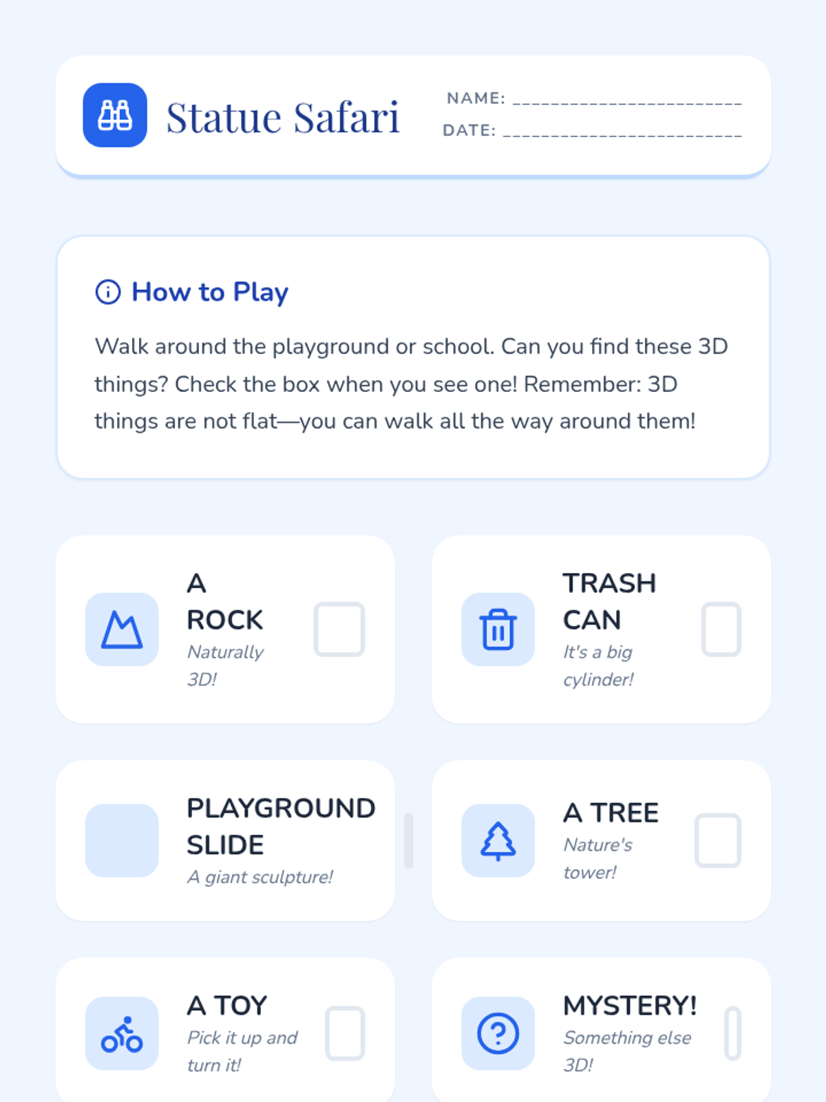 This sequence introduces Pre-K students to 3D art through paper engineering. Students explore how flat paper can be transformed into structural forms using crumpling, tearing, folding, and rolling.