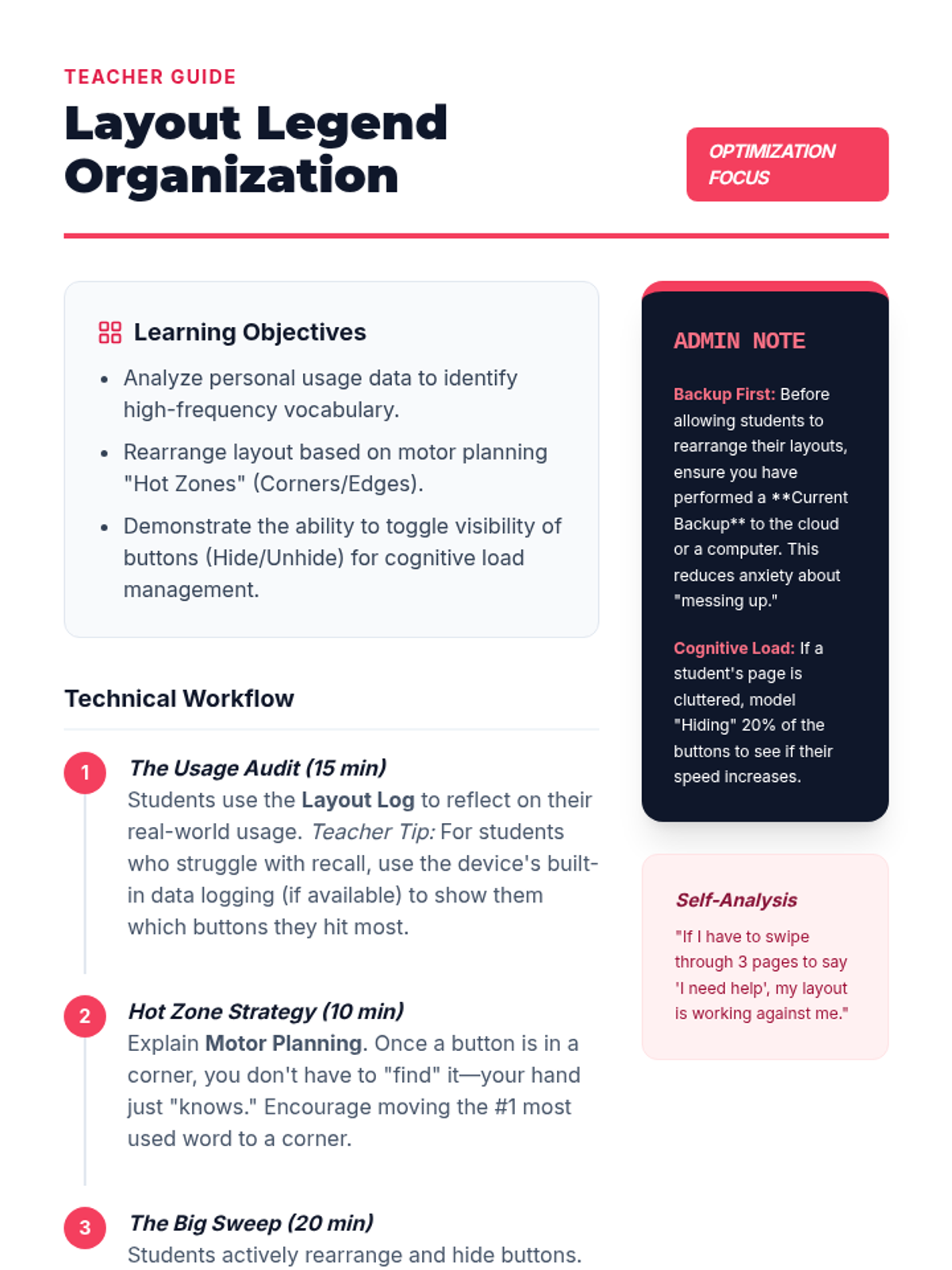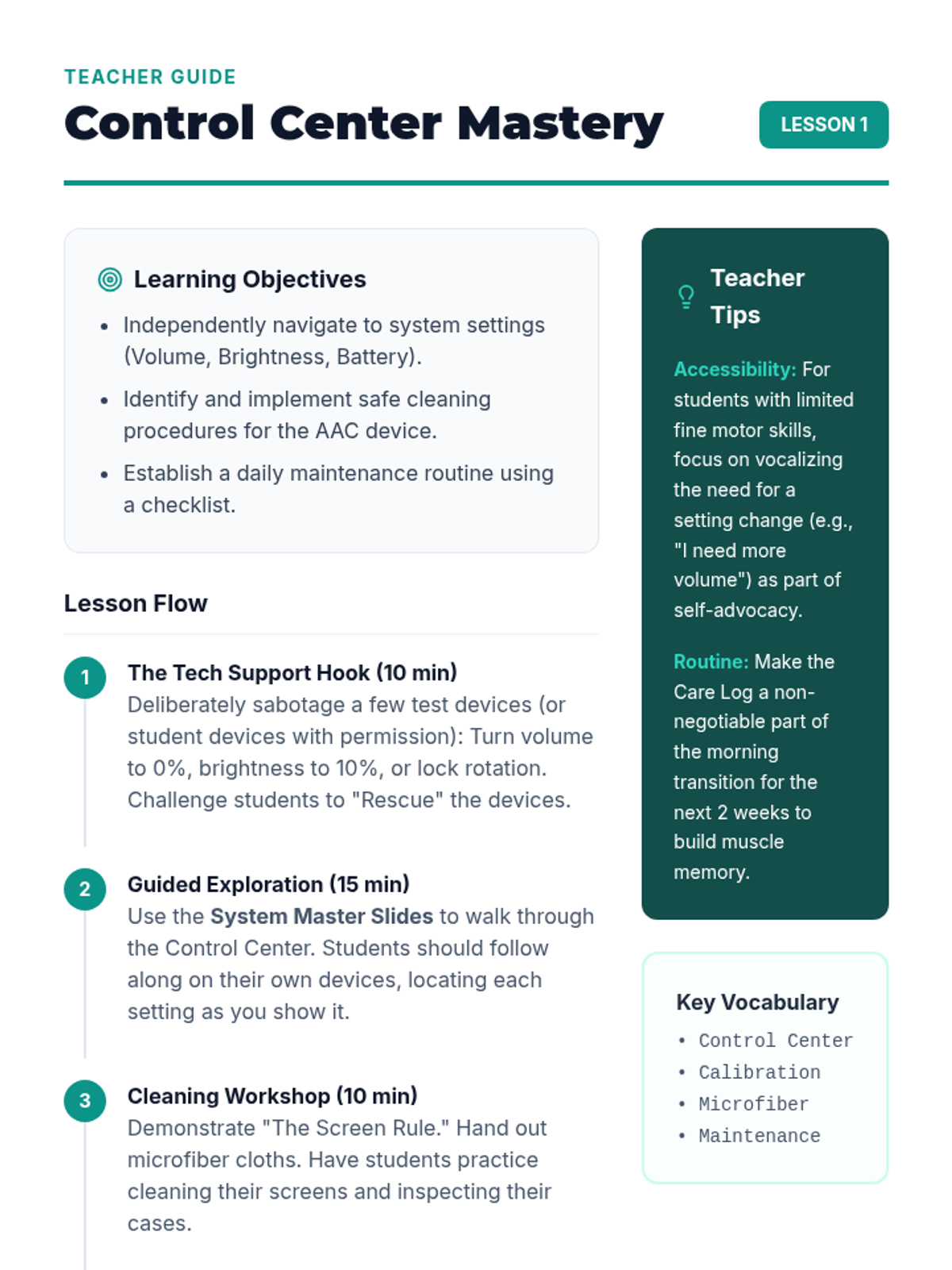 This workshop-style sequence empowers 7th-grade students to take ownership of their AAC device organization and maintenance, transitioning from passive users to active administrators of their communication systems.