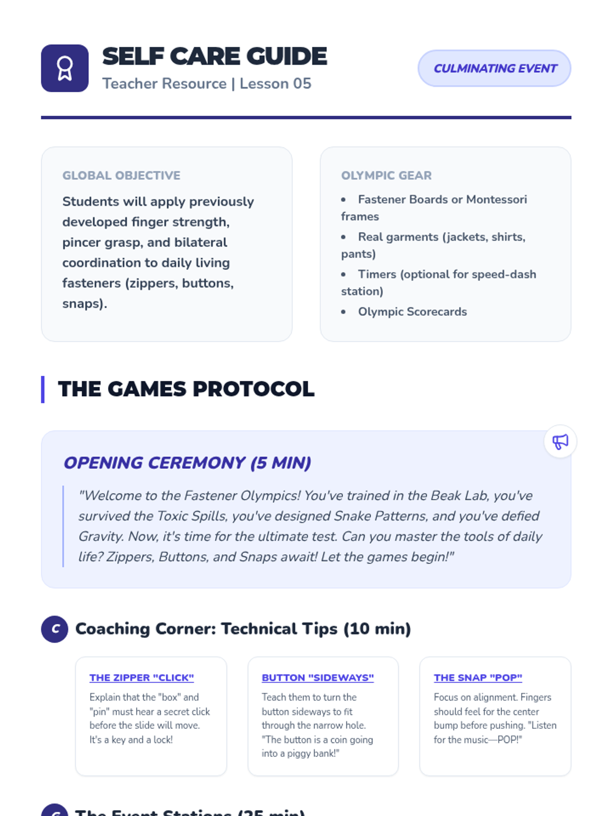 A comprehensive training module for paraprofessionals to support K-8 students in sensory regulation. It focuses on identifying internal states, building sensory menus, and implementing proactive breaks to maintain a 'ready to learn' zone.