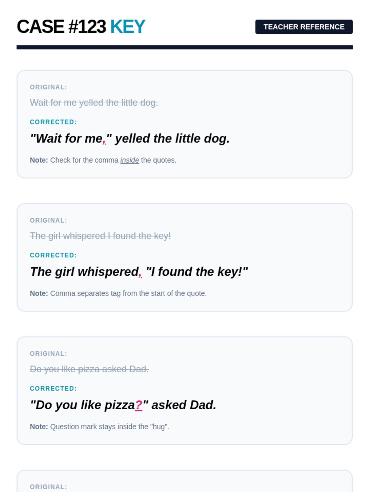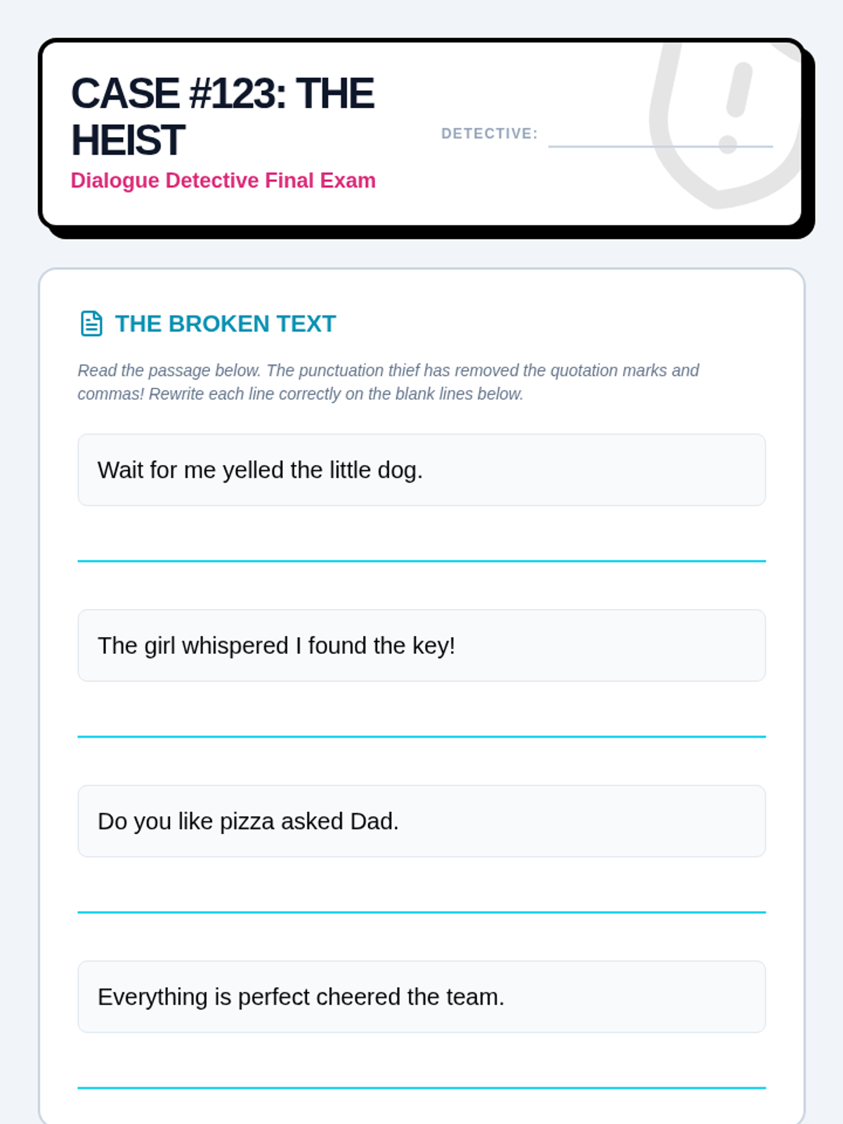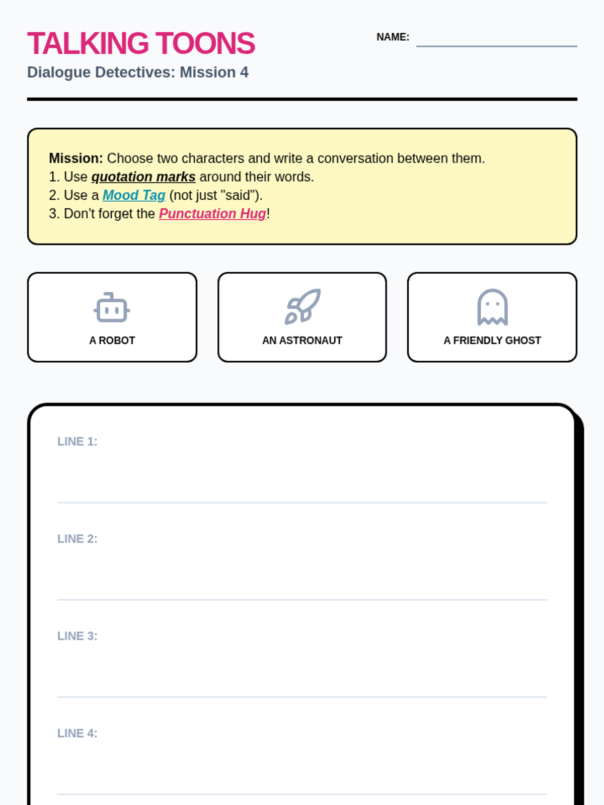 A 2nd-grade grammar sequence that transitions students from visual speech bubbles to written quotation marks, focusing on identifying direct speech, speaker tags, and correct punctuation placement.