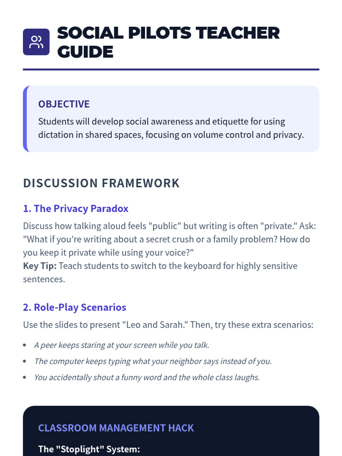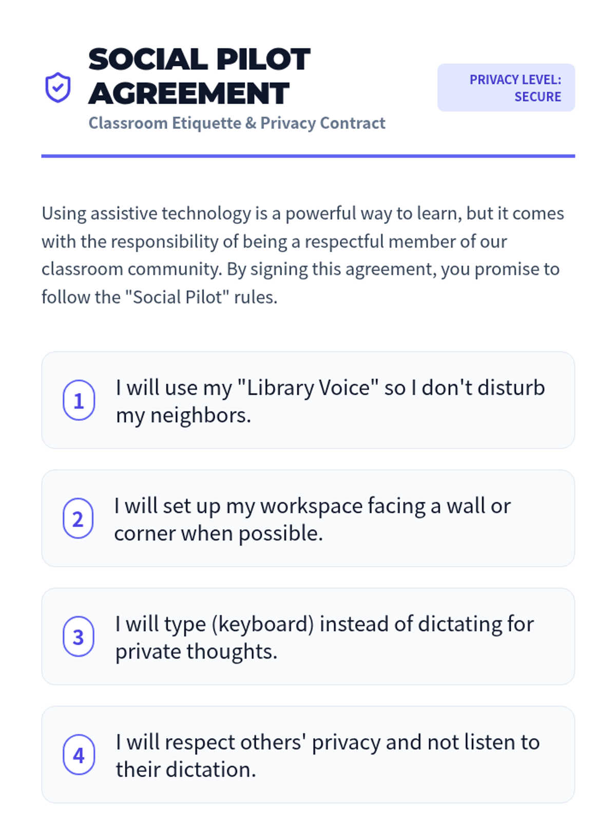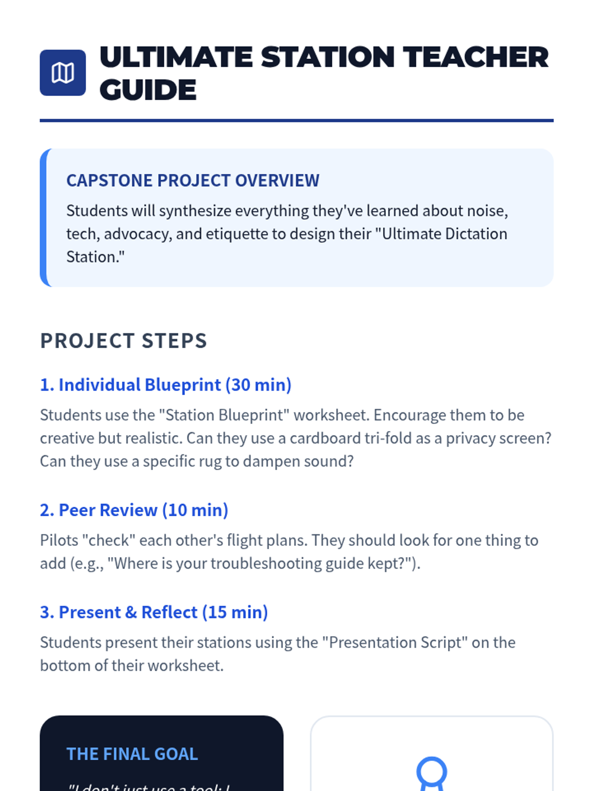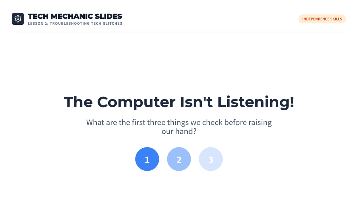 This sequence empowers 5th-grade students to master their environment and advocate for their assistive technology needs. Students move beyond basic software use to analyze noise levels, troubleshoot hardware issues, practice social etiquette, and design their ideal workspace for speech-to-text success.