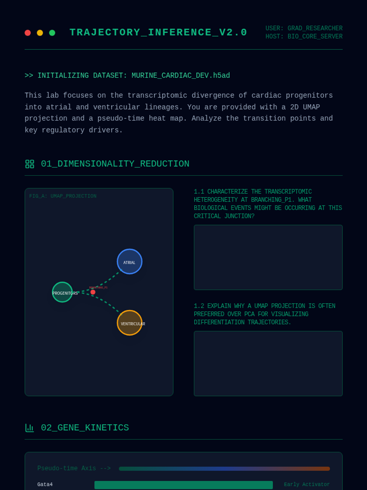 This advanced graduate sequence explores the molecular and epigenetic mechanisms governing cell differentiation. Students move from theoretical models of stem cell niches and Waddington landscapes to practical bioinformatic analysis of scRNA-seq data, culminating in the design of novel regenerative therapy protocols.