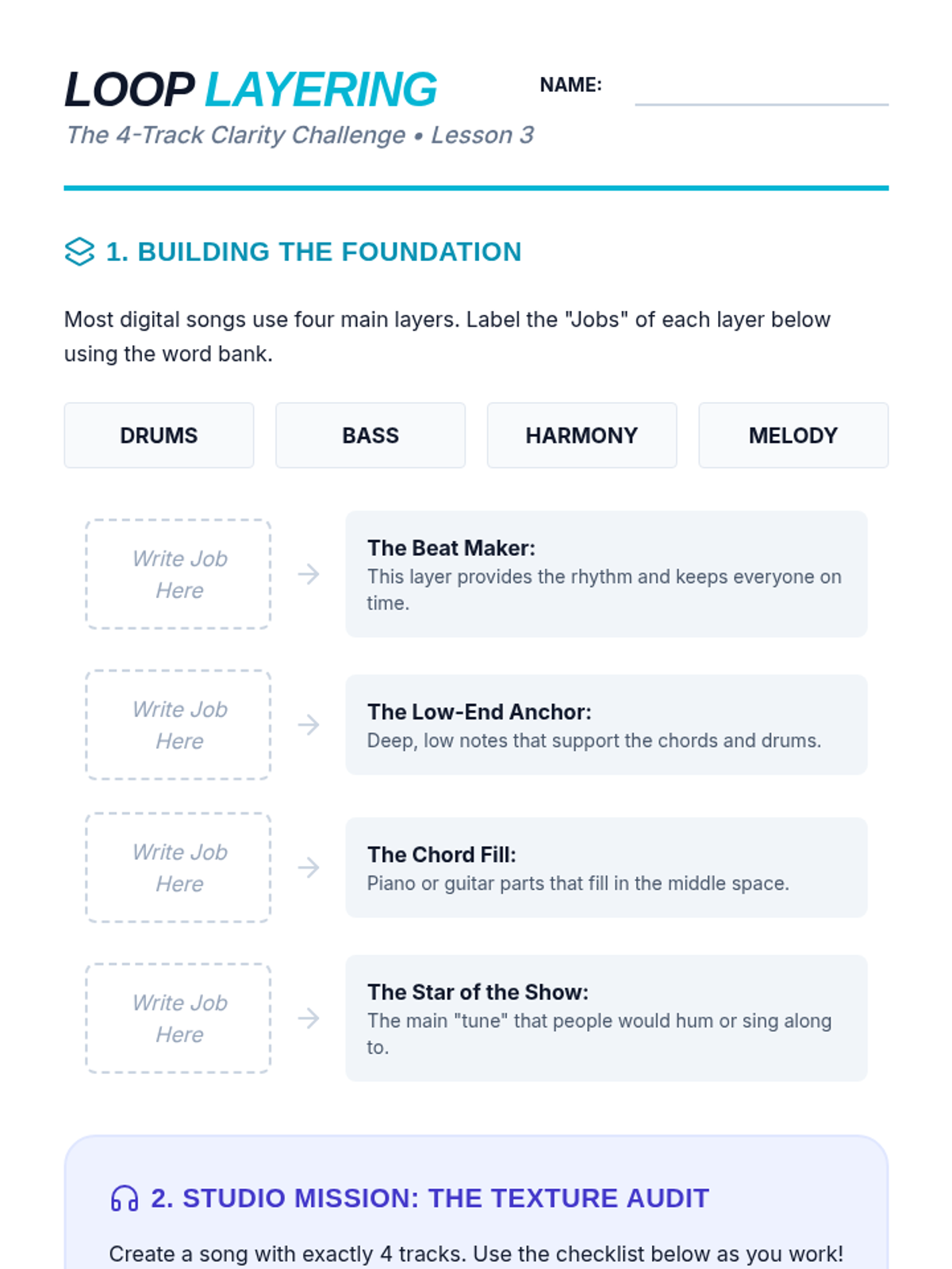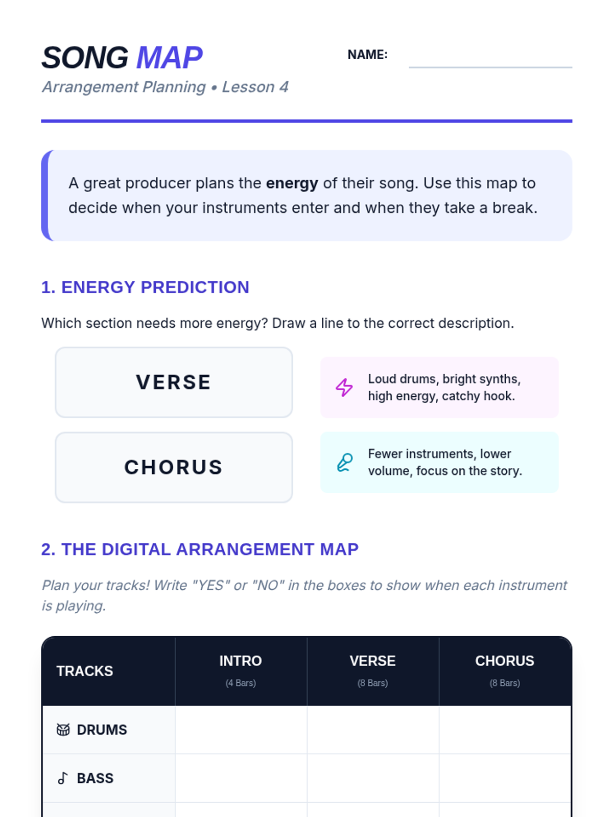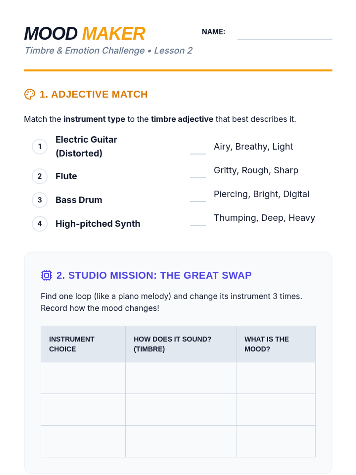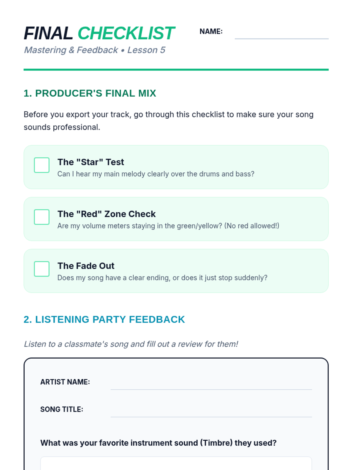 A 4th-grade music production unit where students use digital audio workstations (DAWs) to compose, arrange, and mix original music. Students learn about timbre, texture, song structure, and digital literacy through the lens of a modern music producer.