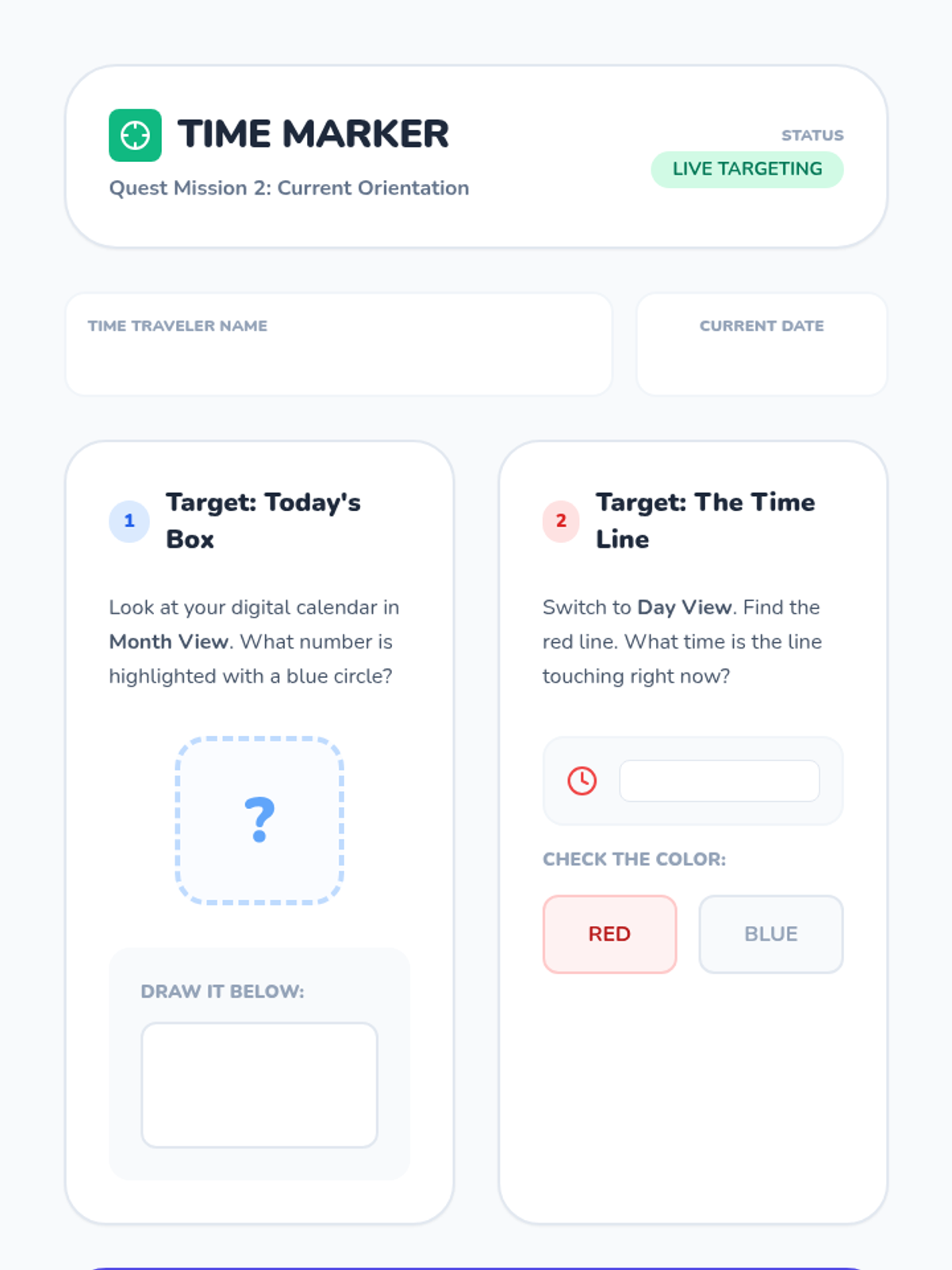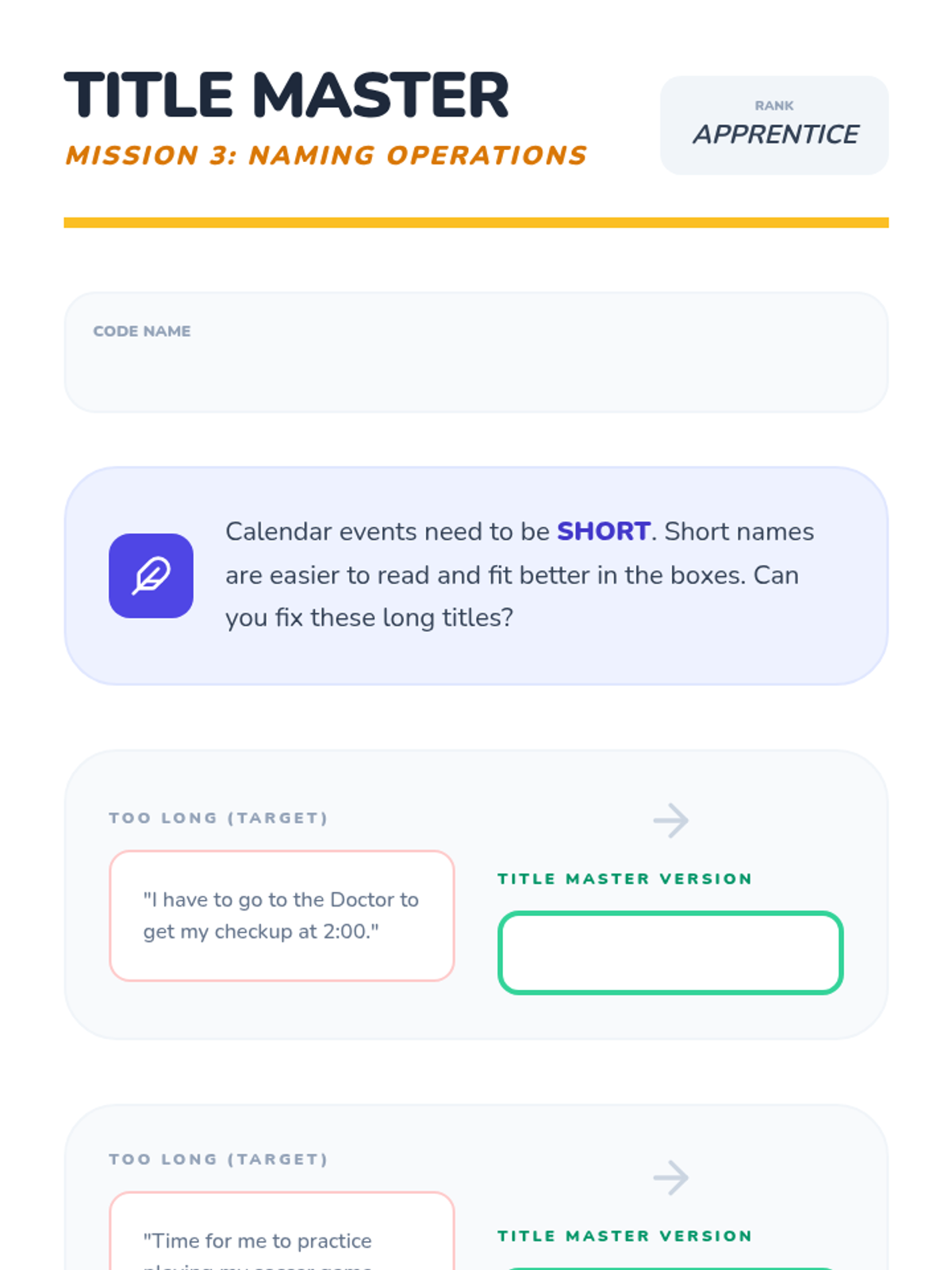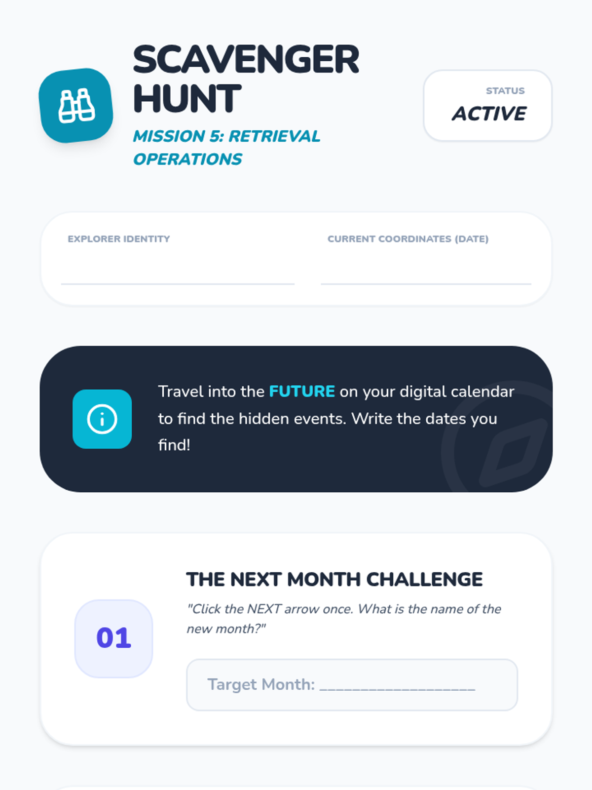 A sequence for 3rd Grade students to learn digital calendar navigation and entry. Designed for executive function support, students progress from basic interface navigation to creating and managing events.
