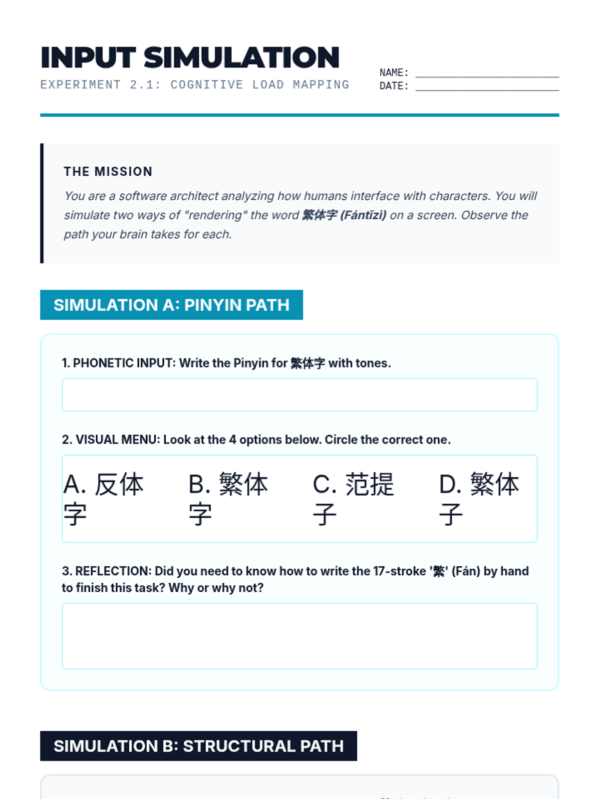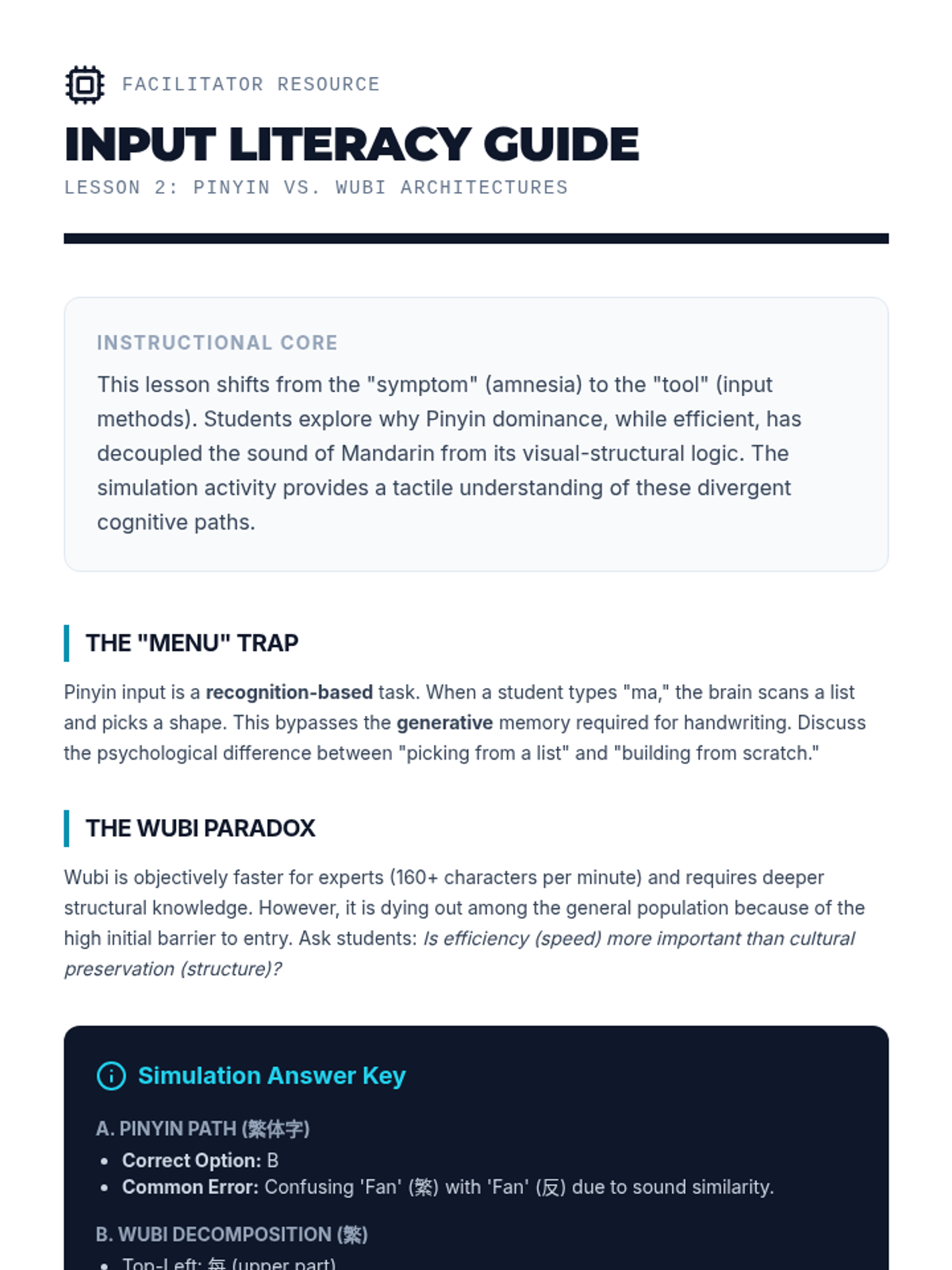 This sequence bridges the gap between classroom character learning and real-world application for graduate-level learners. By analyzing authentic artifacts like signage, menus, and business cards, students develop the 'environmental literacy' needed to navigate Mandarin-speaking urban and professional spaces.