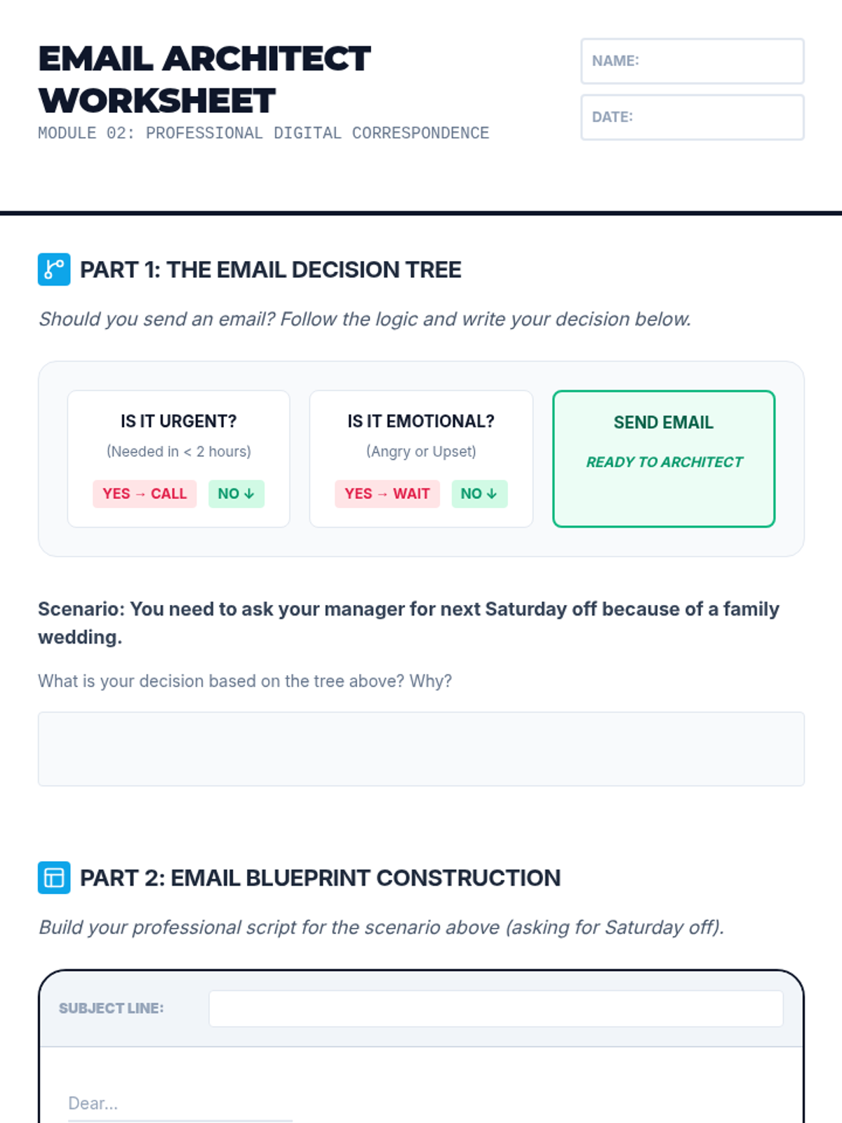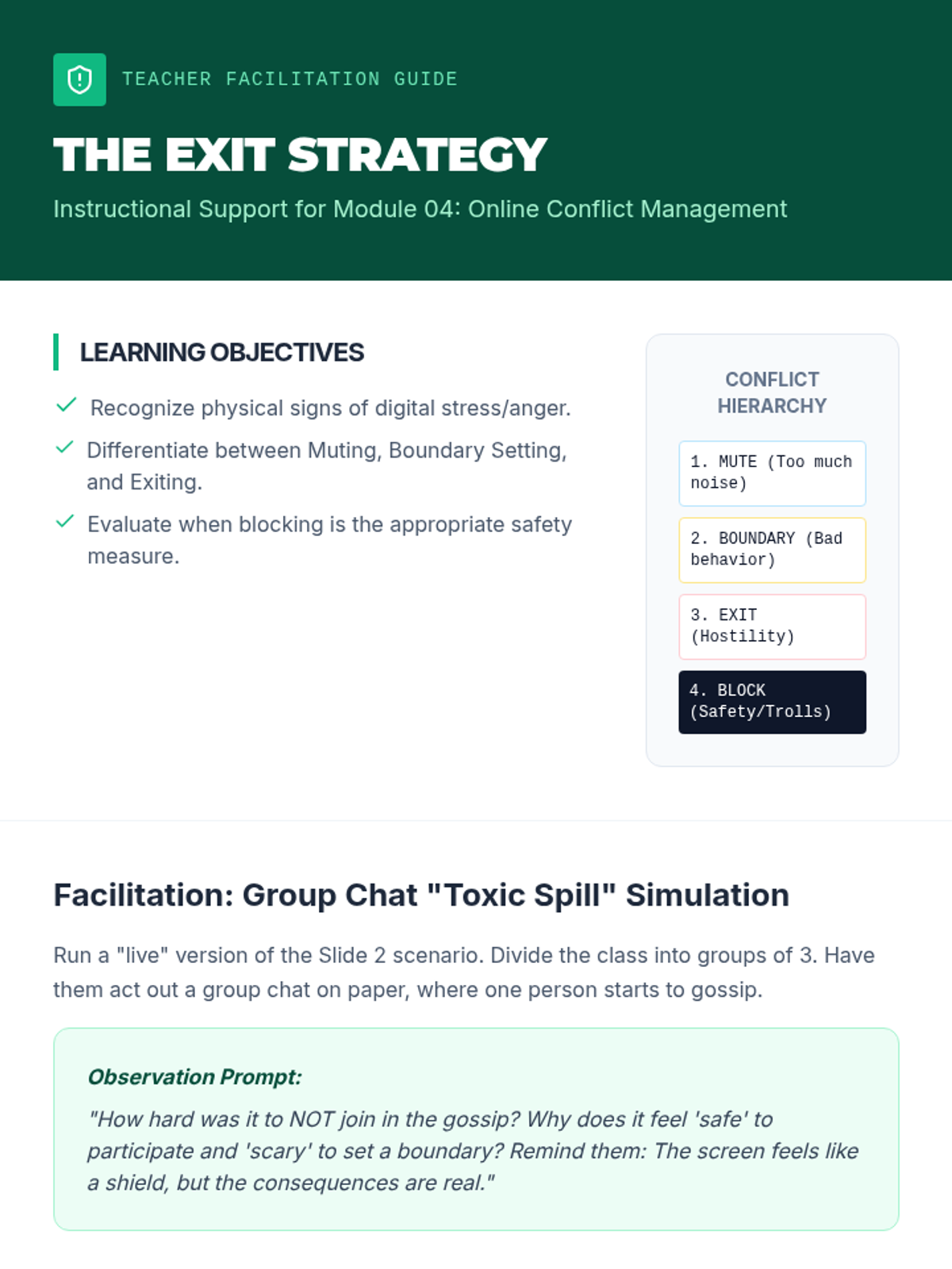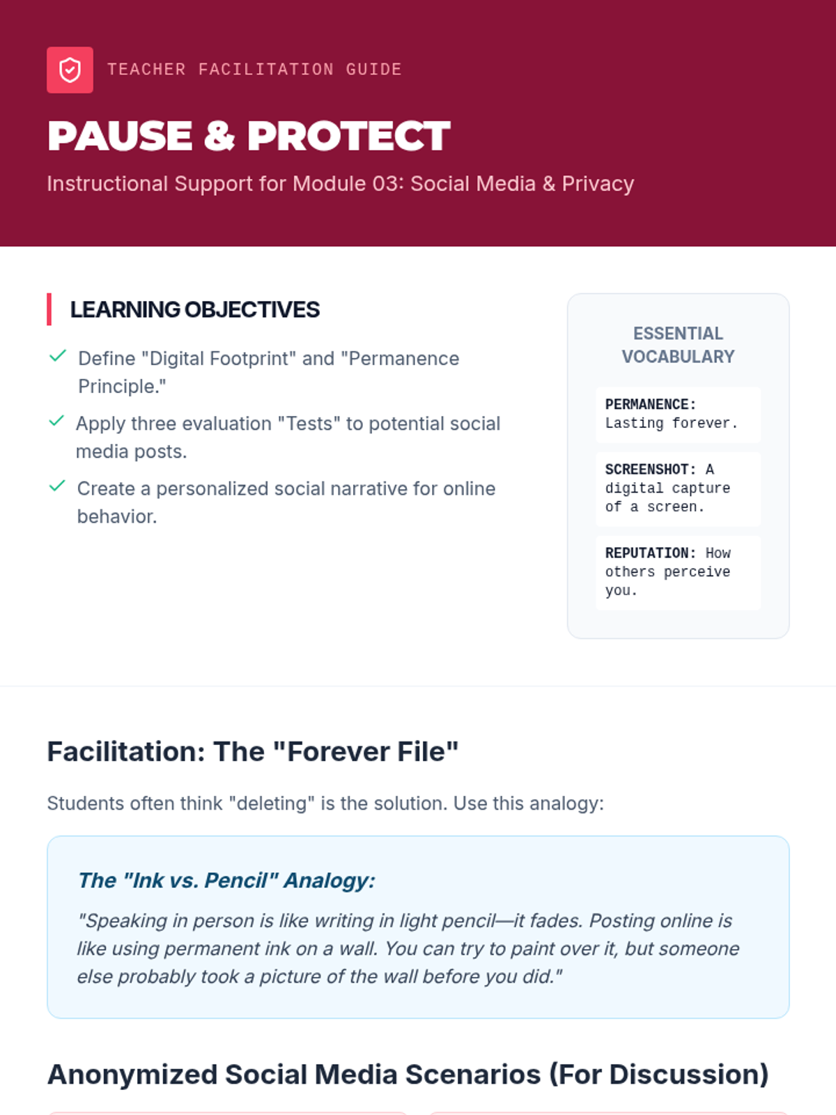 A comprehensive sequence for 12th-grade students focusing on the intersection of social narratives and digital communication. Students learn to navigate tone, professionalism, privacy, conflict, and safety in digital spaces through the creation of personalized scripts and 'Digital Rules of Engagement.'