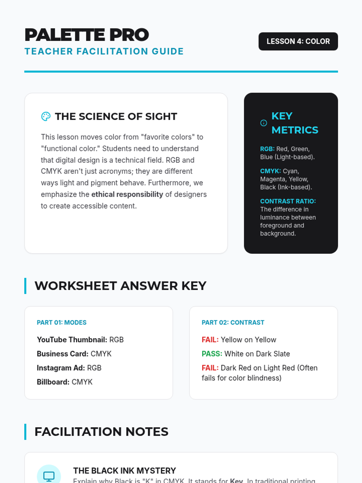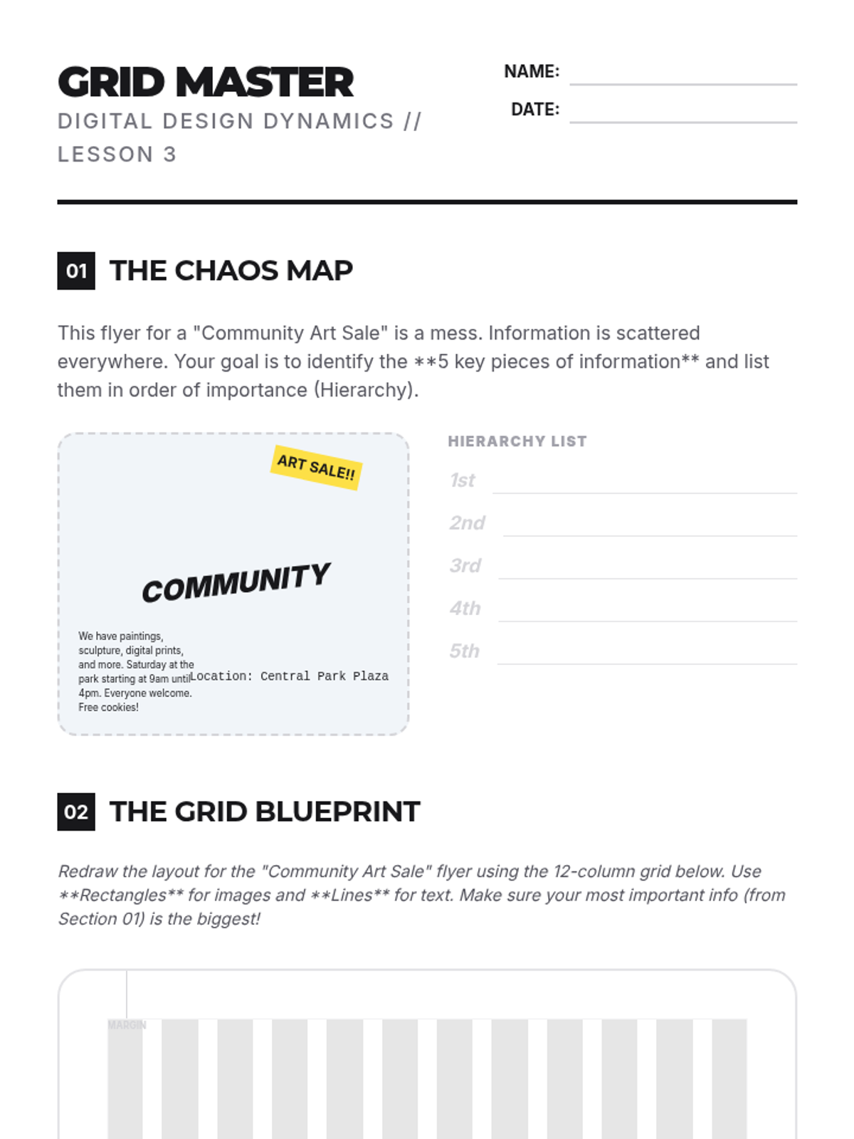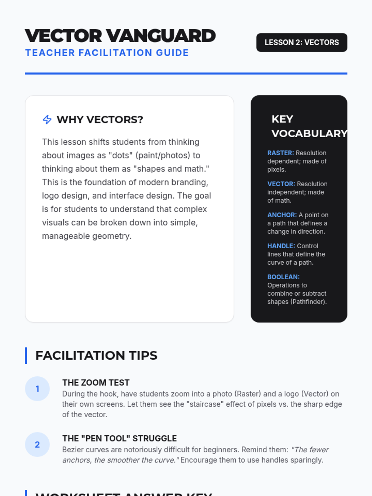 A comprehensive 8th-grade unit bridging traditional printmaking concepts with modern digital graphic design. Students explore typography anatomy, vector illustration, grid-based layouts, and digital color theory to create professional-quality visual communications.