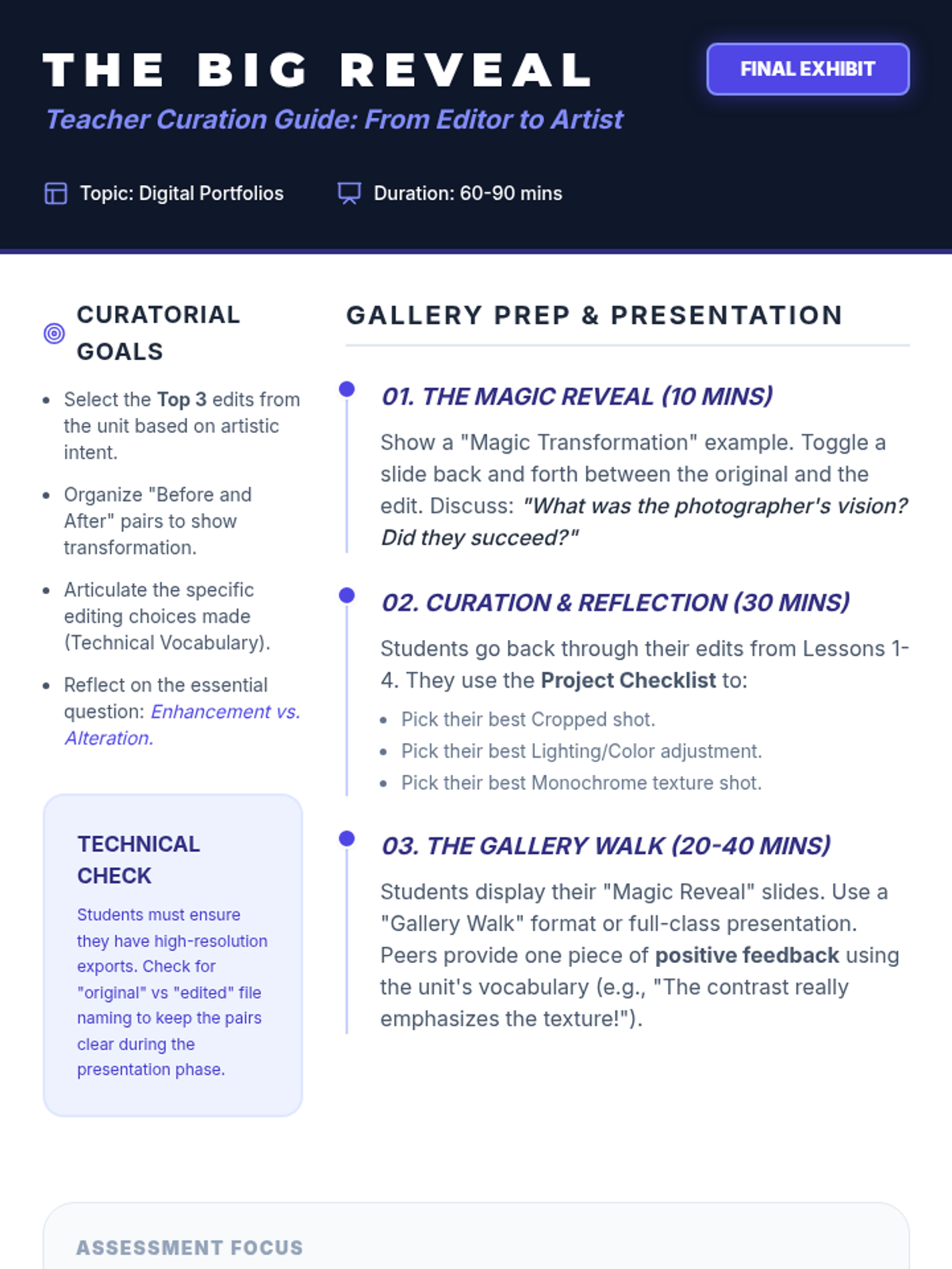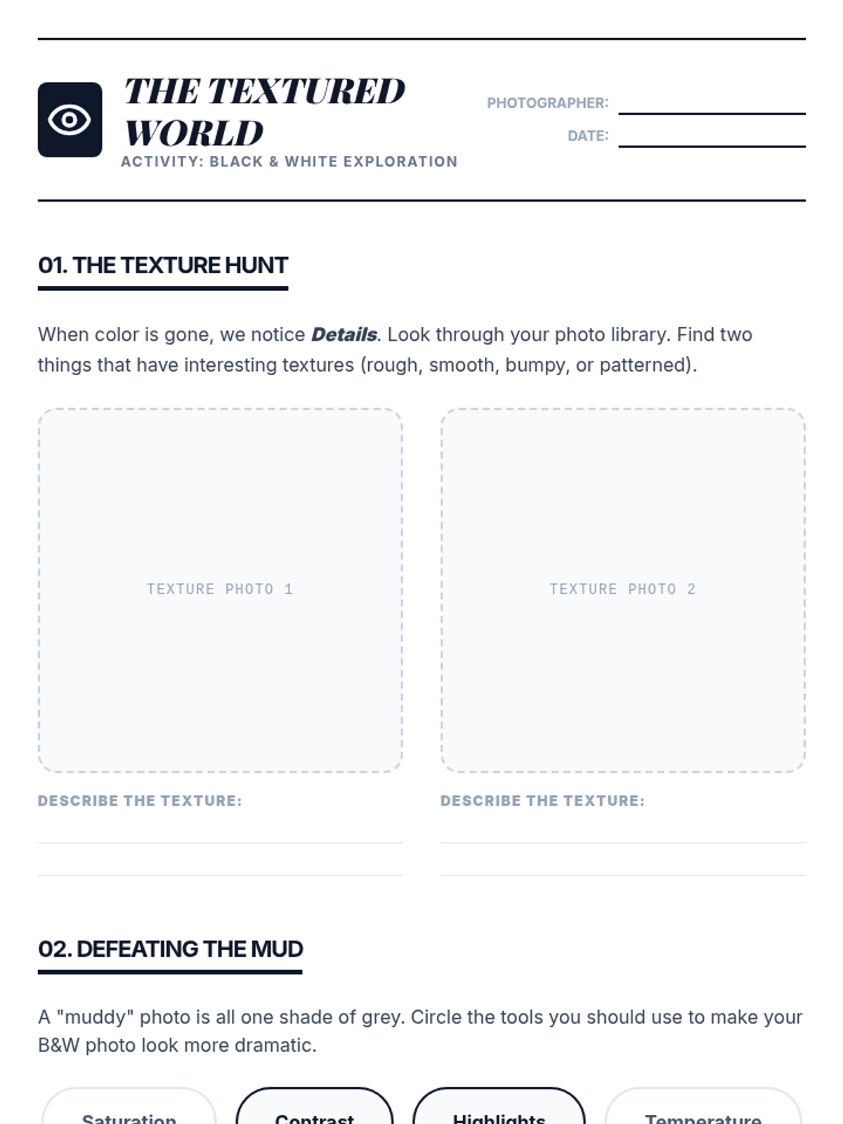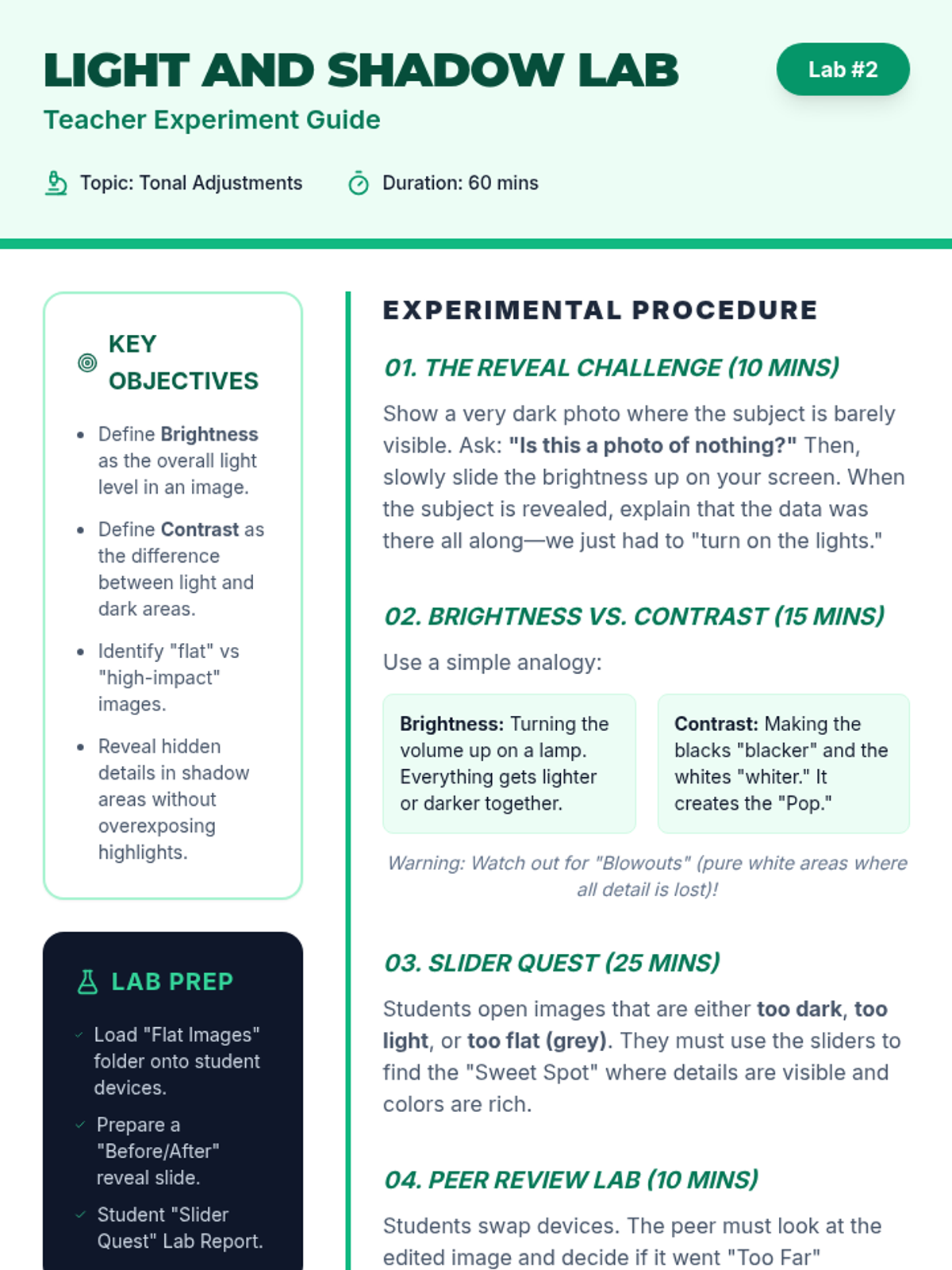 A technical photography sequence for 4th graders exploring the 'digital darkroom.' Students learn to use non-destructive editing tools like cropping, tonal adjustments, and color correction to enhance their artistic intent while maintaining authenticity.
