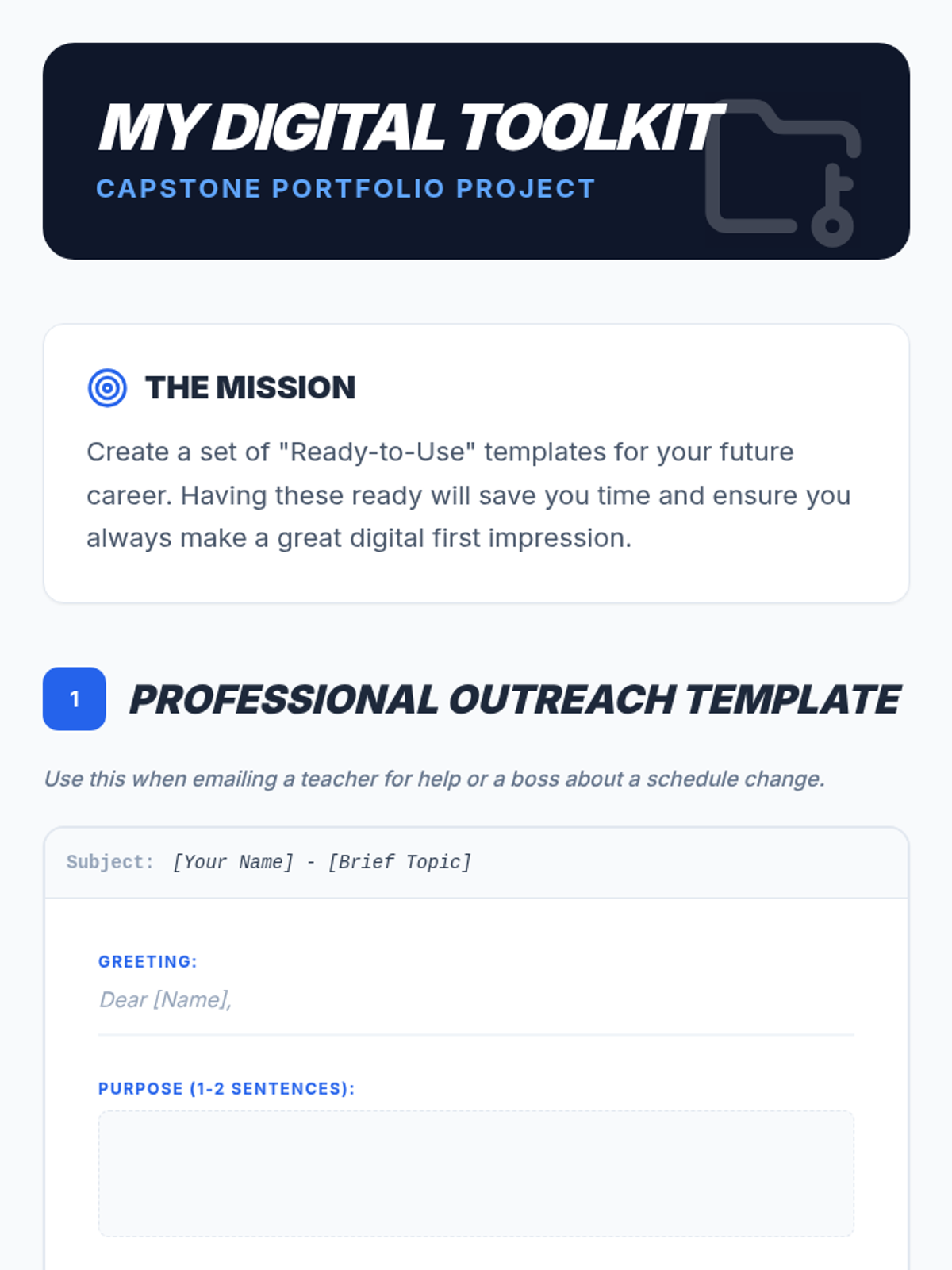 A comprehensive sequence for 10th-grade social communication, focusing on translating traditional greeting skills to digital formats like email, video calls, and professional messaging. Students learn to navigate formal and informal digital boundaries to build a professional online presence.