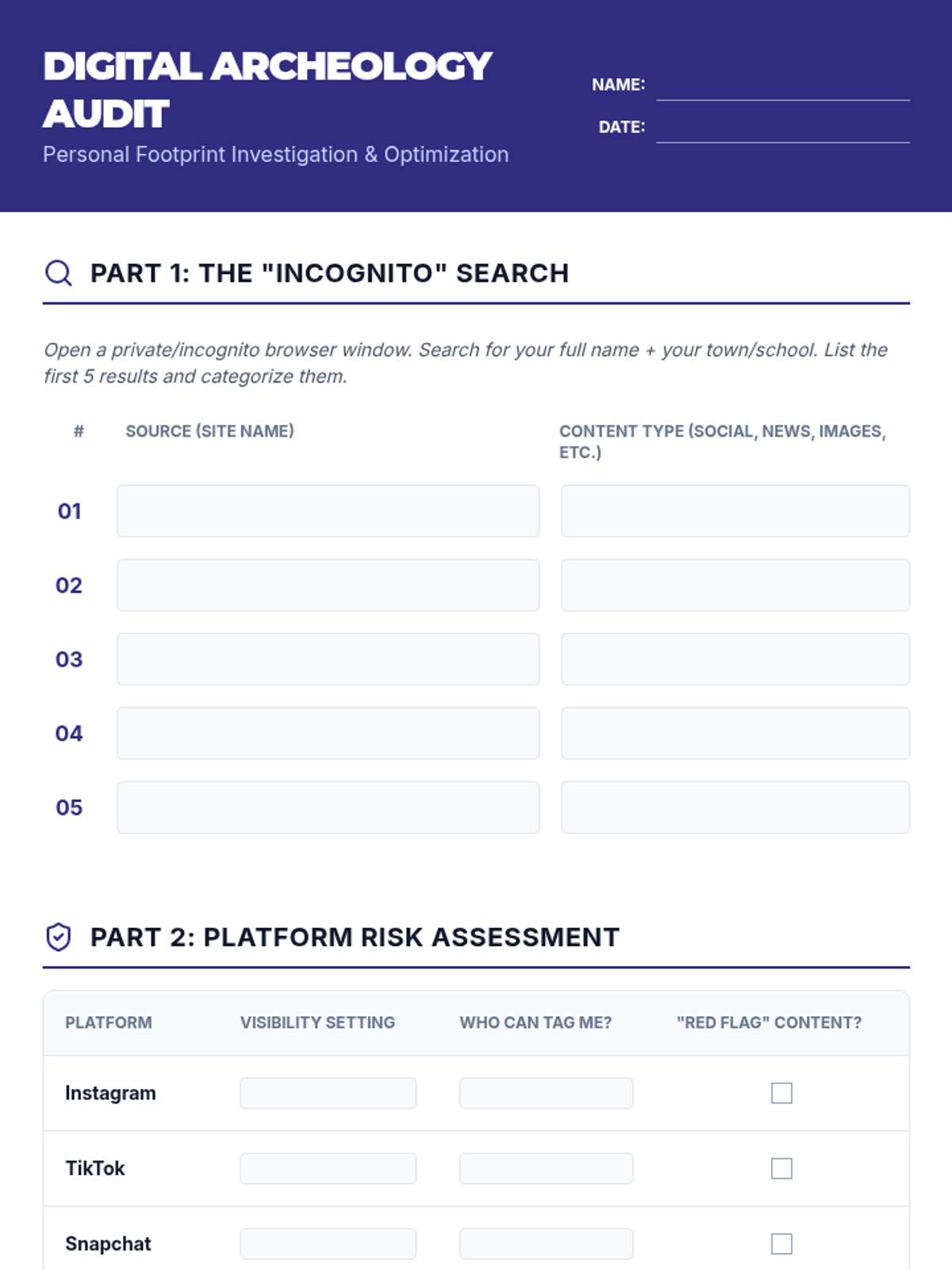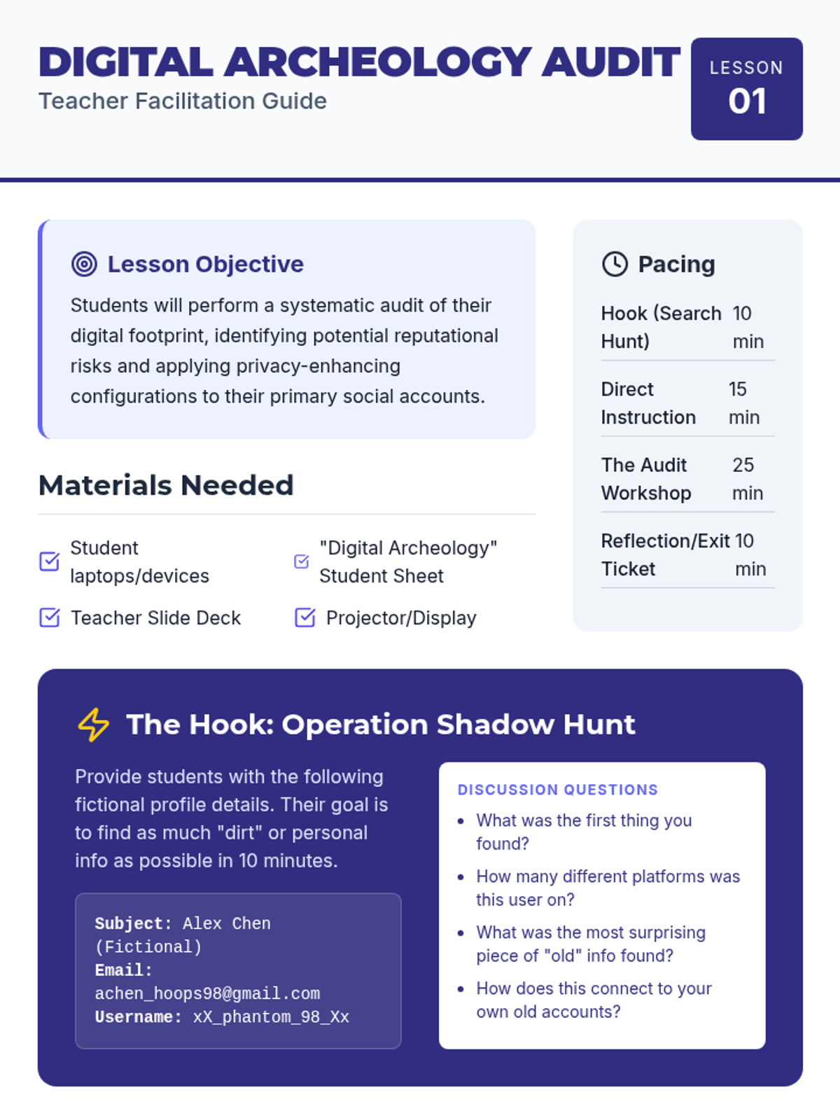 A comprehensive unit for seniors exploring the intersection of digital footprints, professional reputation, and legal accountability. Students move from auditing their personal history to strategically curating a professional identity and navigating complex legal and security landscapes in the digital age.