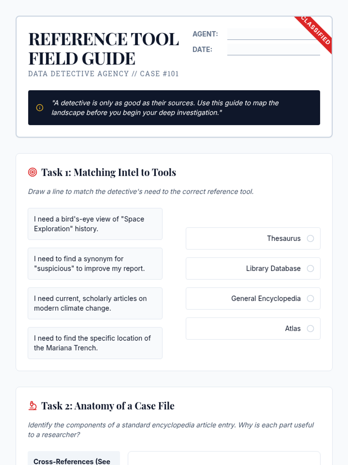 A 7th-grade ELA sequence focused on digital literacy, reference skills, and citation strategies. Students act as 'Data Detectives' to navigate encyclopedias, databases, and citation mechanics to avoid plagiarism.