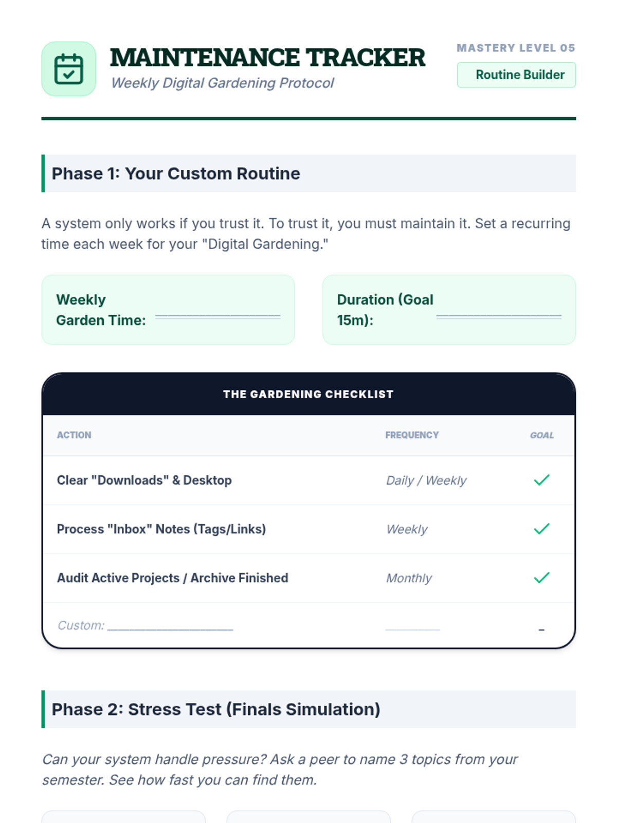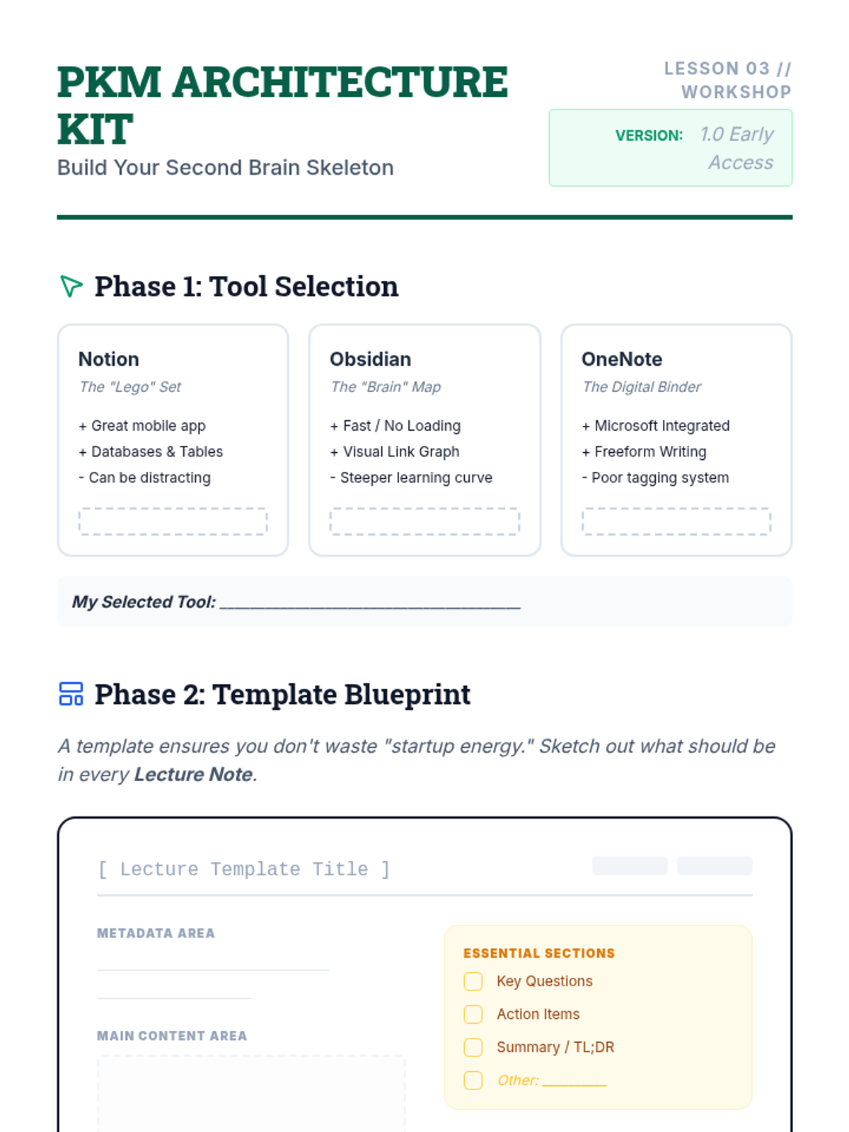 A comprehensive sequence designed for undergraduate students to build a Personal Knowledge Management (PKM) system. This series helps students move from digital chaos to a structured, searchable 'second brain' using tagging, linking, and routine maintenance to reduce working memory load.