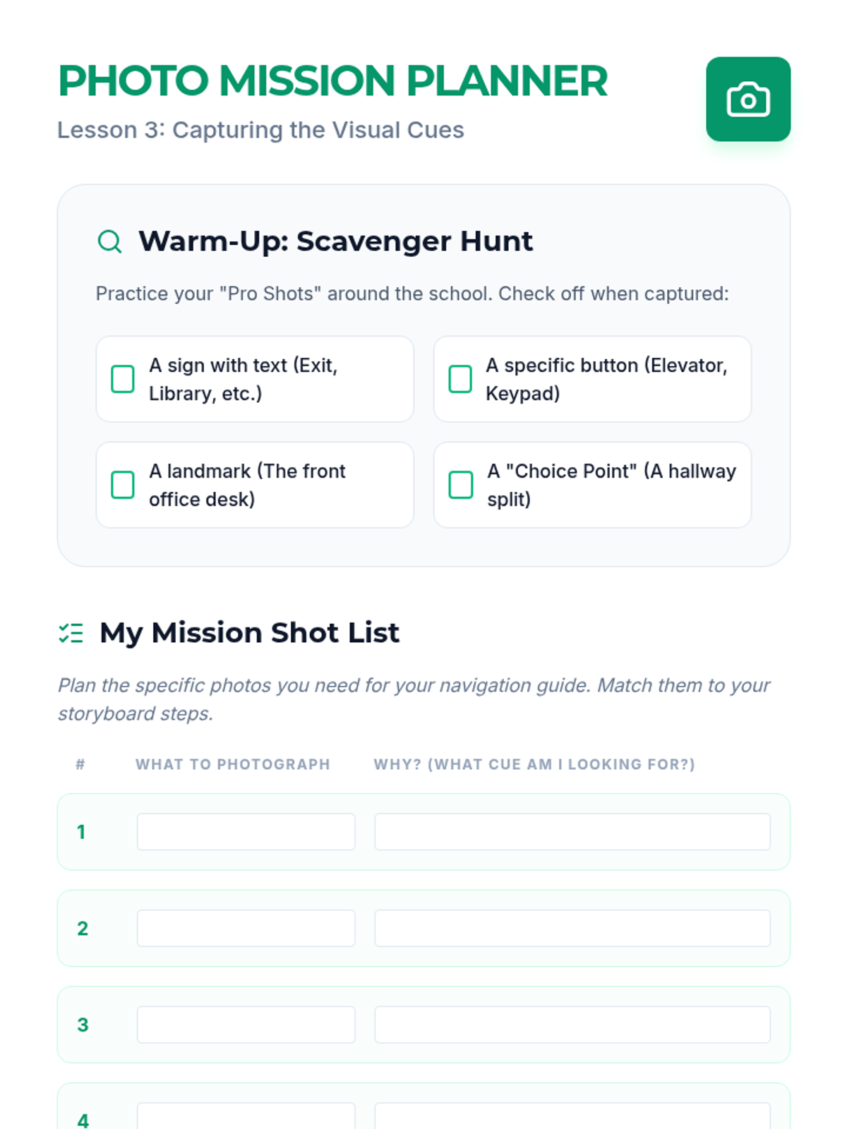 This sequence empowers 10th-grade students with special education needs to create discreet, digital social narratives for community independence. By leveraging mobile technology, students transform traditional social stories into modern, photo-based navigation guides, reducing stigma and increasing autonomy in public spaces.