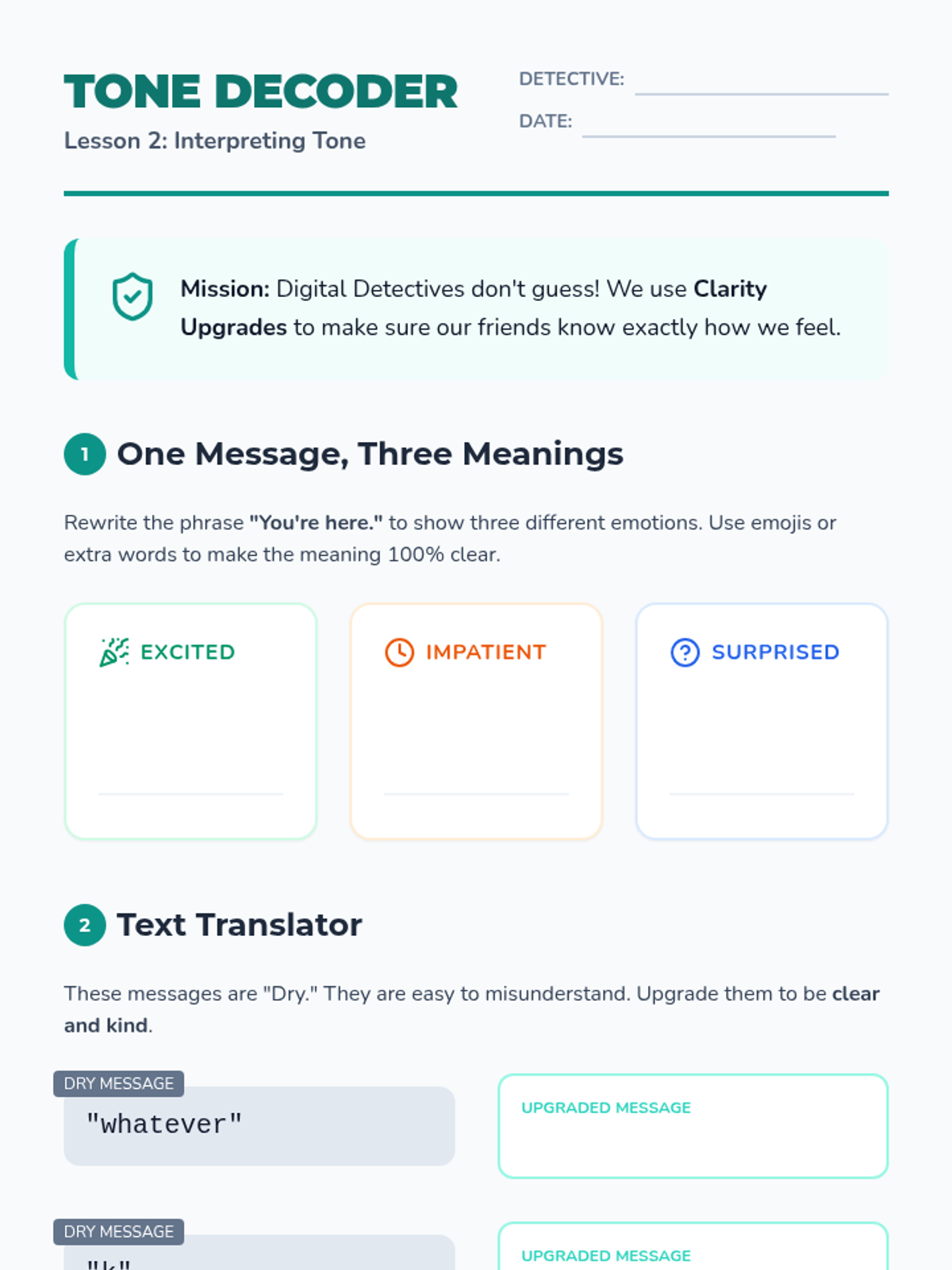 A 5-lesson sequence for 4th graders focused on media literacy, digital communication, cyberbullying prevention, and creating a positive online culture. Students explore the difference between digital filters and reality, learn to interpret tone in text, and develop skills to be active upstanders.