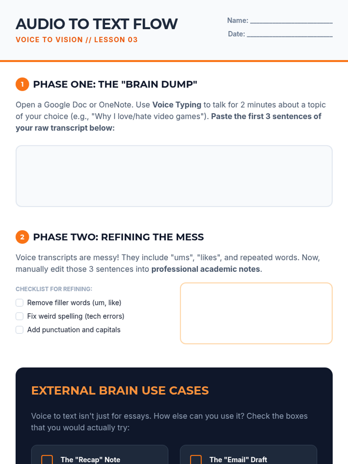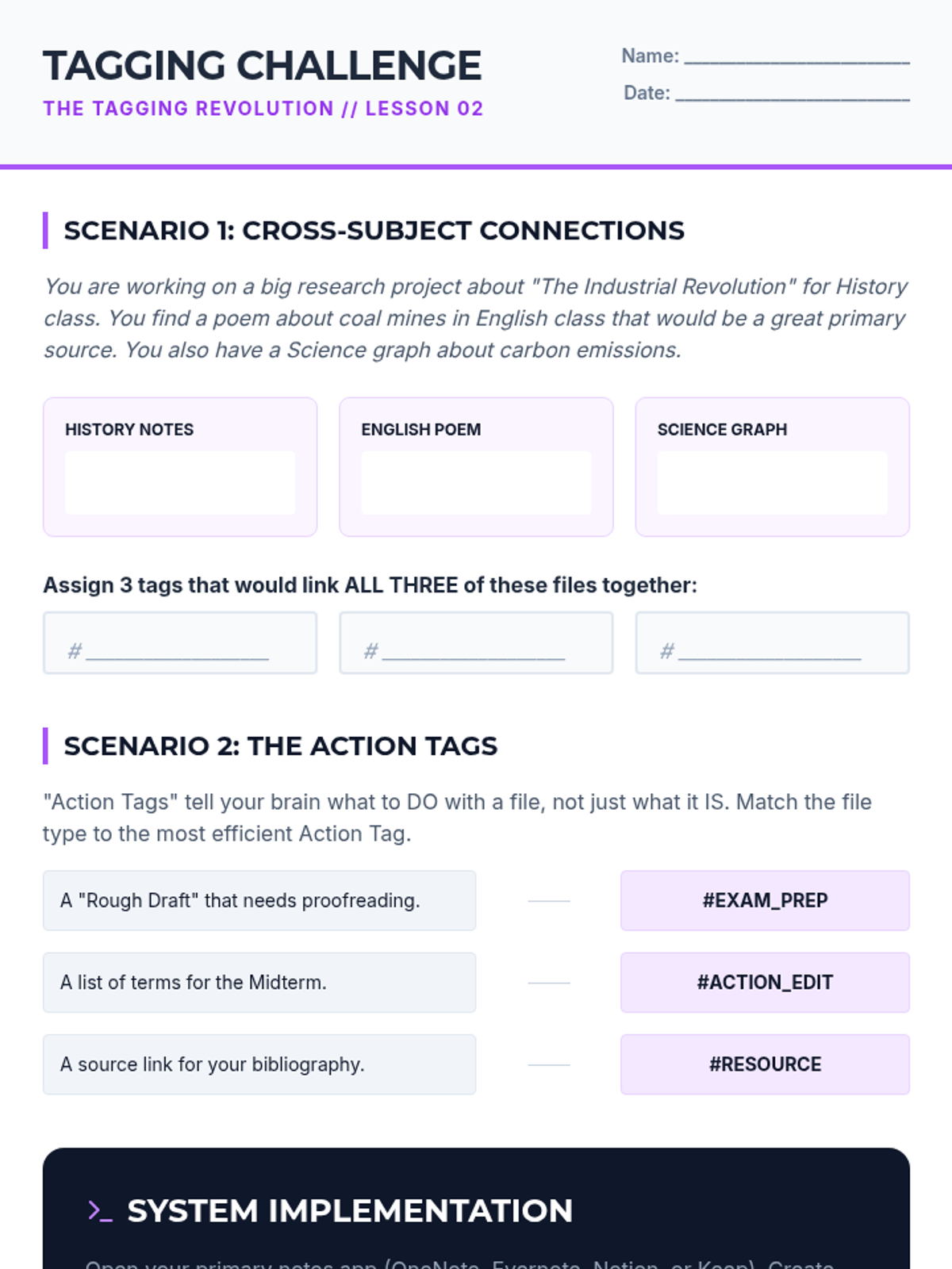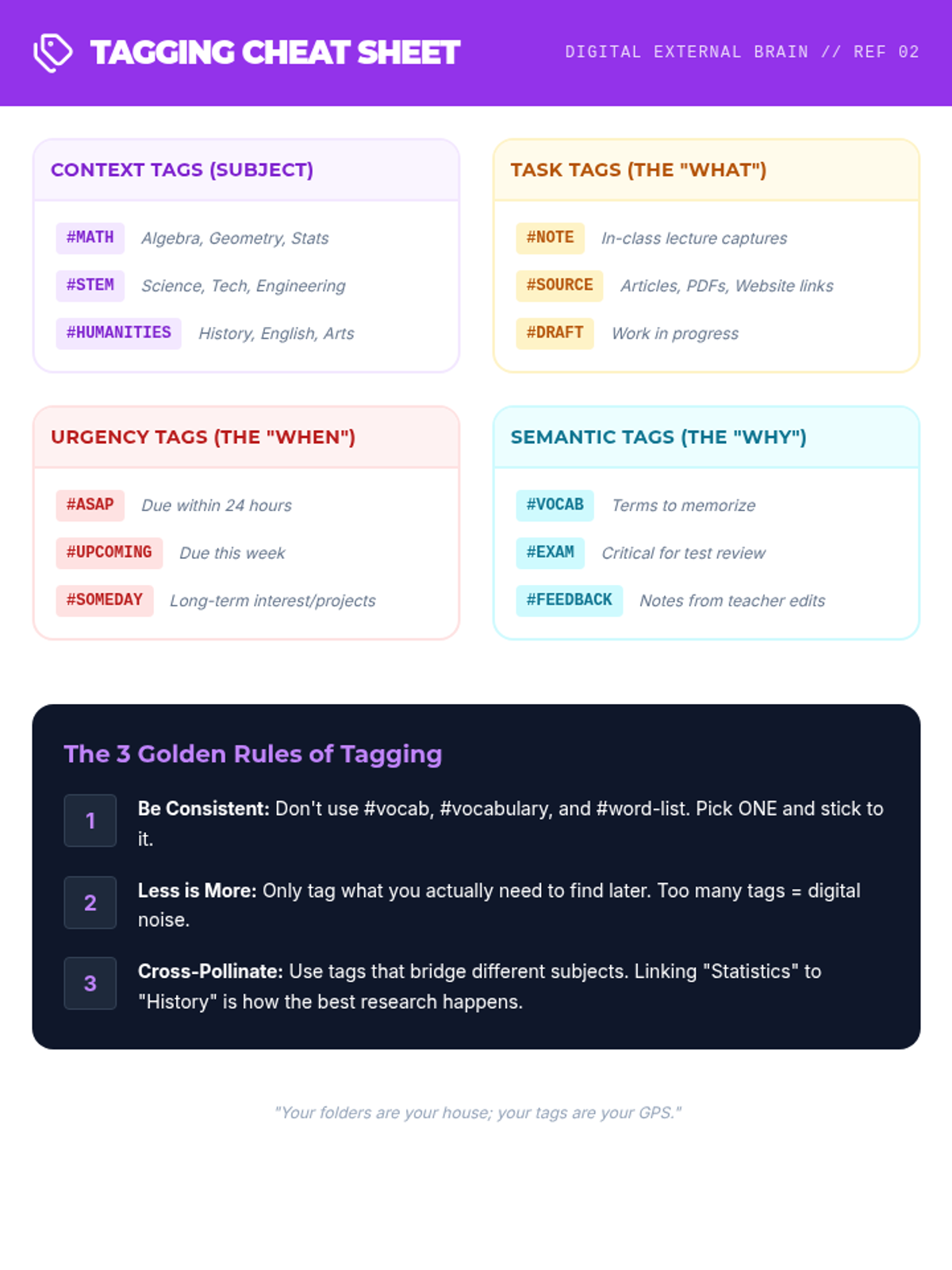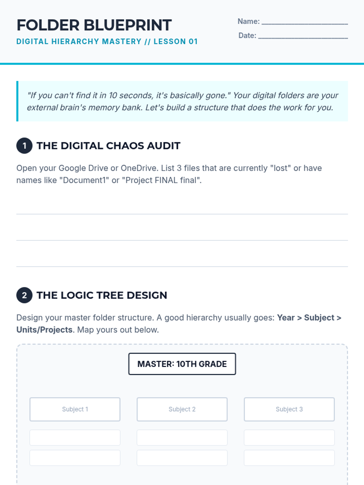 A comprehensive 10th-grade sequence focused on leveraging digital tools to offload working memory demands. Students learn to build a 'digital external brain' through structured folder systems, tagging, voice notes, and spaced repetition to manage academic information efficiently.