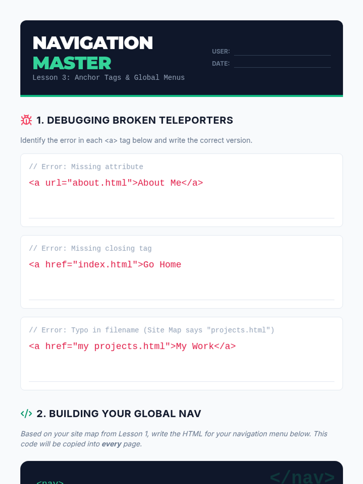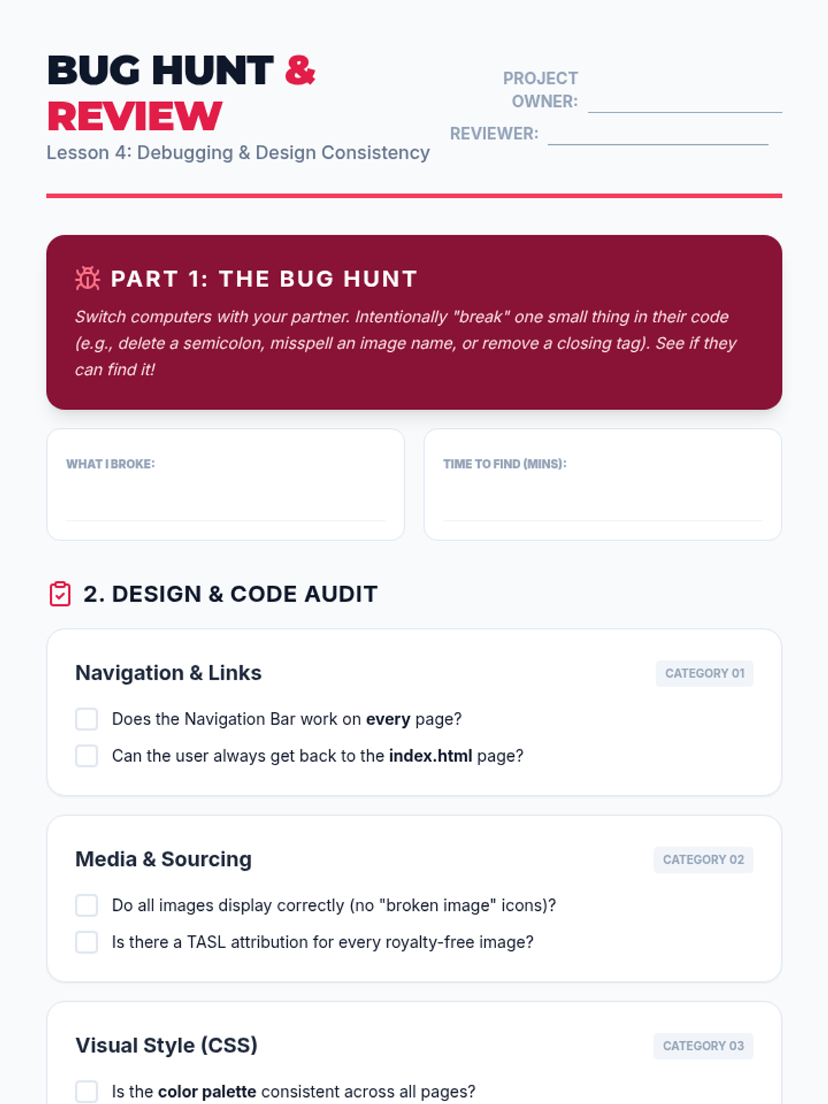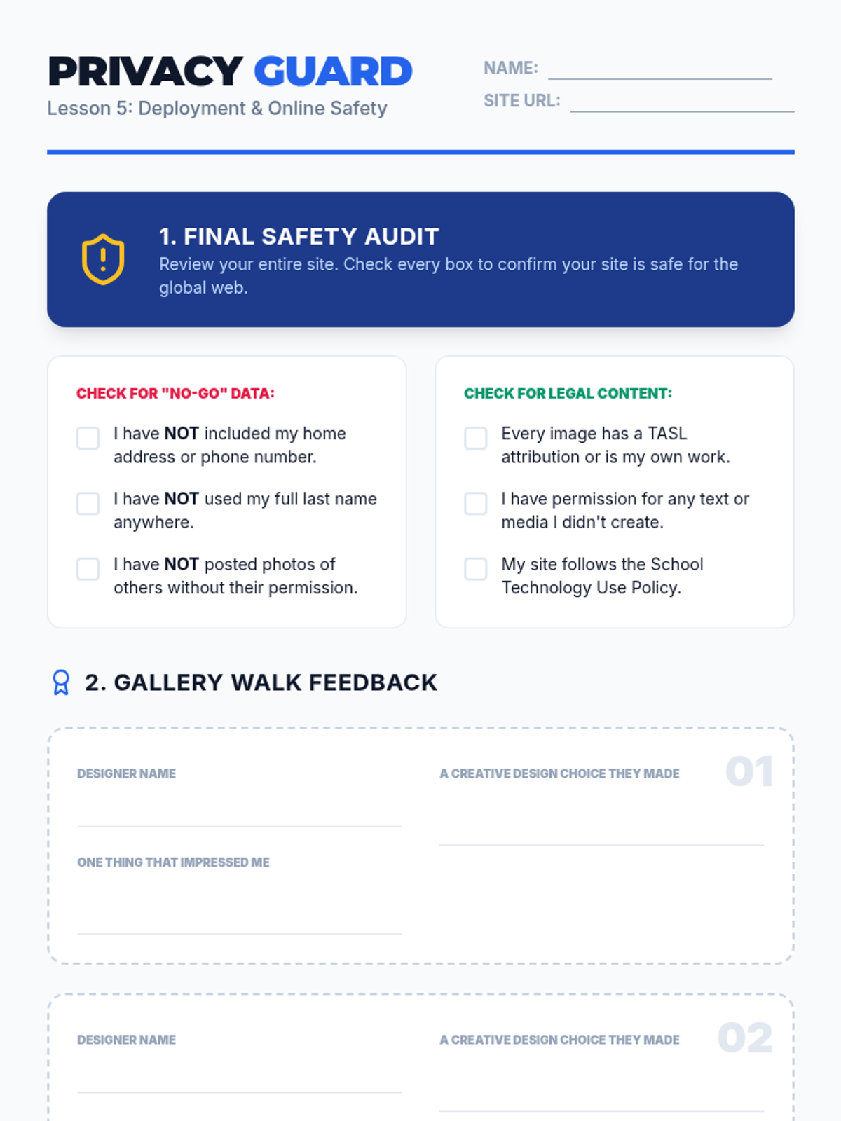 A comprehensive sequence where 6th-grade students plan, design, code, and learn to safely publish their own multi-page digital portfolio. Students master technical HTML/CSS skills alongside essential digital citizenship and information architecture concepts.