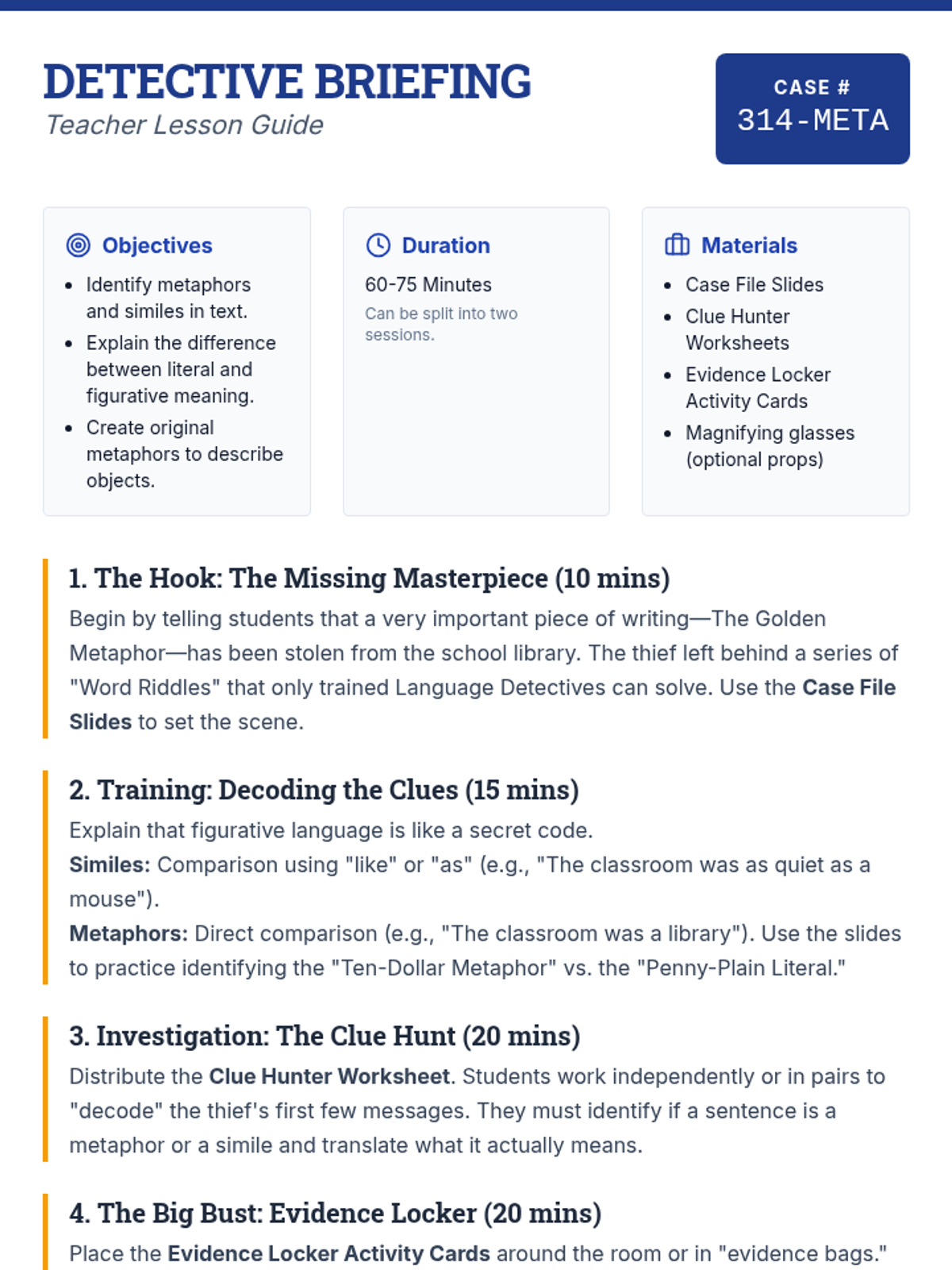 A unit focused on building empathy, character analysis, and creative language use through investigative mysteries and literary deep-dives into core human values.