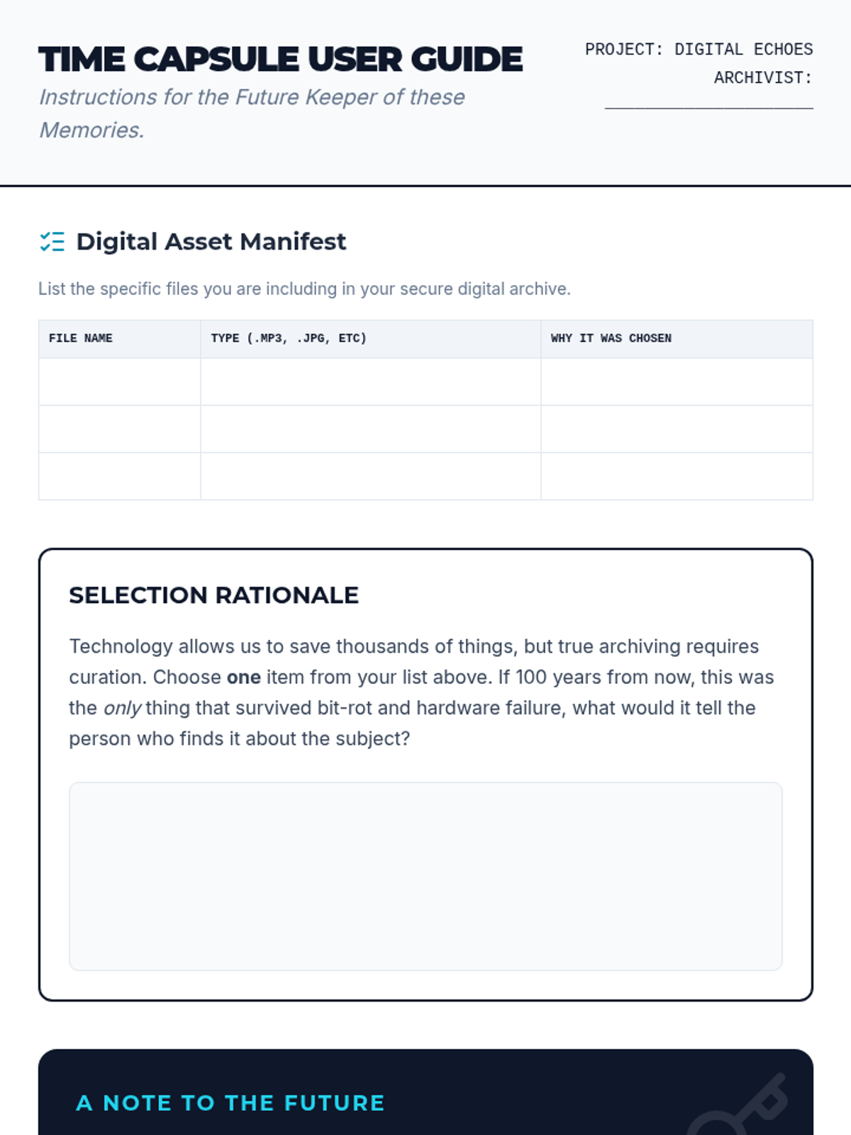This sequence explores the intersection of grief and technology, teaching 10th-grade students how to ethically curate and preserve memories through digital archiving, oral history, and video storytelling. Students move from discussing digital legacies to creating a comprehensive digital time capsule.
