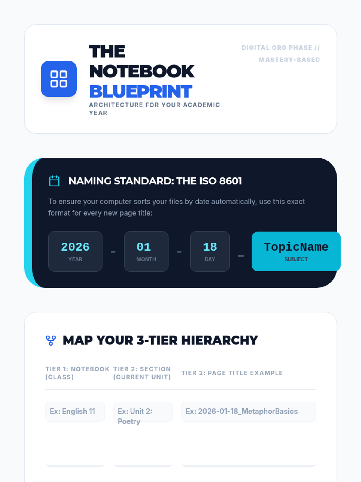 A comprehensive sequence designed to help 9th-grade students with executive function challenges develop, implement, and test personalized organizational systems. Students explore analog and digital tools, master calendar management, organize digital and physical spaces, and simulate real-world 'stress tests' to refine their chosen frameworks.