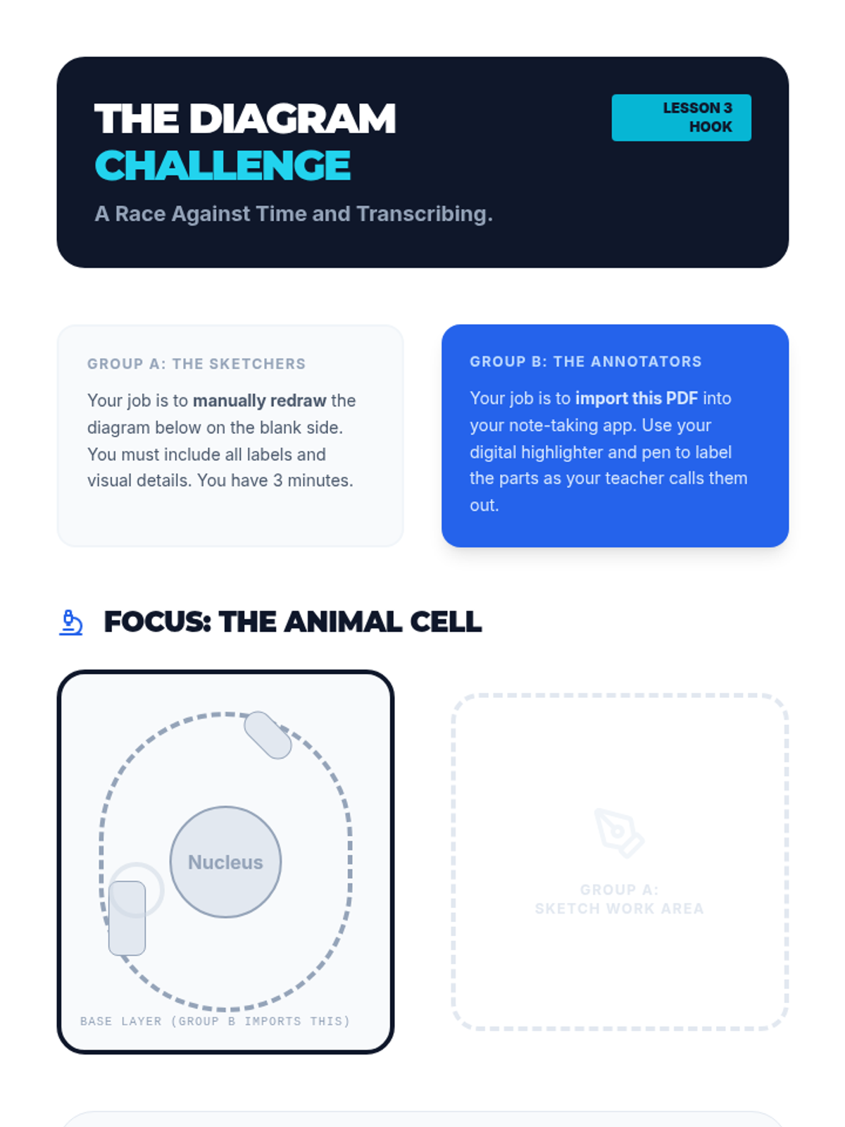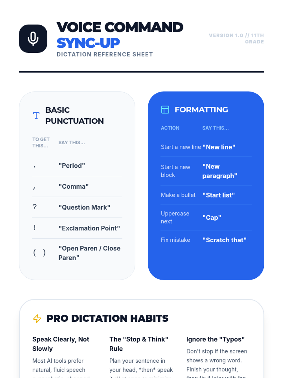 This sequence empowers 9th-grade students to integrate Text-to-Speech (TTS) into their high school workflows through self-advocacy and digital organization. Students move from identifying reading barriers in their schedules to creating a professional Access Plan for their teachers.