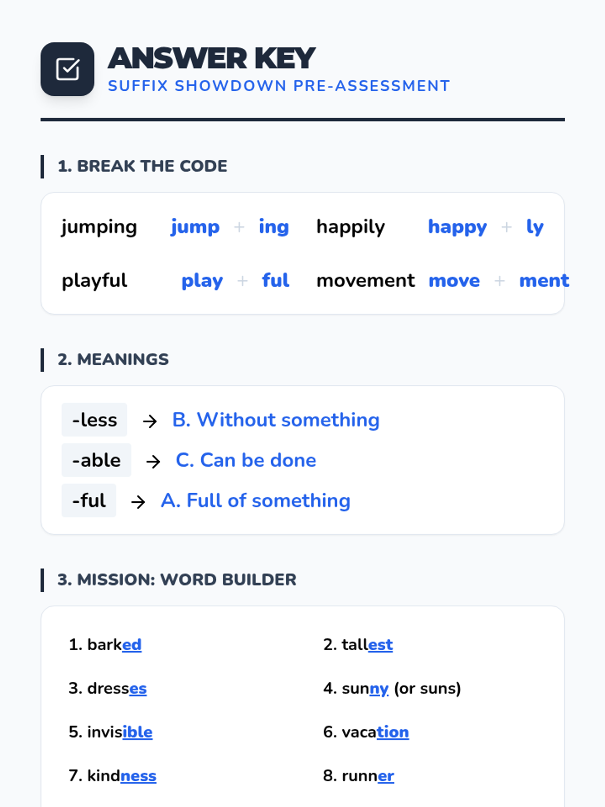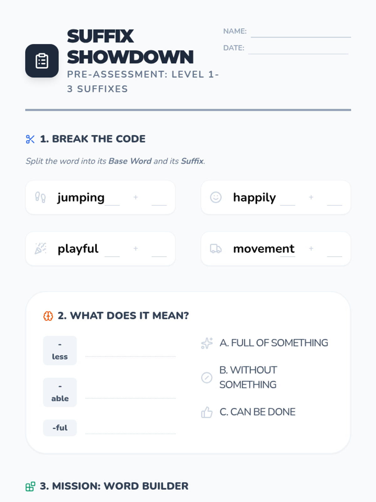 A foundational phonics sequence for 1st and 2nd graders to master the '-ed' suffix, focusing on identifying base words, decoding the three distinct sounds of '-ed', and encoding past tense verbs in sentences.
