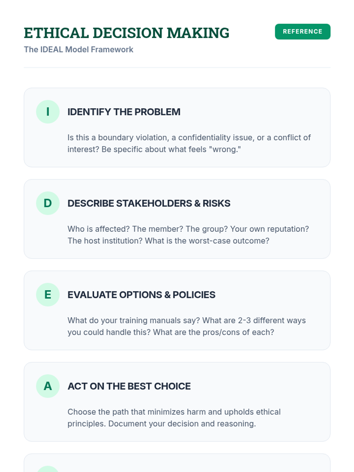 A comprehensive sequence for undergraduate students on managing the ethical complexities of peer support, focusing on professional boundaries, disclosure limits, and crisis management.