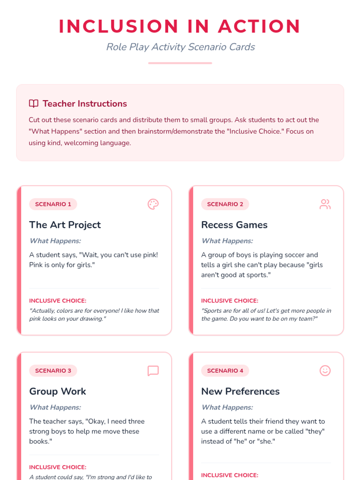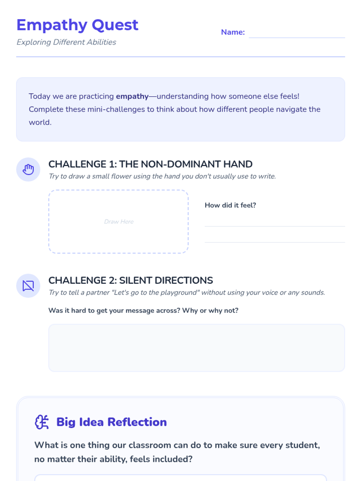 A 4-lesson unit for 3rd grade students to explore identity through race, gender, and disability using a trauma-informed lens. Students build empathy and self-awareness by celebrating unique characteristics and fostering an inclusive classroom community.