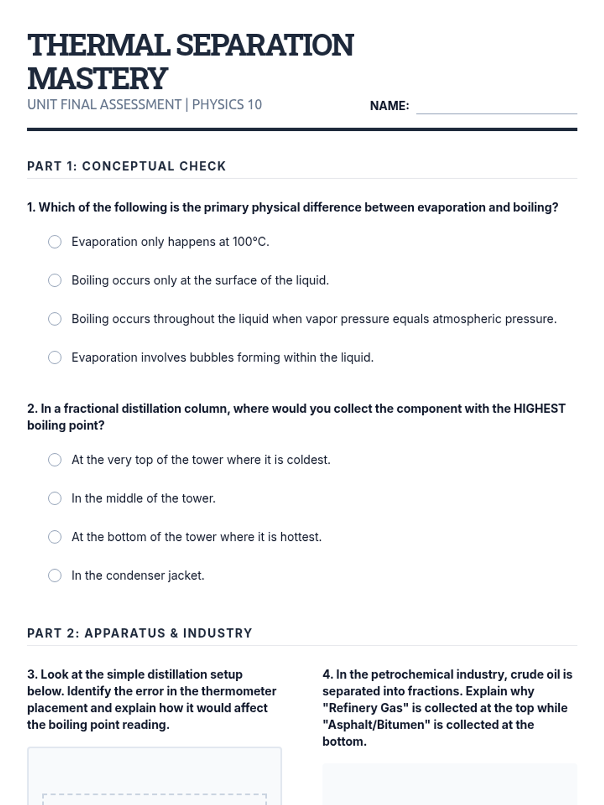A comprehensive workshop-based sequence exploring thermal separation techniques, from basic evaporation to industrial fractional distillation. Students master the physics of phase changes and boiling points to separate liquid mixtures.
