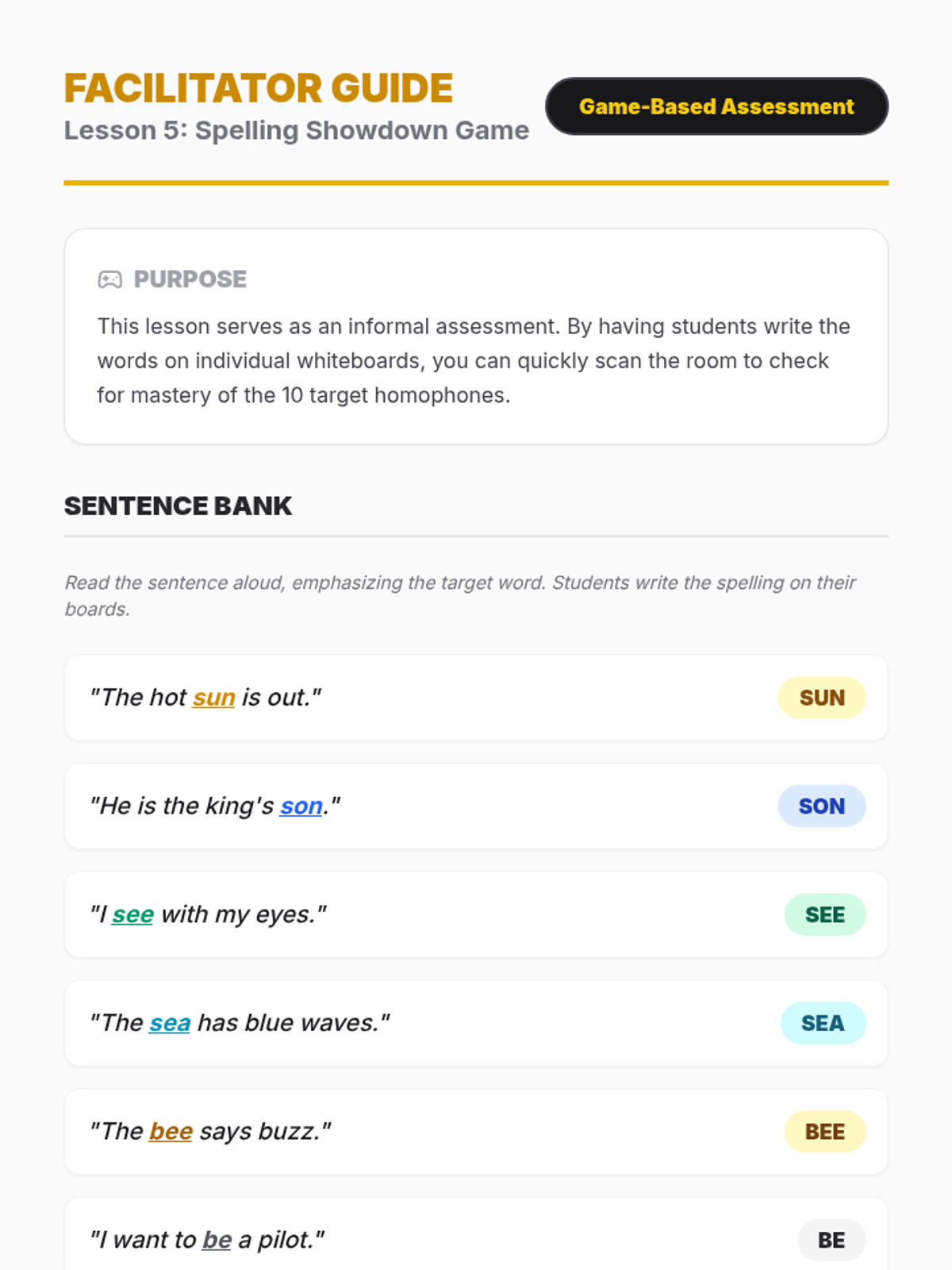 A skill-building sequence for 1st Grade students focusing on identifying and correctly spelling common homophones using phonics patterns and context clues.