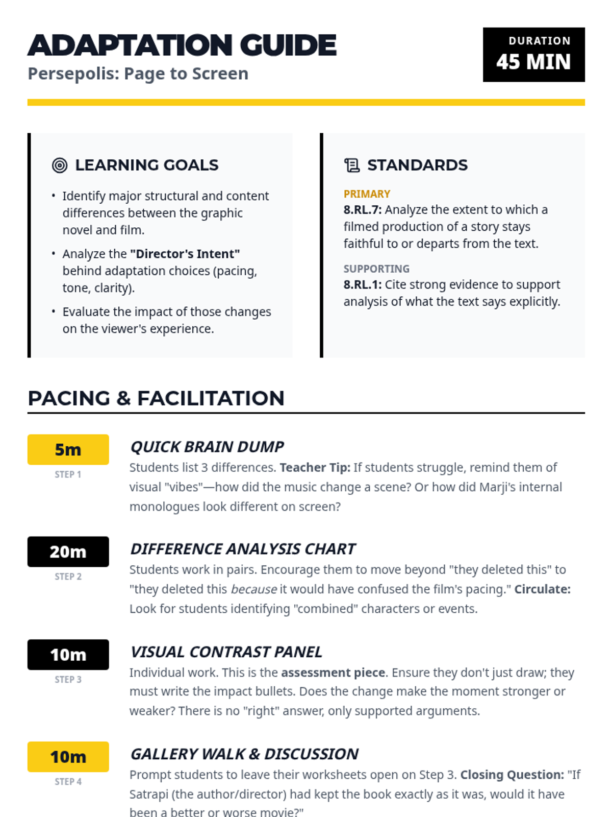 A focused exploration of literary adaptations, specifically looking at how graphic novels are translated into cinema, focusing on Persepolis.