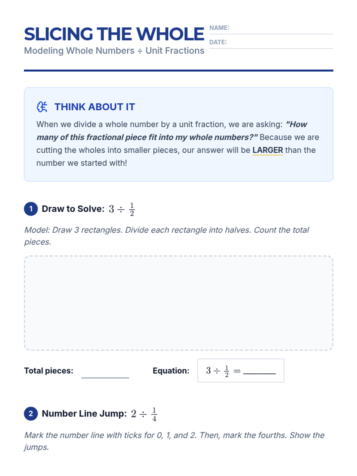 A comprehensive 5-lesson sequence where 5th-grade students master dividing whole numbers by unit fractions and vice versa using visual models, pattern discovery, and real-world application.